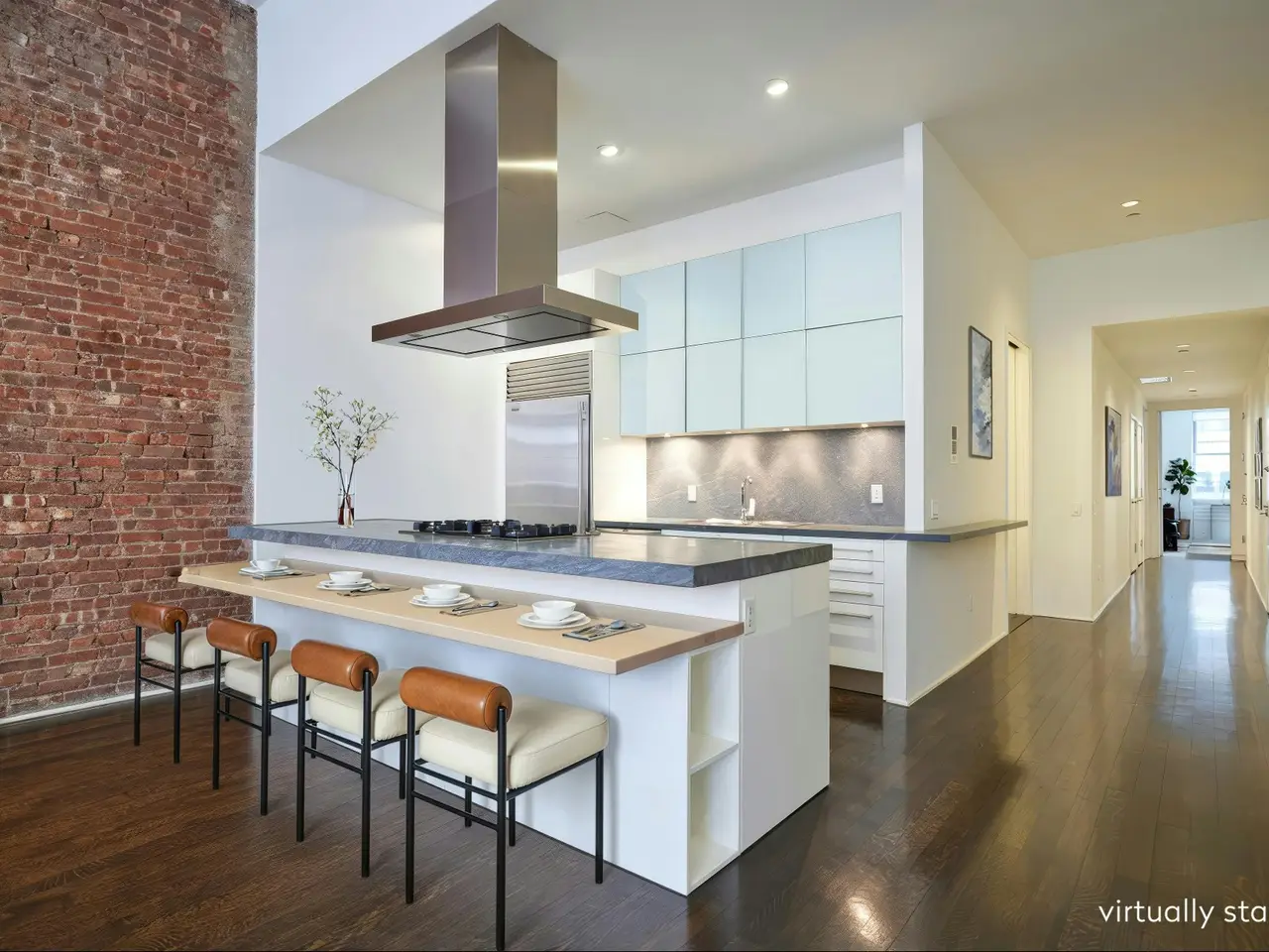 Enjoy soaring 13-foot ceilings in this 1,742sqft 2 bedroom, 2 bath Condo loft on one of SoHo's premiere cobblestone streets. The oversized square living room features an exposed brick wall, floating gas fireplace, 4 soaring windows overlooking Greene street, a spacious pantry, and is open to a well-appointed kitchen with Sub-Zero, Miele, and Fisher & Paykel stainless steel appliances. Down the bedroom hallway you'll find a GE washer and dryer, full bathroom, and storage closets. The generously sized primary bedroom has a private dressing room and en-suite 5 piece marble bathroom. Apartment 2A comes with zoned central air and a storage unit in the basement. 109 Greene Street is a boutique condominium with a full-time doorman and keyed elevator access. Building Name: The Lofts of Greene Size: 2 bedrooms, 2 bathrooms Sq Feet: 1,742 Ceiling Height: Over 13" Fireplace: Yes, Gas Air conditioning: Yes, Central Laundry: washer and dryer currently in the apartment (also machines in the basement) Storage: Yes, in the basement Gym: No Elevator: Yes Neighborhood: Soho Doorman: Full Time Superintendent: Yes, full time (but not live in) Building Allows: Corporate ownership, pied a terre, 90% Financing, Pets