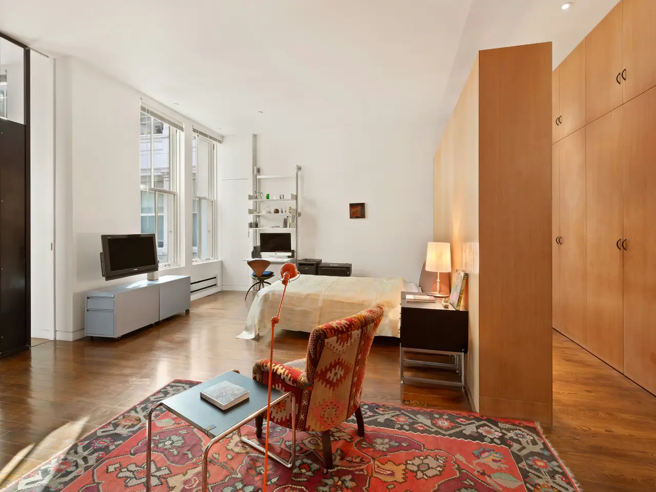 Owning this income producing co-op loft is an investment opportunity that does not come along often. Shareholders are paid very sizeable monthly distributions based on rental income from the building retail property they own. Maintenance for this floor is $500 per month. There is a healthy reserve fund, no building mortgage, no assessments and no flip tax. Live in the heart of the historic SoHo Cast Iron district on lovely cobblestone Mercer Street between Prince and Spring streets. This five story circa 1868 cast iron building was converted in 1975 by a group of artists. Cast Iron Court Corporation is professionally managed. Pets are allowed. Enter the 4th floor by a key-locked elevator to a spacious open living space with 11'+ ceilings, and walls of oversized windows and vast wall space for your art collection. The gross square footage is 3,422. Ownership of two private storage rooms totaling over 600sf is included in the sale. A multi-use room with a wall of tall storage cabinetry and a wall of windows is adjacent to the living area with tall steel sliding doors providing privacy. If you love to entertain this is the home for you with a very spacious open living area. The chef's kitchen boasts stainless steel appliances including a large Wolf range, large side-by-side fridge/freezer, wine fridge, dishwasher, two sink areas and a dining center island. There is an abundance of storage. A closet with full size washer and dryer is just off the kitchen area. Just past the kitchen you will find a serene and beautifully designed guest bath with a glass enclosed walk-in shower. There is also a freestanding wall of storage facing the guest bath. As you enter the primary suite just past the guest bathroom you are greeted with a large room that can be used in various ways. A freestanding wall is currently used for storage in addition to a wall of ceiling to floor custom designed closets. There are two oversized windows. Tall sliding steel doors provide privacy. As you enter the spa-like bath you will find a sculptural deep soaking tub and a very sizeable tall walk-in glass enclosed shower with multiple sprayers for relaxation. The long vanity has double sinks and excellent storage. SoHo is loved by many for the beautiful historic architecture. There are many wonderful restaurants, art galleries and boutique shopping.