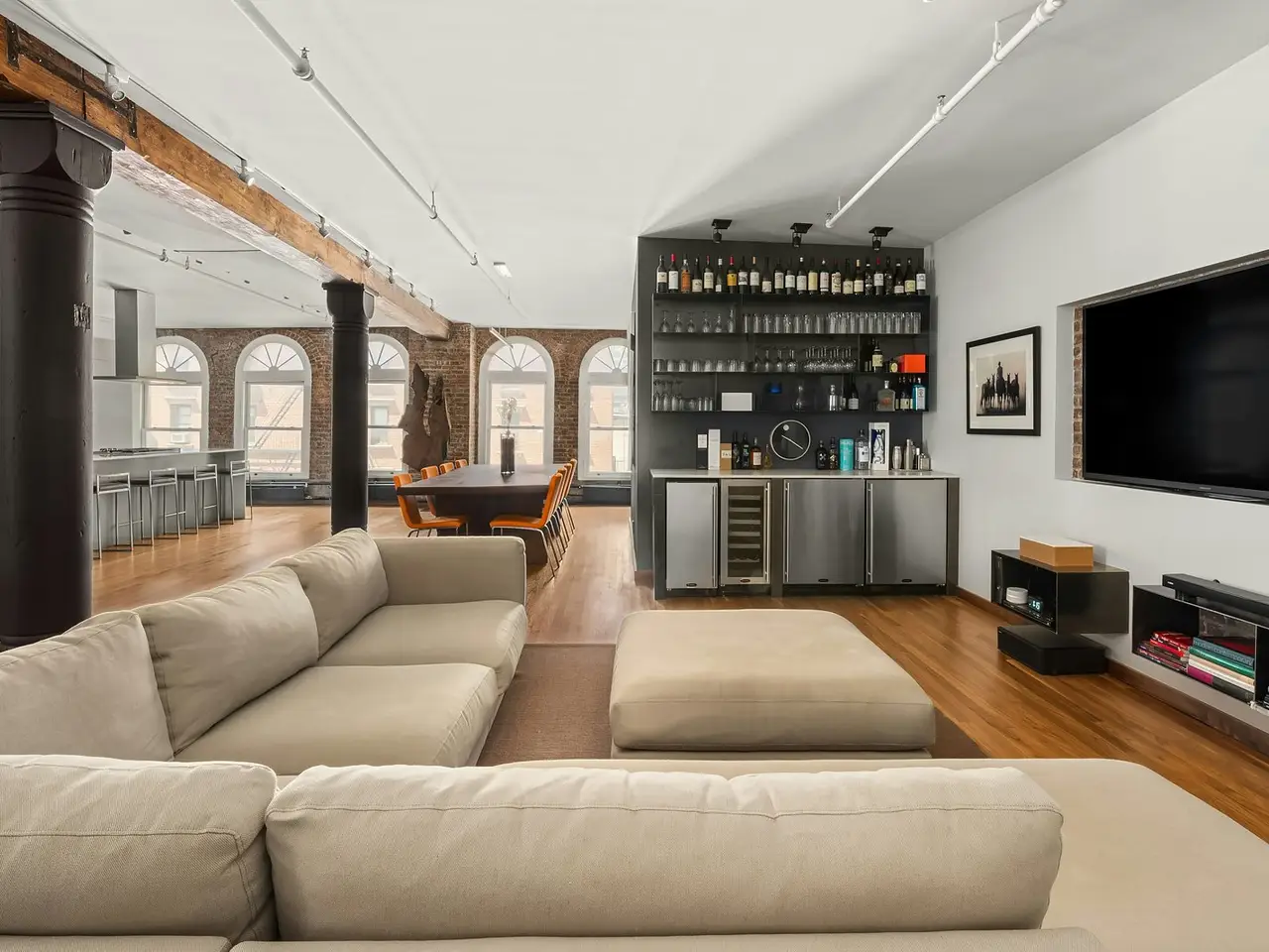 SoHo Furnished Full Floor 3 Bed 3 Bath Loft This fully furnished 3-bed, 3-bath loft at 307 West Broadway offers the rare opportunity to live in a full-floor residence in a boutique SoHo co-op of just seven units. Flooded with natural light from 16 windows across four exposures, the home spans an impressive 35 feet along a tree-lined stretch of West Broadway. Exposed brick, original columns, tin ceilings, and wood beams set the stage for a renovated interior that balances historic character with modern comfort. A private keyed elevator opens directly into the residence, where thoughtful separation of space includes three bedrooms, three baths, dedicated office and in-unit washer/dryer. Kitchen includes high end appliances from Sub Zero, Wolf, Miele and American Range. The loft is offered fully furnished and ready to enjoy, complete with a rowing machine and a ping-pong table for work-life balance at home. With its airy proportions, multiple exposures, and boutique building setting, this residence blends SoHo authenticity with turnkey ease-an ideal retreat for anyone seeking both style and substance in one of Manhattan's most iconic neighborhoods. Application Processing Fee $600 Refundable Move In/Out Fee $1000 Credit Report Fee Per Applicant $20
