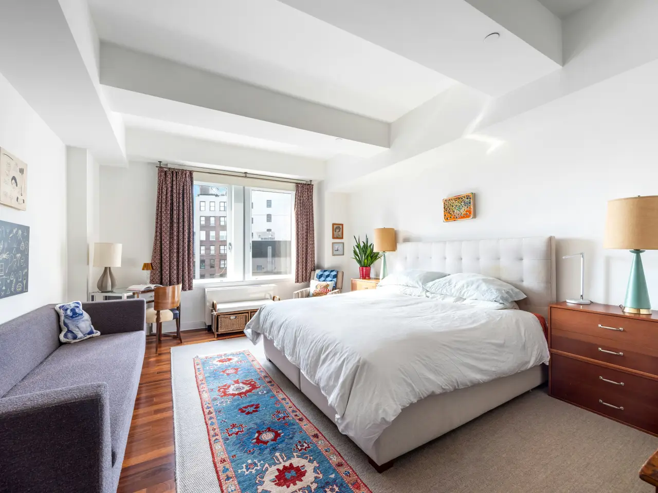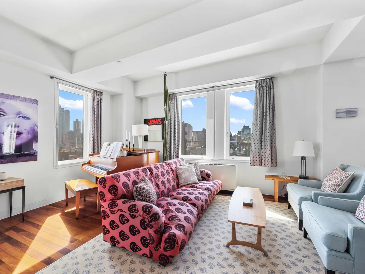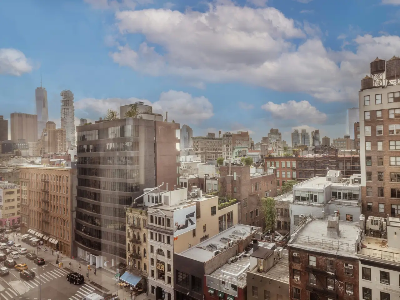 Perfectly placed on a high-floor southwest corner at 225 Lafayette Street (cross street is Spring) in the vibrant heart of Nolita, this spacious, sun-flooded, and serene 1,735-square-foot two bedroom (convertible to three bedroom)/three bathroom pre-war loft condominium is flooded with an abundance of natural daylight and spectacular evening sunsets. Offering open panoramic southwest views over Soho through ten oversized picture windows that frame dramatic downtown views including many historic buildings, this former bank building was converted into 40 loft residences in 2004 and designed by star architects Calvin Tsao and Zack McKown. The expansive layout begins with a grand entrance foyer, anchored by ample closet space, a laundry room with vented washer-dryer, and a full bathroom with steam shower. The open corner living-dining-den area has private media and/or guest room nook and kitchen area measuring a total of 27' by 27'. The semi-open kitchen, with oversized pantry closet added, is outfitted with custom cabinetry, quartz countertops, and top-tier appliances, including a 36" Viking Professional Series range with a vented hood, a Bosch dishwasher, and a Sub-Zero refrigerator. The floors are wide-plank Brazilian hardwood in impeccable condition. The residence is pin-drop quiet with double pane windows and extra soundproofing by Citiquiet windows. The generously proportioned primary suite is a luxurious retreat, featuring an en-suite bath with separate steam shower and bath as well as multiple large and walk-in closets all customized for maximum storage and efficiency. The second bedroom, also with its own en-suite bath and ample closets, offers comfort and privacy. The three bathrooms, epitomizing style and function, are appointed with marble finishes and fixtures from Toto and Kohler. 225 Lafayette Street, originally designed by the celebrated architect Cass Gilbert in 1927 as the East River Savings Bank building, is an example of architectural excellence. Gilbert's other masterpieces include the Woolworth Building, the New York Life Insurance Building, and the U.S. Supreme Court Building. Residents enjoy access to premier amenities, including a full-time doorman/concierge, an on-site resident manager, a meticulously landscaped roof garden, and private storage. The building is surrounded by the vibrant neighborhoods of Nolita, Soho and filled with some of the city's finest dining establishments, boutiques, art galleries, and architectural landmarks.