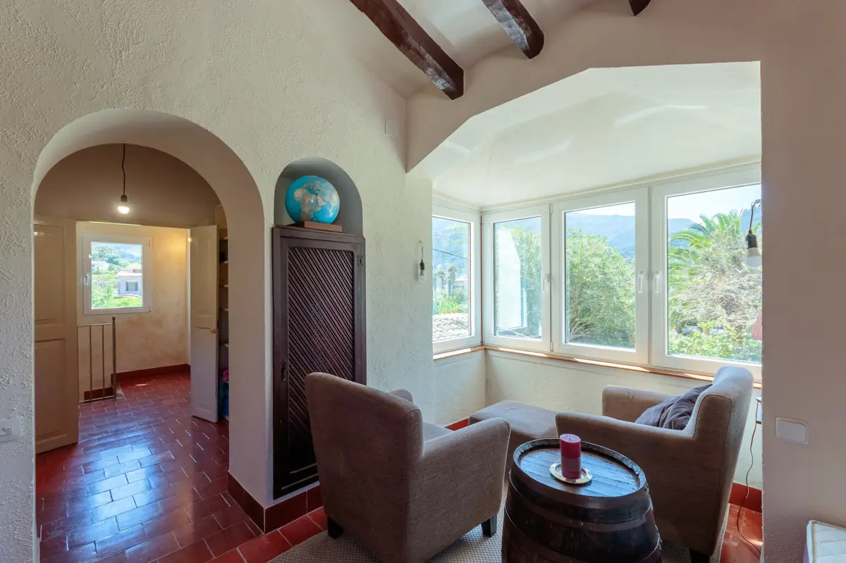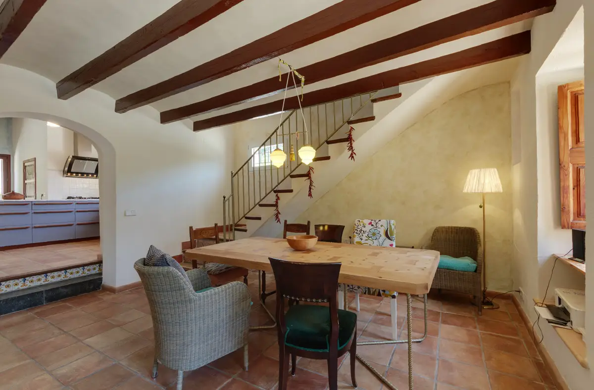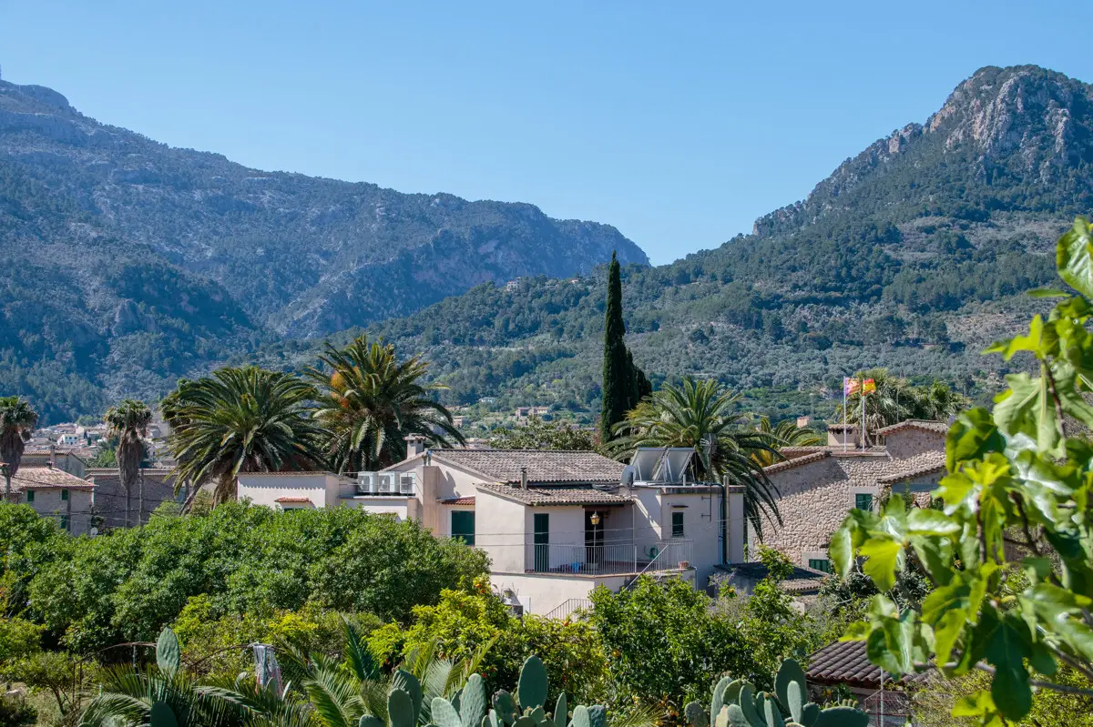 This beautiful finca is located in the Orange Valley near Soller, only about 10 minutes walk from the famous central market place with its bars, cafés and shops. The origin of the house goes back over 100 years and the careful renovation in 2022 has carefully preserved the style and the original. The beautiful garden with its 2805m2 is a true oasis of peace, the many fruit trees and palm trees create different areas to relax. The ensemble is completed by the old water fountain and the adjacent pool, as well as the wonderful summer kitchen and the various terraces. On the ground floor there is the entrance area, a spacious living area with pellet stove, the dining kitchen and two bedrooms, as well as a bathroom and WC. On the first floor there is a bedroom with en-suite bathroom and on the second floor another bedroom, also with en-suite bathroom. The equipment includes a modern heat pump, which cools or heats the house as needed. A private well supplies the house and the garden with water all year round via the irrigation system. There is also a carport and a charging station for electric vehicles.