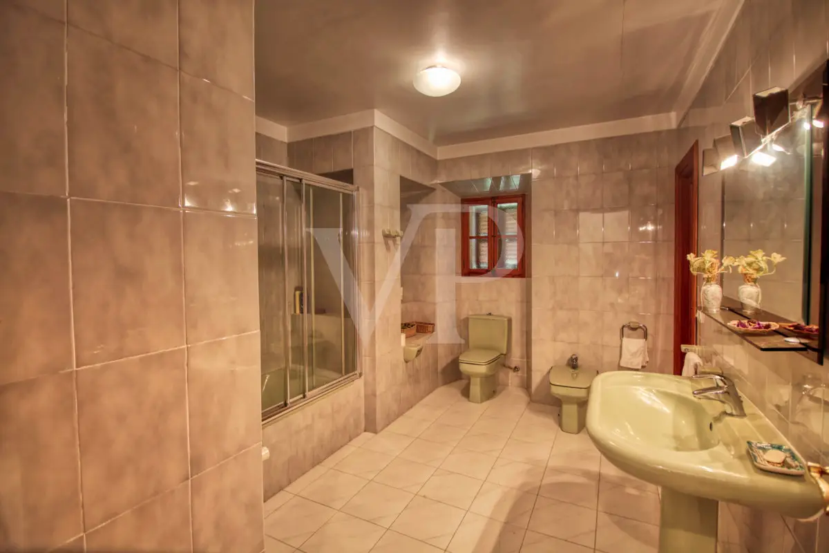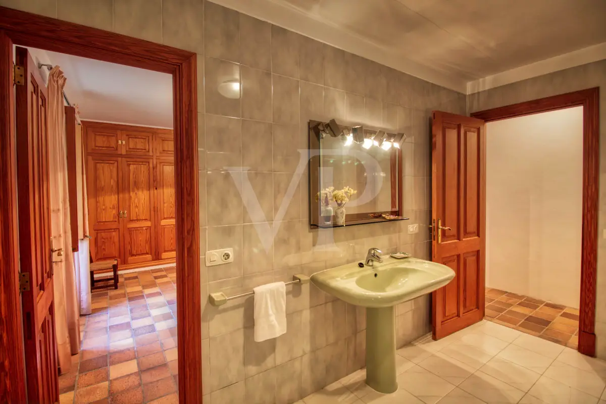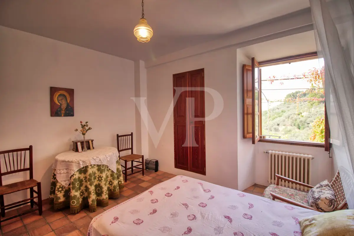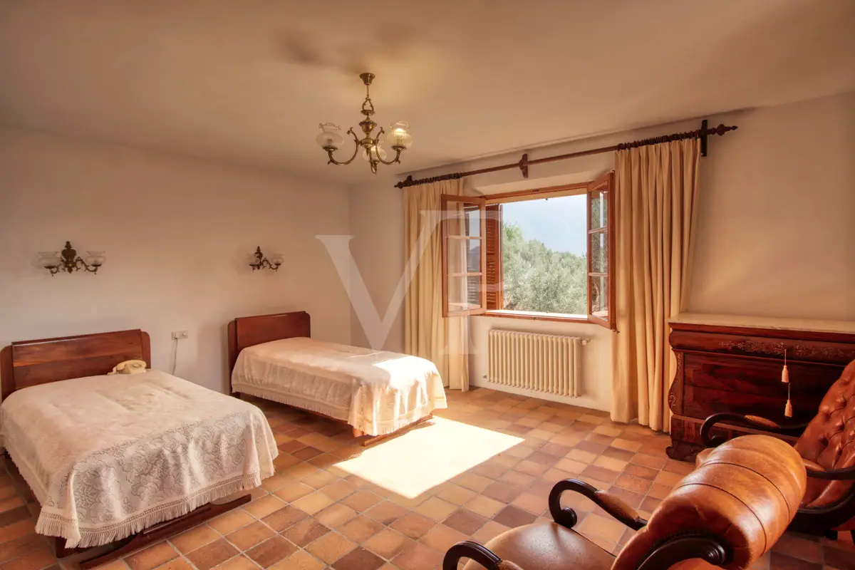 Situated on a fantastic hill at approximately 180 meters altitude, this spectacular property of almost eight hectares with a renovated eighteenth century house is for sale in Soller. A spacious and beautiful hall leads to this interesting property, a spacious living room with fireplace, a large room with a total of about 70 square meters. With direct access to a pleasant terrace of about 30 square meters. Fantastic rustic fitted kitchen open to the dining room with a slight slope and access to a covered terrace of approx. 60 meters with a built-in barbecue, as well as a pantry and cellar. On the upper floor there are five slightly sloping bedrooms and two large bathrooms, one of which is en suite. On the lower floor is the sixth bedroom suite. It also has a large office connected to the hall. In the basement floors it still retains its two old oil tanks with the possibility of reusing or reusing it for a cellar, the engine room as well as a warehouse and a cellar. One car garage in main building, plus large separate garage with space for four cars. Extensive olive grove in production, fruit trees such as 145 orange trees of the Valencia Late variety with drip irrigation, grape vines, apricots, medlars, lemon trees, kiwis, pomegranates... It has solar energy for sanitary water, city lights, oil central heating. With a large "safereig" water tank of 120,000 liters, two own unused water wells thanks to its two water sources that provide the necessary water all year round. Mallorcan shutters made of iron and wood in very good condition. A property that with just a few updates and improvements can become an exclusive property. There is also the possibility to build a swimming pool, thanks to its large plot. The property is in excellent condition and in an excellent location.