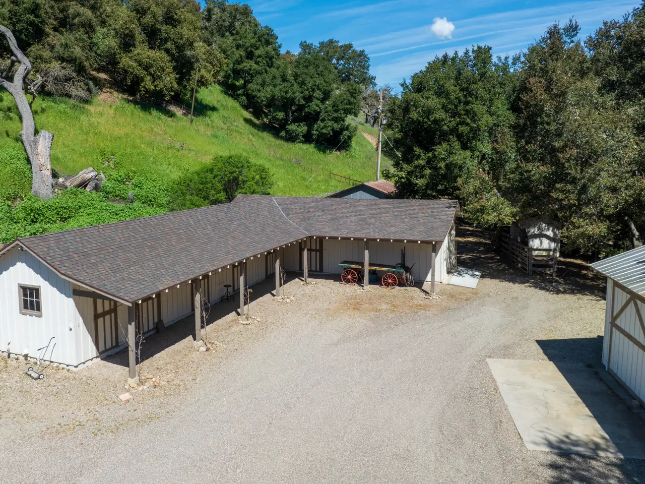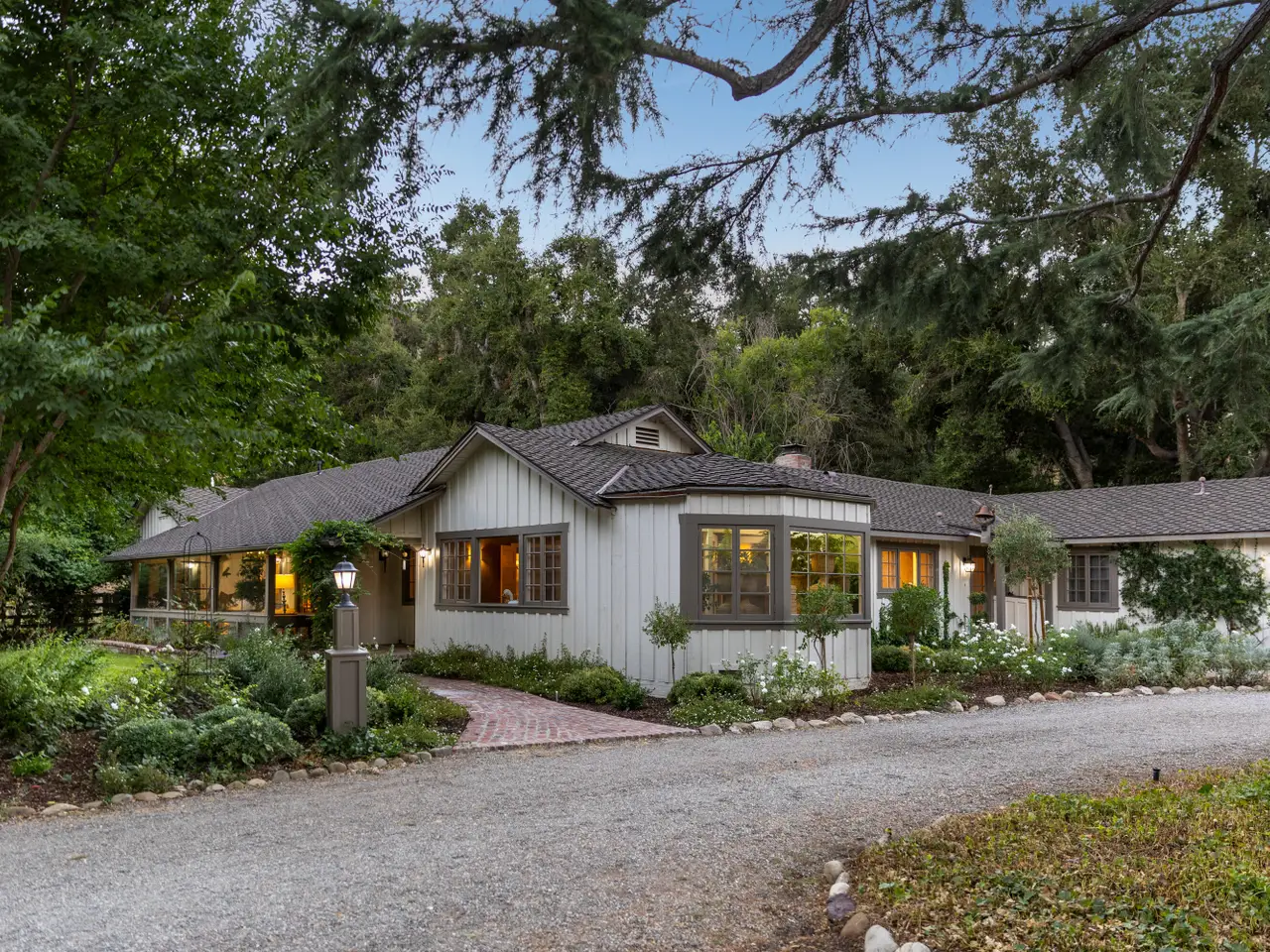 Nestled along the Alamo Pintado wine trail, this enchanting 37-plus-acre estate is located in the heart of Santa Ynez Valley, within the sought-after Ballard School District. This private retreat offers a sense of home and quality, evoking early Santa Ynez and California ranch living. The property's in-town location provides convenience, while its secluded setting among majestic old-growth oak trees ensures privacy. A gated entrance leads to a tree-lined driveway, flanked by antique stone pillars, winding over a bridge and through park-like grounds, creating a sanctuary-like atmosphere. The 1930s farmhouse is nestled amid mature trees and a seasonal creek. This classic California ranch house exudes warmth and charm, featuring a sun-filled living room with a large wood-burning fireplace... and a marvelous, screened sunroom. Over time, the home expanded to include 6 bedrooms, centered around a kitchen with a dual-sided fireplace and French doors opening to the patio and BBQ areas. A butler's pantry leads to a formal dining room and an additional screened porch, perfect for larger gatherings. The home retains much of its original charm, including hardwood floors, brick fireplaces, tongue-and-groove ceilings, and French doors, while blending old-world charm with modern comforts. The house is complete with a two-car garage, two additional covered car spaces, and an office. The estate also features a detached one-bedroom guest house, stables, barns, and two front pastures. Seventeen acres of land on the upper plateau offer opportunities for vines, pastures, or natural preservation. The outdoor amenities include a sparkling swimming pool, spa, tri-tip BBQ area, and tennis/pickleball court, all set against a backdrop of stunning natural beauty. Positioned at the forefront of the renowned wine trail, it's just a stone's throw from the beautiful areas of Ballard, Solvang, Santa Ynez, and Los Olivos. Conveniently close to schools, specialty grocery stores, award-winning bakeries, local coffee shops, boutiques, and prized restaurants, this property offers both tranquility and accessibility.