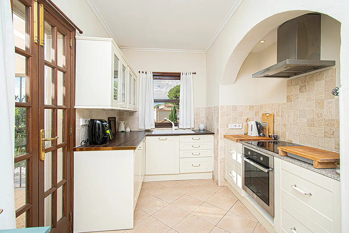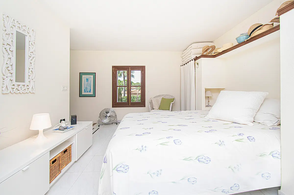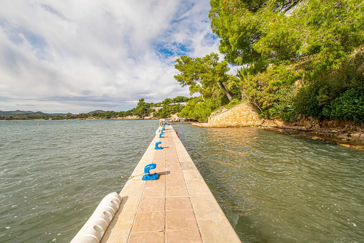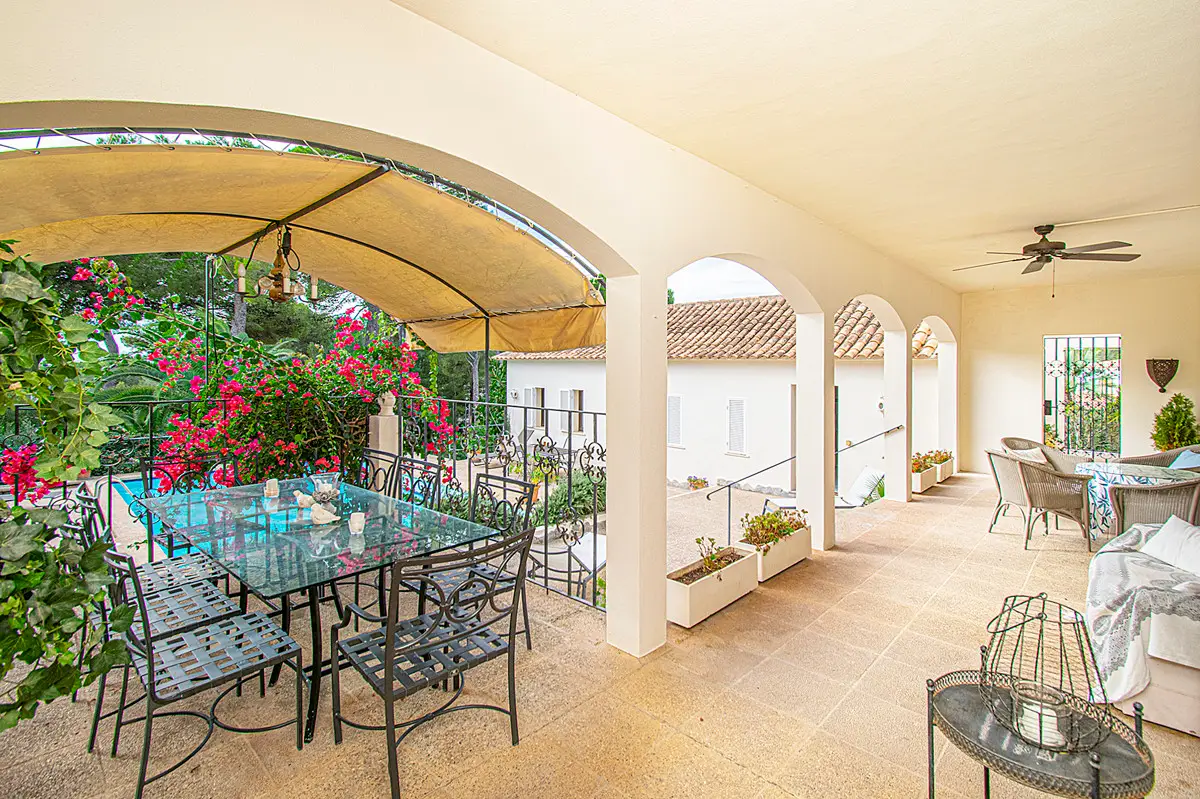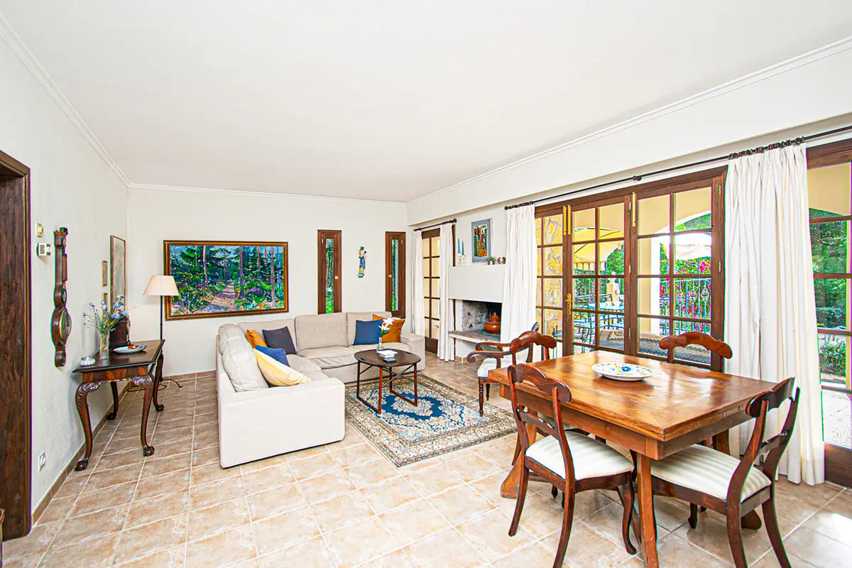 Beautiful villa with a large swimming pool and a wonderful Mediterranean garden in the exclusive residential area of Costa de los Pinos near Son Servera. Just a few steps from the sea is this property whose garden directly borders golf hole number 5 of the Son Servera golf course. The house has two floors and offers a total of five spacious bedrooms, four bathrooms, a guest toilet, a large open room with a beautiful fitted kitchen and a sunny living-dining room with a fireplace. From this floor there is access to a large covered terrace with dining area and a few steps down to the sun terrace with a magnificent swimming pool. On the first floor there is also a terrace from which you have a beautiful view of the garden, the pool and the sea. Outside there is a fantastic garden with lots of vegetation. The villa also has hot/cold air conditioning, built-in wardrobes in the bedrooms, lots of natural light, parking, plenty of space and proximity to the sea. This property lacks absolutely nothing to become your dream home! Son Servera is a coastal town in the east of the island. It is 71.2 km from Palma and 20.1 km from Manacor. The towns of Artá, San Llorenç and Capdepera are nearby. The municipality of Son Servera has three town centers on the coast: Cala Millor, Cal Bona and Costa de los Pinos. In the center of this place are the town hall, the church of Sant Joan Baptista and the New Church. The old town of Son Servera is a pedestrian street with a few shops and cafes. Near Son Servera you can visit the Arta weekly market, which takes place every Tuesday. Parking Space 1 x free space