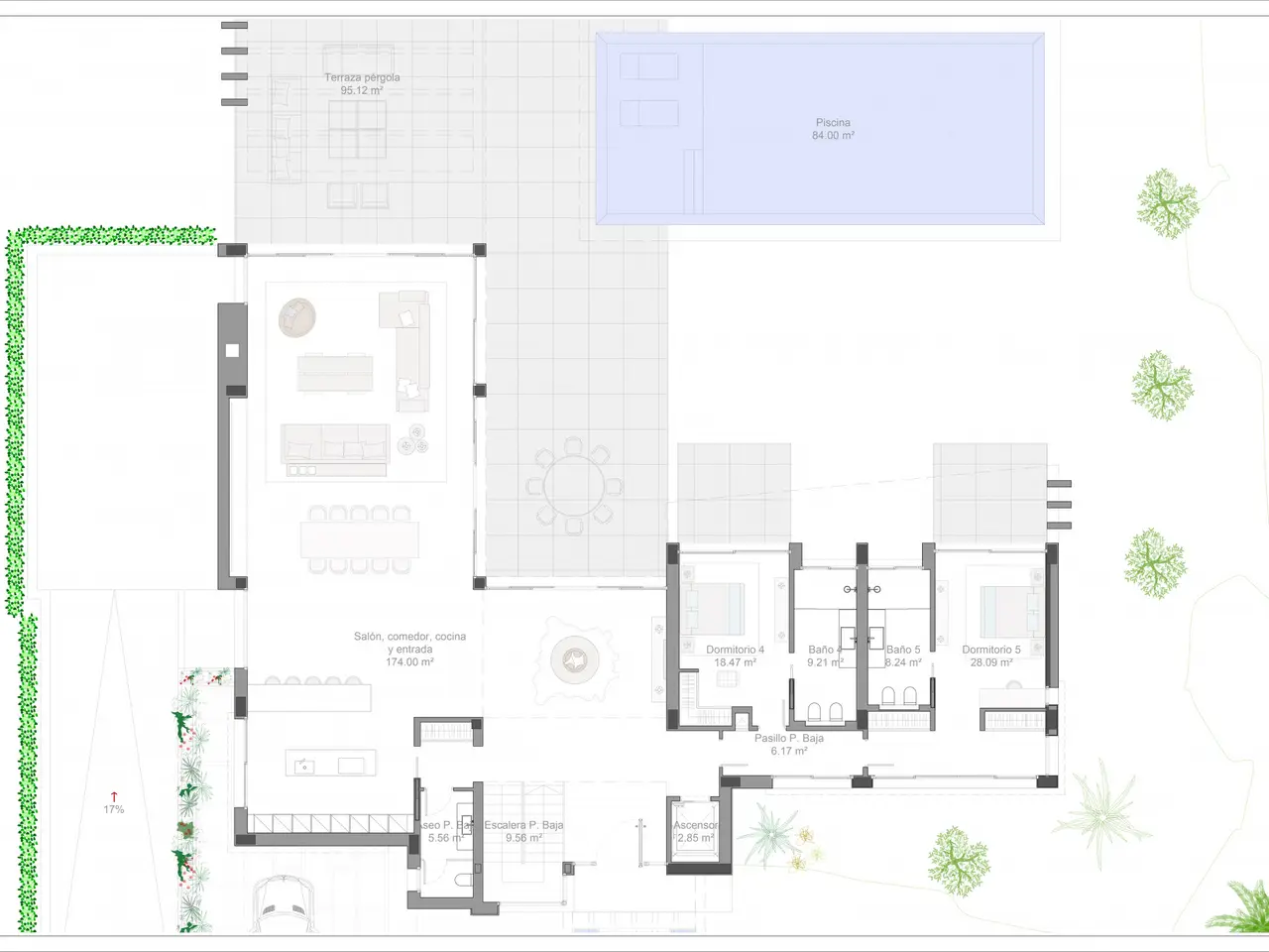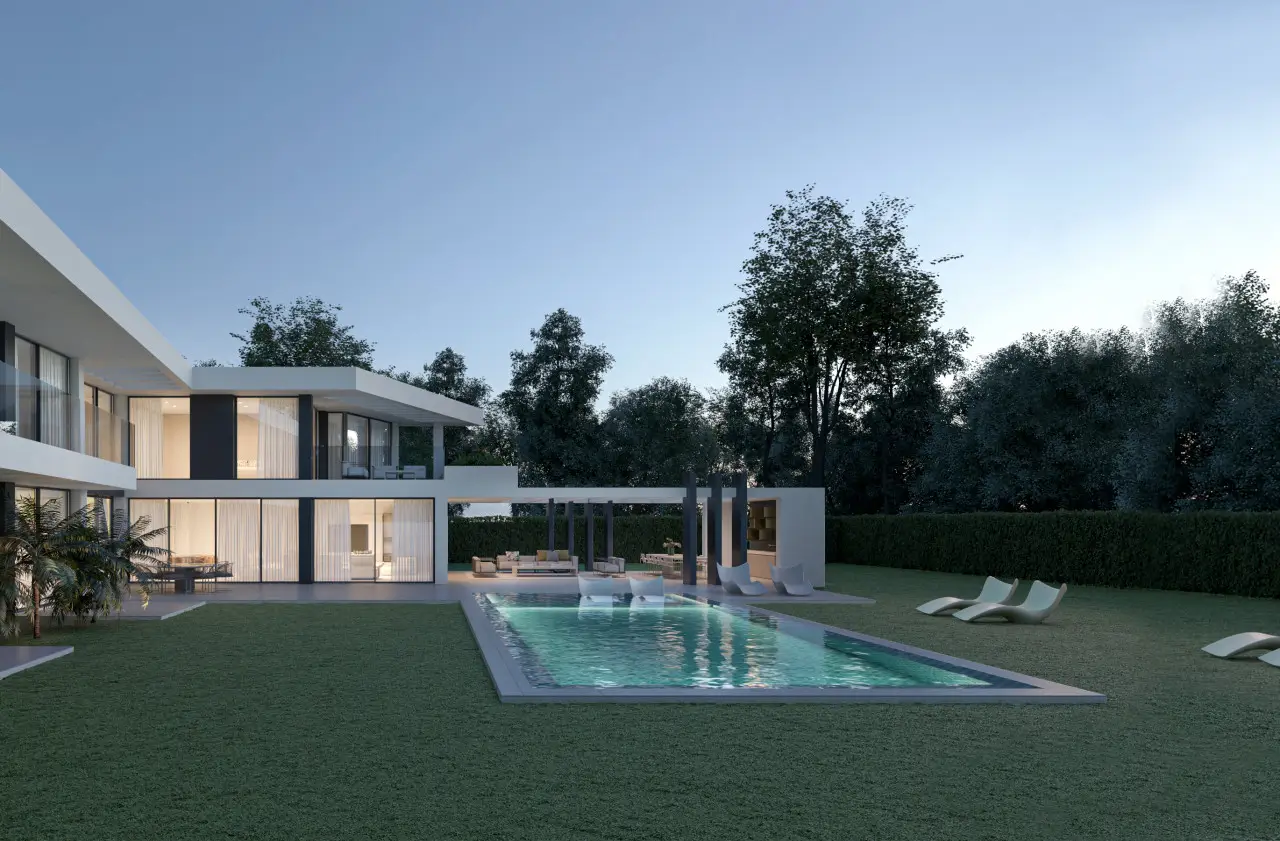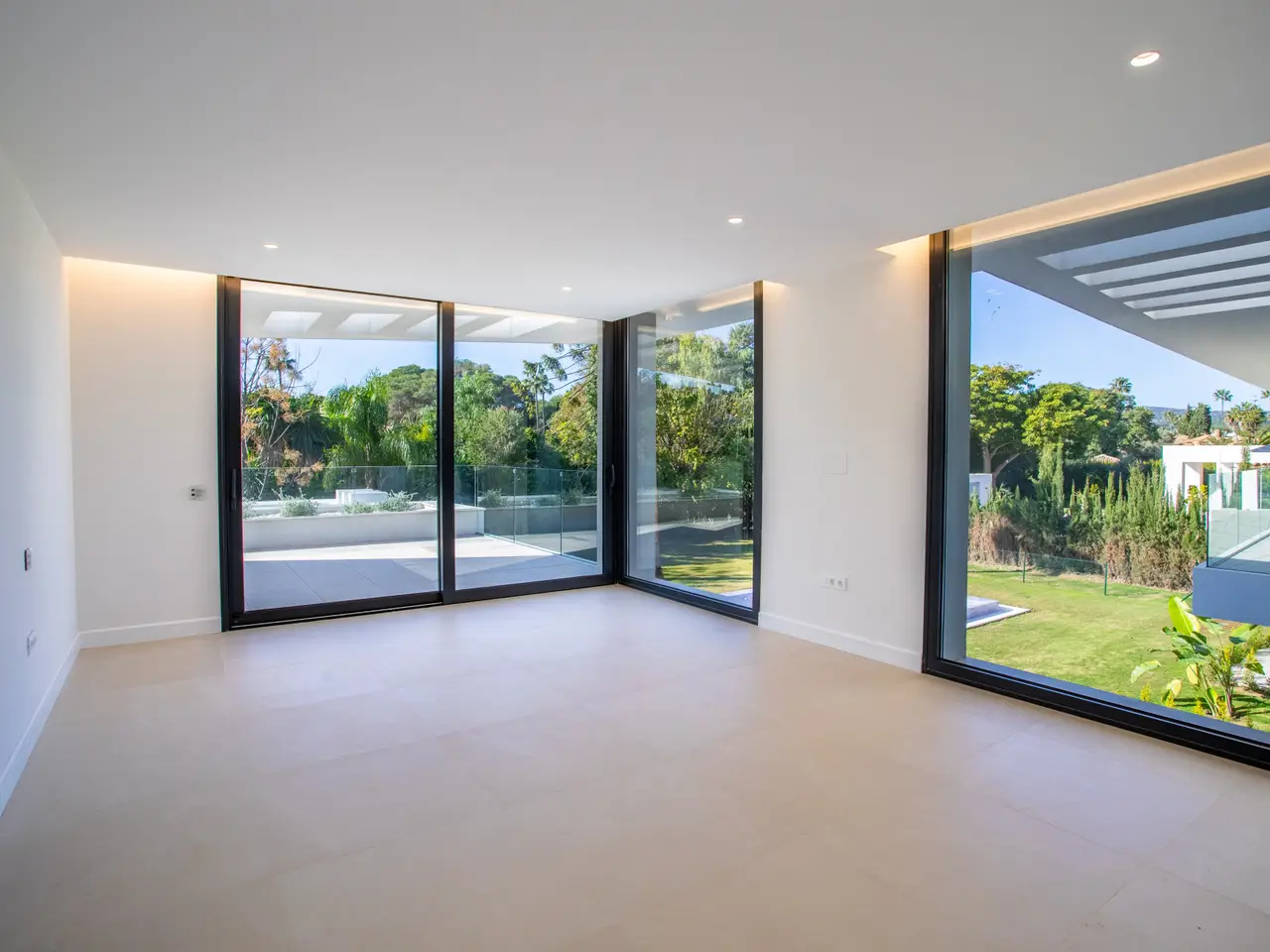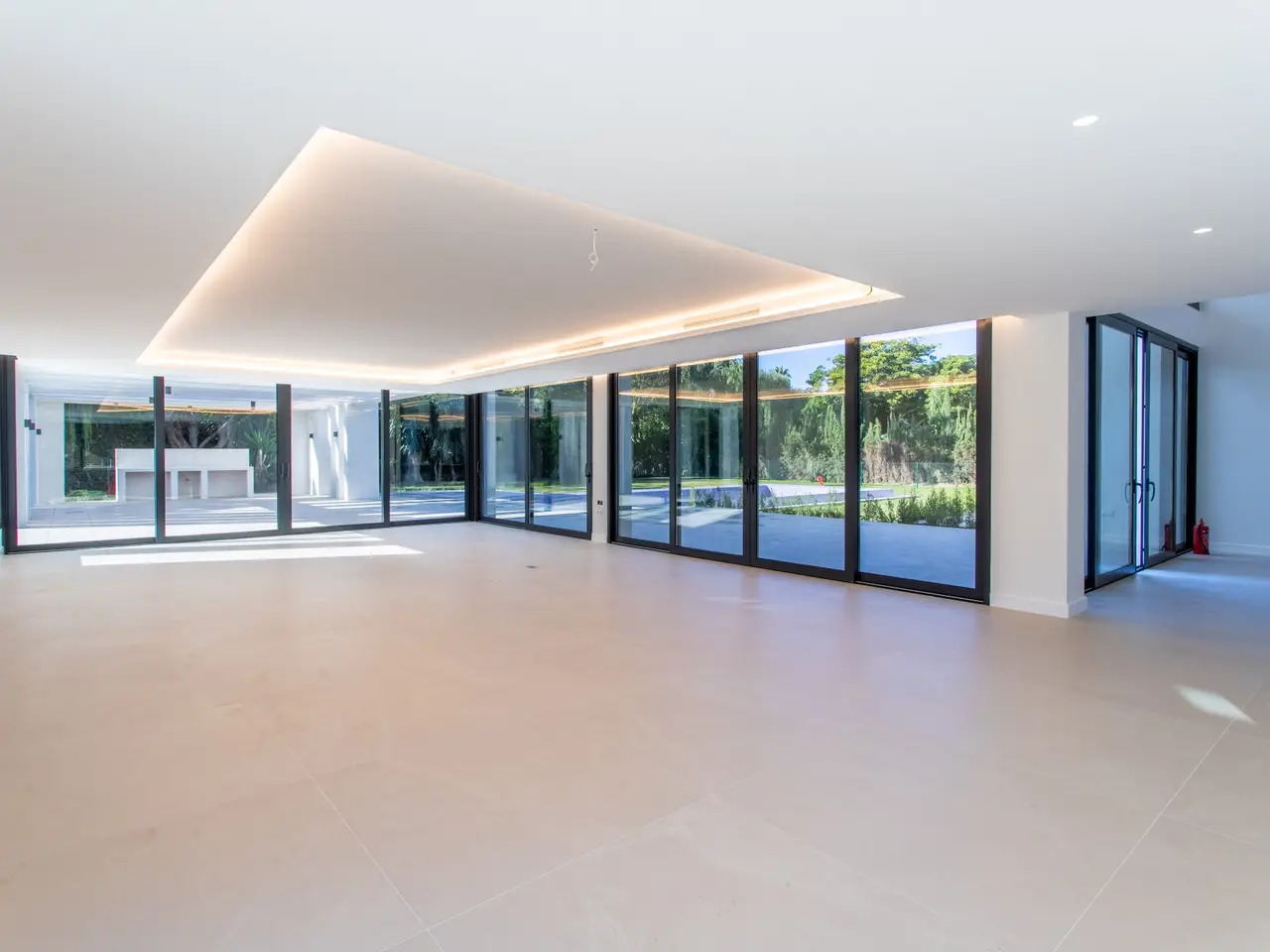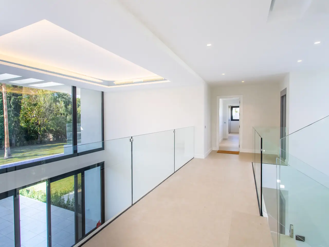 Located on a plot of over 2,000 square meters in one of the most exclusive areas of Sotogrande Costa, this magnificent villa combines modern and elegant style with its vertical lines and sober colors. The house is surrounded by large windows, maximizing natural light and energy efficiency. It features 5 bedrooms, 5 bathrooms, and 2 guest toilets. The ground floor consists of a beautiful entrance hall that separates the two bedrooms, both with ensuite bathrooms, from the spacious living-dining area with an open kitchen and a fantastic island. There is also a guest toilet and an elevator connecting all floors. From the living room, you can access the garden through a lovely terrace with pergolas, perfect for enjoying unforgettable moments under the moonlight with a drink or al fresco dining, taking advantage of the excellent climate of the area. Next to this terrace, there is a 14x6m infinity pool with LED lighting, offering both a swimming area and a relaxation area with sun loungers. The pool also has pre-installation for heating, so you can enjoy a swim after a long day of work. On the first floor, you will find an impressive master bedroom with an ensuite bathroom, a dressing room, and a private sitting area. The master bedroom also has access to a covered porch with stunning views. On the other side of the first floor, there are two more bedrooms, both with ensuite bathrooms. On the next floor, there is an uncovered terrace of 150 square meters. Can you imagine it? Finally, the basement offers endless possibilities. In addition to a covered garage of almost 50 square meters, a laundry room, and a toilet, there is a spacious open area of 149 square meters that can be used as a playroom for children, additional bedrooms, a gym, a wine cellar, a spa, or a magnificent home cinema! As for the quality of the materials, this spectacular villa is equipped with a reinforced door and energy-efficient VRF air conditioning system, as well as ventilation systems with heat recovery for increased comfort and energy savings. It also has underfloor heating and an aerothermal system. The villa is pre-installed for solar panels and an electric car charging point. The kitchen is furnished and equipped by Modulnova, with appliances from the Gaggenau brand. This is the perfect villa in the perfect location. Call us to arrange a viewing!