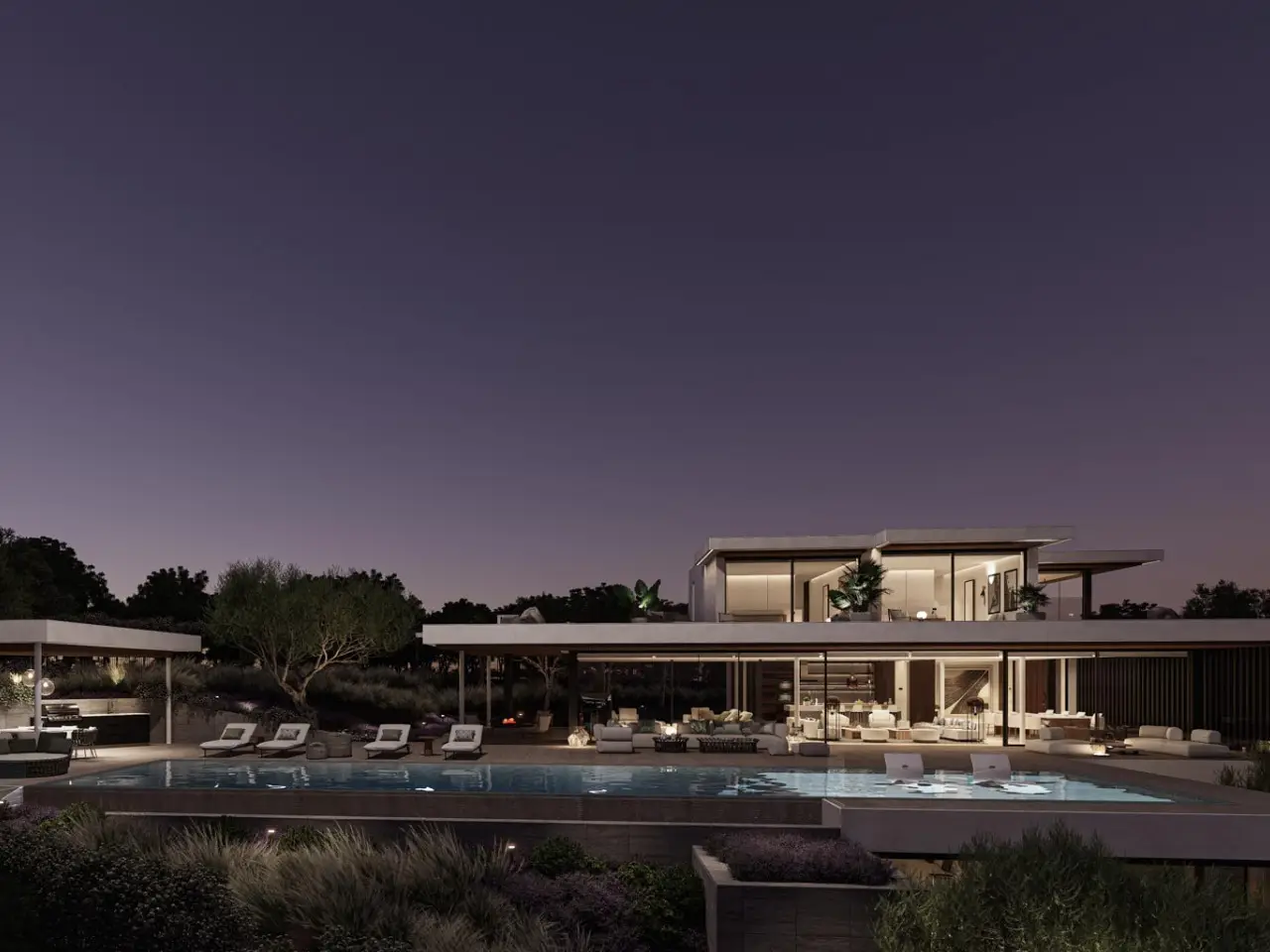 Infinity pool merging with lounge terrace