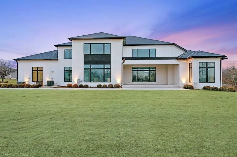 Recently appraised at $3.1 Million, seize the opportunity to move right into this beautiful brand-new "urban chic" contemporary luxury home at the Woods of South Barrington. The perfect east facing location where you can watch the sunset from your backyard overlooking a gorgeous pond. The only NEW construction luxury estate completed in 2025 (Certificate of Occupancy 07.08.2025), features nearly 9,000 sq. ft. of indoor living with the most extravagant finishes. Your eyes will light up as you approach the custom illuminated brick paver circular driveway. Sensational lighting and chandeliers will dazzle you with a functional open floor plan. A stunning chef's kitchen with Thermador appliances, plus formal dining room, lounge and executive office. First-floor primary bedroom suite and spa-like bath with radiant floors on the main level. The second floor features another master bedroom suite, home theatre, loft, and two spacious bedroom ensuites. The 3,700 sq. ft. finished basement gives you room to entertain with a recreation area, media & game area, full wet bar, full bath, and flex room. Expand your automobile portfolio and increase the capacity of the four-car garage with LIFTS to store up to SEVEN vehicles! Smart house technology option to control the temperature, exterior lighting, garage, security system and irrigation system with ease from your smart phone. The convenience of city water & sewer. No well. No septic. Option to build an in-ground swimming pool. "Award-winning" Barrington Schools and park district. Exciting shops, restaurants, and entertainment at The Arboretum of South Barrington are just one mile away. Walk, run or bike the nature path to Community Park with a playground, tennis courts, pro turf fields for soccer and lacrosse! Close to downtown Barrington and Metra train station. Easy access to I-90, O'Hare & Woodfield Mall. Stop dreaming. Start living the luxury lifestyle today at 60 Wood Oaks Drive, South Barrington!