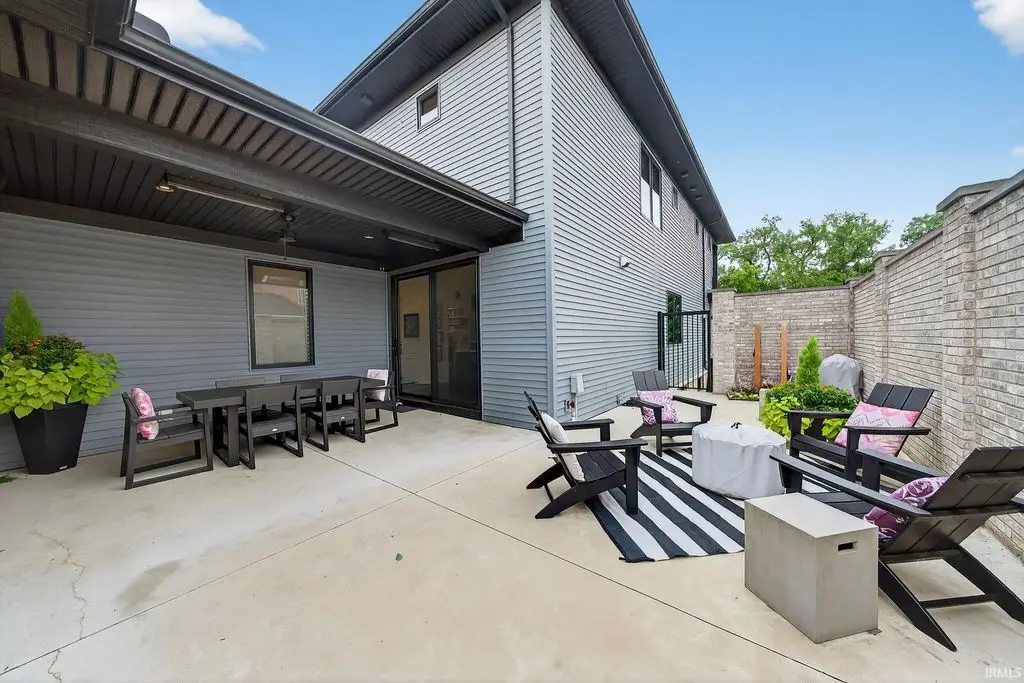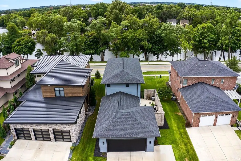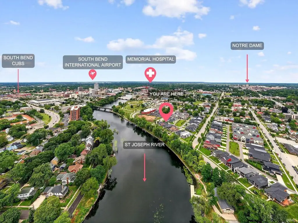 This STUNNING 4-bedroom, 3.5-bath home in the sought-after Riverwalk subdivision blends timeless style with modern convenience. Step inside to soaring ceilings, sun-filled spaces, and an open floor plan perfect for entertaining or everyday living. The gourmet kitchen with Bosch appliances flows seamlessly into the dining and living areas, where large windows frame serene views of the St. Joseph River and a cozy fireplace creates the perfect gathering space. Upstairs, the private primary suite offers a spa-like bath and its own deck ideal for quiet mornings or unwinding at the end of the day. The finished lower level is an extension of the home, complete with a media-ready family room, a full bathroom, and a private bedroom, perfect for guests or multigenerational living. Outdoors, multiple patios and decks provide spaces to relax or entertain. This home is as smart as it is beautiful, with integrated lighting, security, and whole-home audio making comfort and convenience just a tap away. Perfectly located 1.6 Miles from the University of Notre Dame. Close to local parks, shopping, and dining, Riverwalk living means every day feels like the best of both worlds, peaceful retreat and connected lifestyle.
