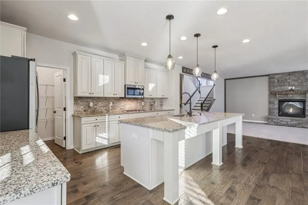 Welcome to 4462 Walnut Ridge, a stunning 4-bed, 5-bath home with a 3-car garage and open floor plan. The living room features a gas fireplace and flows into the dining area and gourmet kitchen with granite countertops, stainless steel appliances, walk-in pantry, and soft-close cabinetry. A private den with French doors, engineered hardwood floors, and elegant mouldings offers space for a home office or playroom. A mudroom with built-in storage is located at the garage entrance. The dining room opens to a concrete covered patio with sun shades, recessed lighting, ceiling fans, and serene views of the fenced backyard. Upstairs, the primary suite boasts 2 walk-in closets and a spa-like bath. Three additional bedrooms and two baths, a study nook, and laundry room complete the second floor. The finished lower level includes a game room with live edge bar and barrel sink, an exercise room, and full bath. A truly spectacular home - where luxury, comfort, and convenience merge in perfect harmony.