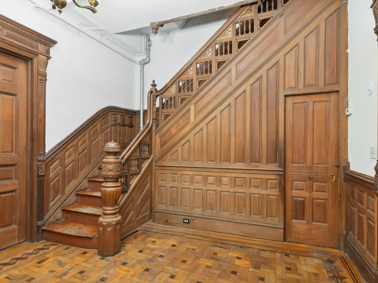 This Mount Morris Park Historic District gem built in 1909 is loaded with preserved original details including nine fireplaces, wood floors (some with intricate inlay), crown molding, ceiling medallions, wainscoting and beautifully detailed banisters and stairwells. At 20' wide and approximately 6,500 square feet, each floor is about 1,300 square feet with a multitude of design options. The parlor level has almost 12-foot ceilings and the upper floors are between 9 and 10 feet. The current configuration is a two-family with eight bedrooms and five full bathrooms. The ground floor has a living room, full bath with clawfoot tub, laundry room, and an enormous chefs kitchen leading to the backyard. The Parlor floor consists of a library, center hall with grand staircase, living/dining room and a large unfinished full bathroom. Floors 3 and 4 each have two very large bedrooms with vast walk-in closets/dressing rooms and an expansive full bathroom. The third floor has a washer/dryer hookup and the fourth floor has an additional bedroom. The top floor is currently set up as the second unit (without a separate entrance). It consists of a living room, kitchen, full bath with clawfoot, two small bedrooms and one large bedroom. There are skylights over the stairwell and bathroom plus charming arched windows in the front facing living room. The roughly 9x14-foot extension extends to the 4th floor leaving a potential deck opportunity on the 5th floor. 6 West 121 is on the south side of the block with north and south exposures. It is situated just a half block to Marcus Garvey Park and a half block to a charming section of Lenox Avenue lined with small privately owned businesses and restaurants. The Mount Morris Park Historic District is a stunning section of Harlem with wide brownstones and tree-lined streets. Lenox Avenue is lined with conveniences from Whole Foods to Trader Joe's (opening in August), dry cleaners, CVS, a wonderful selection of privately owned restaurants and boutiques, the 2/3 express train, M60 to LaGuardia and much more! Mount Morris Park Historic District Homes qualify for The historic homeownership rehabilitation credit, equal to 20% of your qualified rehabilitation expenditures. not to exceed $50,000 per taxpayer per year. Spouses are eligible to claim up to $50,000 credit each.