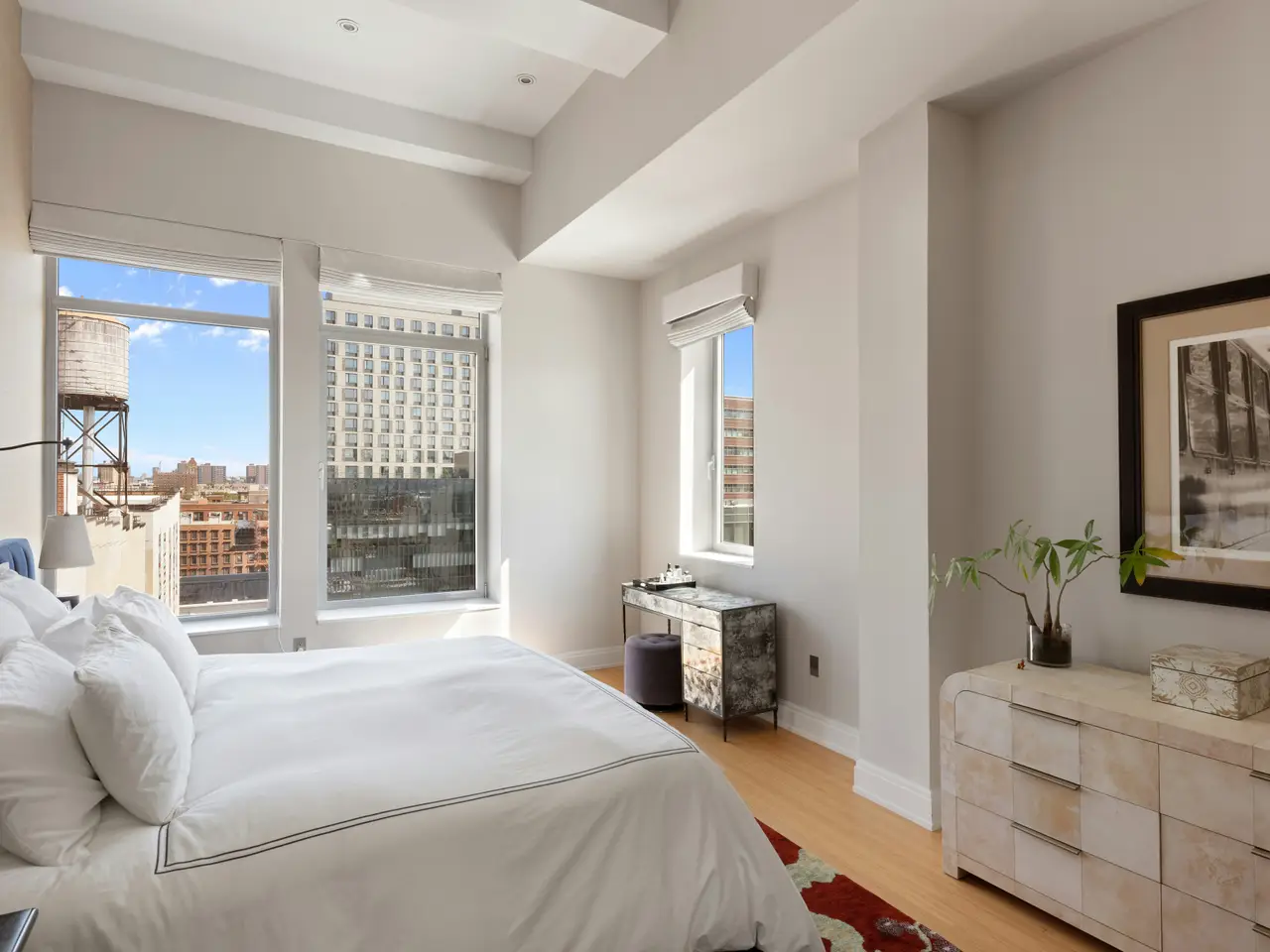 A Spectacular Harlem Loft with Iconic Views Welcome to Loft 124, where soaring proportions, historic character, and modern luxury converge. This expansive 1,959 sf loft is in pristine condition and is flooded with sun from every room. The elevator opens directly into the apartment, where a foyer leads to a dramatic great room with 13-foot ceilings and 10-foot windows. From here, enjoy truly spectacular, wide-open city views stretching over Harlem's landmark brownstones to Central Park and all the way to Billionaires' Row and beyond. The vast open layout creates an ideal setting for both grand entertaining and serene everyday living. The windowed open chef's kitchen seamlessly integrates into the living space, combining style and functionality with modern cabinetry, thick marble countertops, a wine refrigerator, and top-tier stainless steel appliances, including a six-burner Viking range, Sub-Zero refrigerator, and Bosch dishwasher. A huge breakfast bar with seating for stools adds the perfect spot for casual dining or morning coffee. A long, elegant hallway lined with closets, a laundry room, and a full bathroom ensures peaceful separation between entertaining areas and the bedrooms. The expansive primary suite boasts high beamed ceilings, both north and east exposures, and a custom-designed, oversized dressing room that flows into a spa-caliber en suite bathroom with a 6' Duravit soaking tub, double vanity, and separate shower. The second bedroom enjoys beautiful water tower views, as well as a thoughtfully designed custom office nook. Additional features include central heating and air-conditioning, bamboo floors, motorized shades, a full-size vented washer/dryer, extensive closet space (8 in total), plus an enormous 7' x 14' (98 sf) private storage room in the basement, included at no additional cost. Loft 124 is an intimate boutique condominium with just 21 residences. Amenities include a full-time superintendent, virtual doorman, fitness room, yoga room, bike room, and two roof decks offering breathtaking panoramic views from Central Park to the Harlem River and beyond. Situated around the corner from the 2/3 express subway at 125th Street, Trader Joe's, and Whole Foods Market-with an array of dining, shopping, and cultural destinations nearby, plus easy access to the A, B, C, D, 4, 5, and 6 trains and Metro-North-this residence delivers absolute luxury in move-in condition.