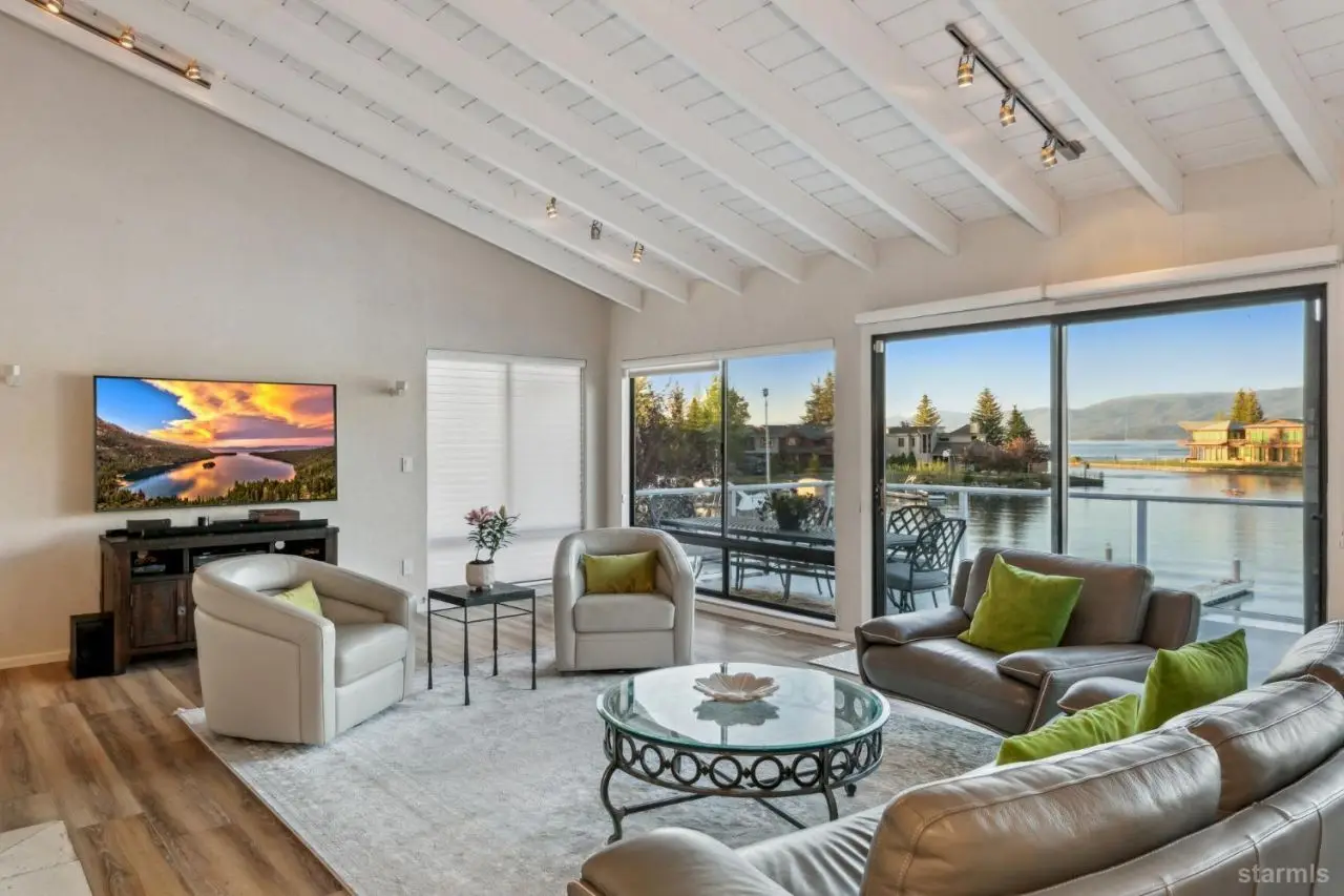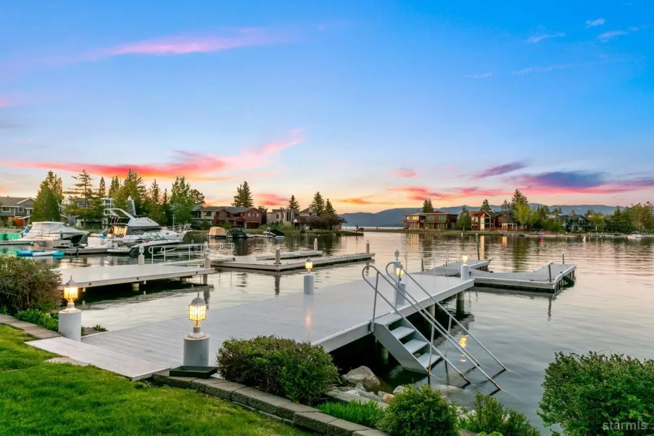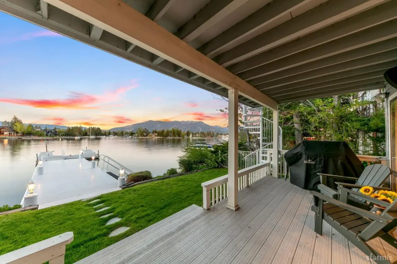 Situated in the prestigious Tahoe Keys, this waterfront home offers direct lake access and sweeping views of Lake Tahoe and the surrounding waterways. Step out your back door to your own private dock and set off for a perfect day of boating on the crystal-clear waters of the Lake Tahoe. Upstairs, a bright and spacious open-concept living area features a beautifully designed kitchen and an elegant dining and living space, all framed by floor-to-ceiling picture windows that showcase breathtaking lake views. Step outside to the deck perfect for relaxing, enjoying the sunshine, and hosting evening BBQs. This level also includes two well-appointed bedrooms and a finished loft space, ideal for additional lounging or guest accommodations. The lower level is designed for entertaining and comfortable living, featuring a stylish butler's station with a sink, refrigerator, and wine cooler, perfect for effortless summer gatherings. This level also includes a spacious family room, two additional bedrooms, a full laundry room, and a generous two-car garage. As a resident of the exclusive Tahoe Keys Property Owners Association, you'll enjoy access to a host of premium amenities, including a private beach, indoor and outdoor pools, a clubhouse, tennis courts, and more. This is a rare opportunity to experience luxurious waterfront living with unparalleled access to all that Lake Tahoe has to offer.