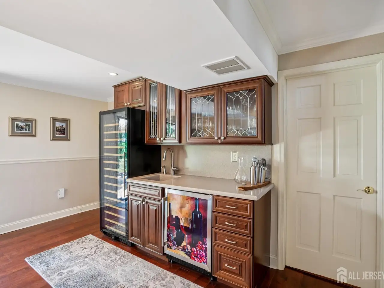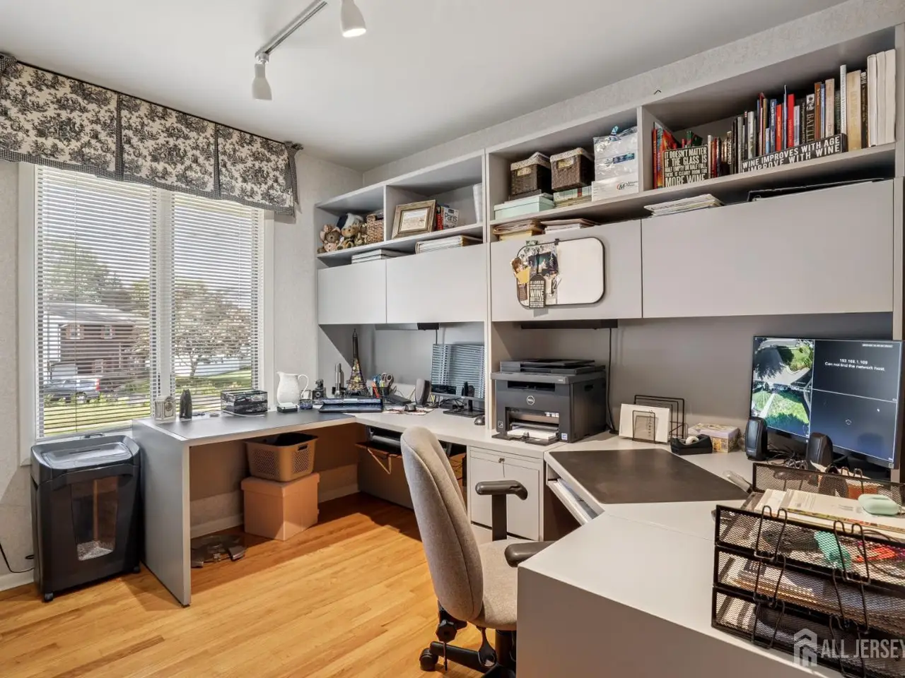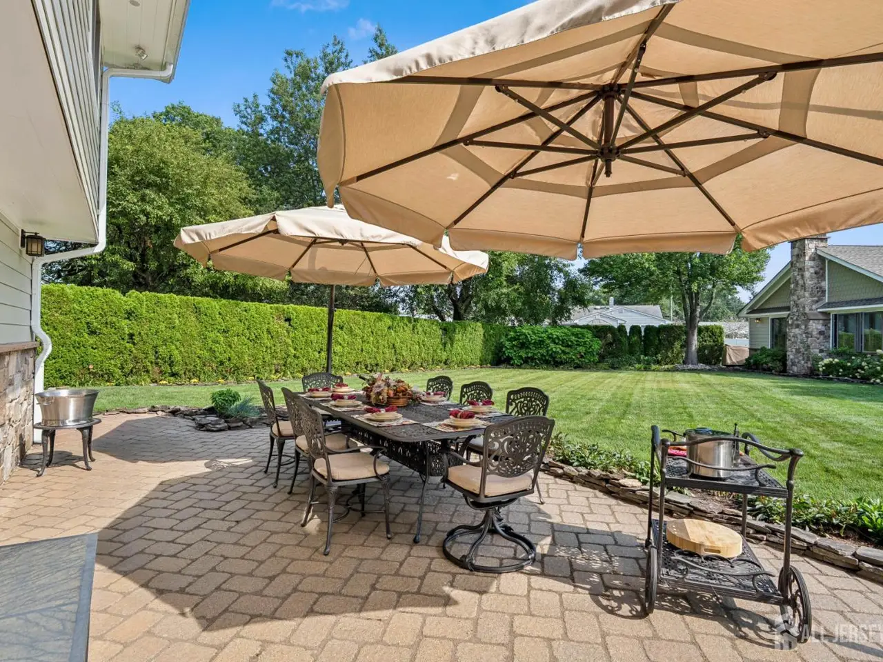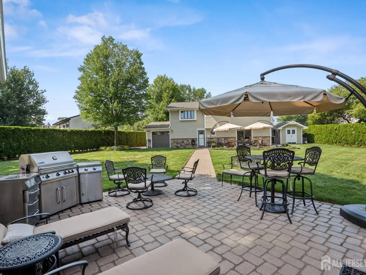 Your Private Poolside Paradise Awaits! At the heart of this property lies a one-of-a-kind all-season pool house retreat-a true destination in itself with over 2,000 sq. ft. of resort-style living. Enjoy a 16' x 32' in-ground pool, framed by elegant finishes and anchored by a floor-to-ceiling stone fireplace that brings warmth and ambiance year-round. A dedicated game room with pool table ensures endless entertainment, while the fully equipped kitchenette is perfect for cocktails, snacks, and poolside dining. A full bathroom with washer/dryer and large soundproof windows make the space as practical as it is luxurious. Whether you're hosting lively gatherings, unwinding with family, or enjoying a private swim, this pool house is designed for unforgettable entertaining and total relaxation. Complementing the pool house is a beautifully maintained 4-bedroom, 3.5-bath home with custom upgrades, Corian countertops, a lower-level family room with wet bar, and a spacious primary suite. Outdoors, professional landscaping with over 300 arborvitae, underground sprinkling system, multiple patios with pavers, and accent lighting create an ideal setting for both privacy and entertainment. Close to shopping, to New Jersey Transit, and major highways. This property is more than a home-it's a lifestyle.