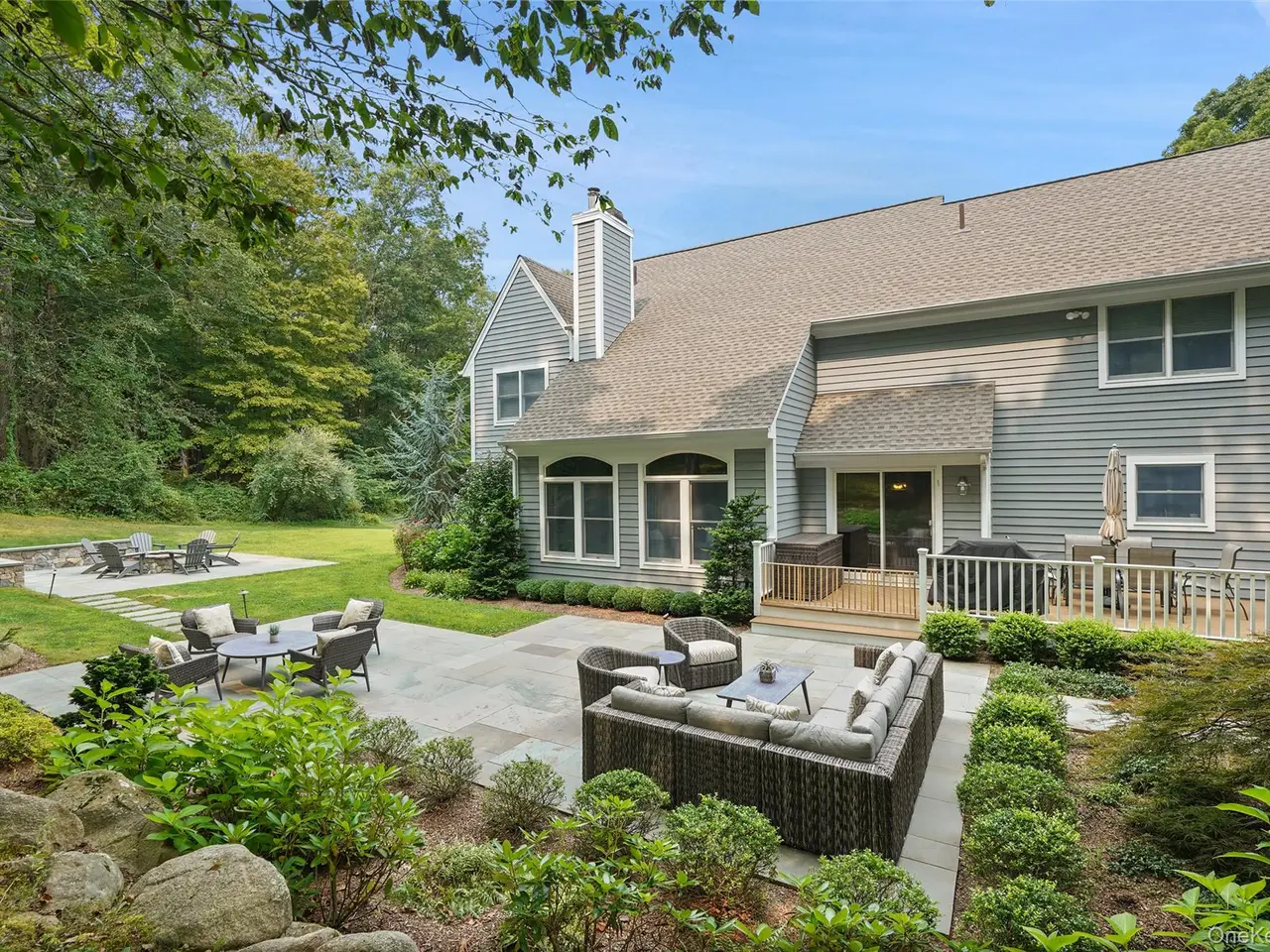 Tucked away on a peaceful cul-de-sac, a long, tree-lined driveway sets the tone as you approach this 4-bedroom, 3.5-bath colonial set on 4 private acres in the award-winning Katonah-Lewisboro School District. This home offers a welcoming front porch, a 3-car garage, and an ideal blend of space, comfort, and privacy. The main level features a large kitchen opening to an expansive family room with open-concept flow, perfect for everyday living and entertaining. Upstairs, the oversized primary suite includes generous closets and renovated primary bath. Three additional bedrooms each feature direct bathroom access, providing comfort, convenience, and privacy. The lower level offers an unfinished basement with potential for customization, whether for recreation, fitness, or home office space. Outdoor living includes a spacious deck and recently completed patio with fire pit and sitting area, all surrounded by natural privacy. Don’t miss this exceptional opportunity to make this beautiful property your next home - schedule your private showing today.