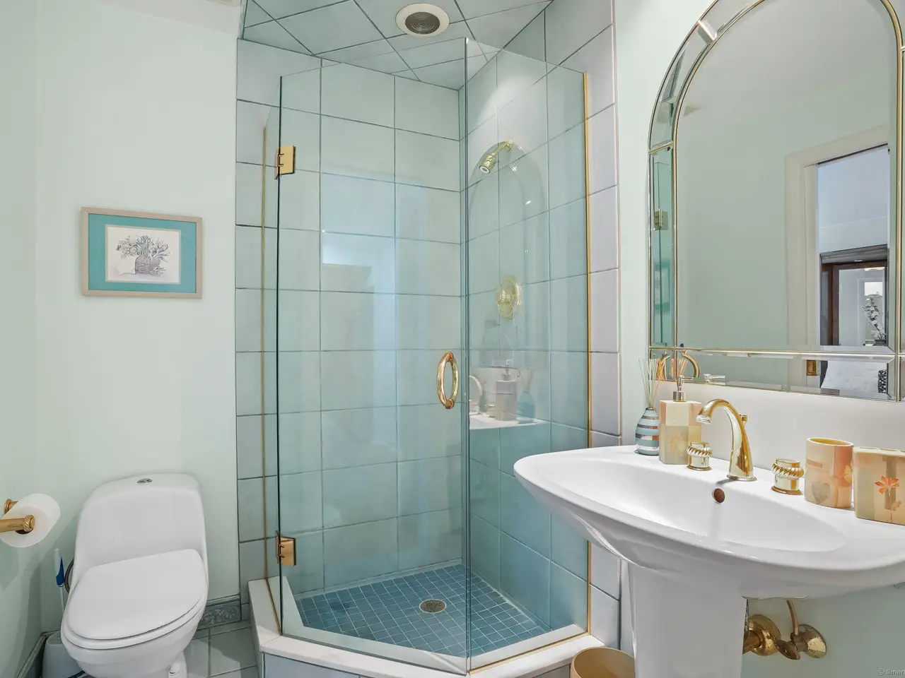 Heated floors, large granite enclosed heated tub, bidet, & steam shower