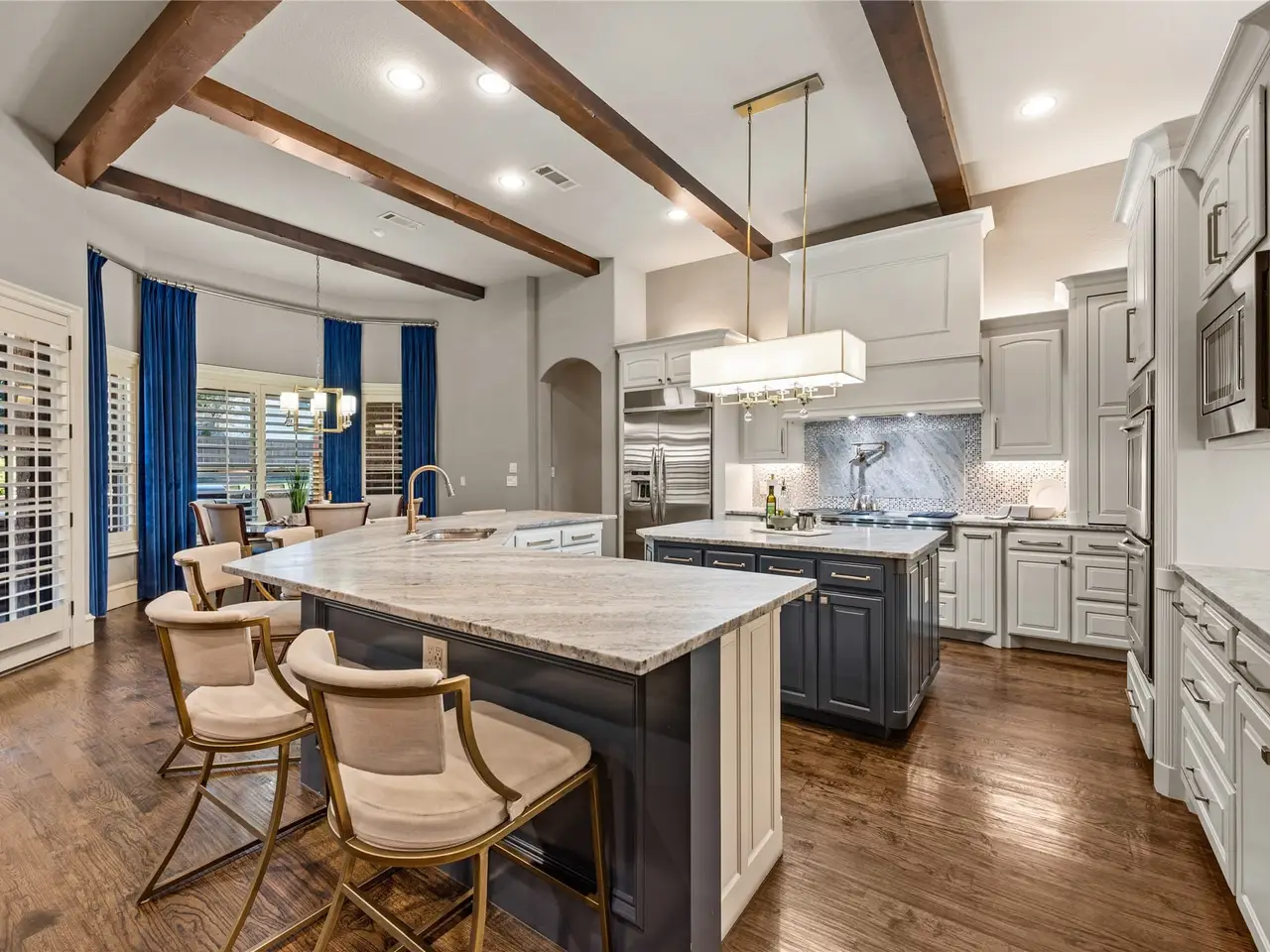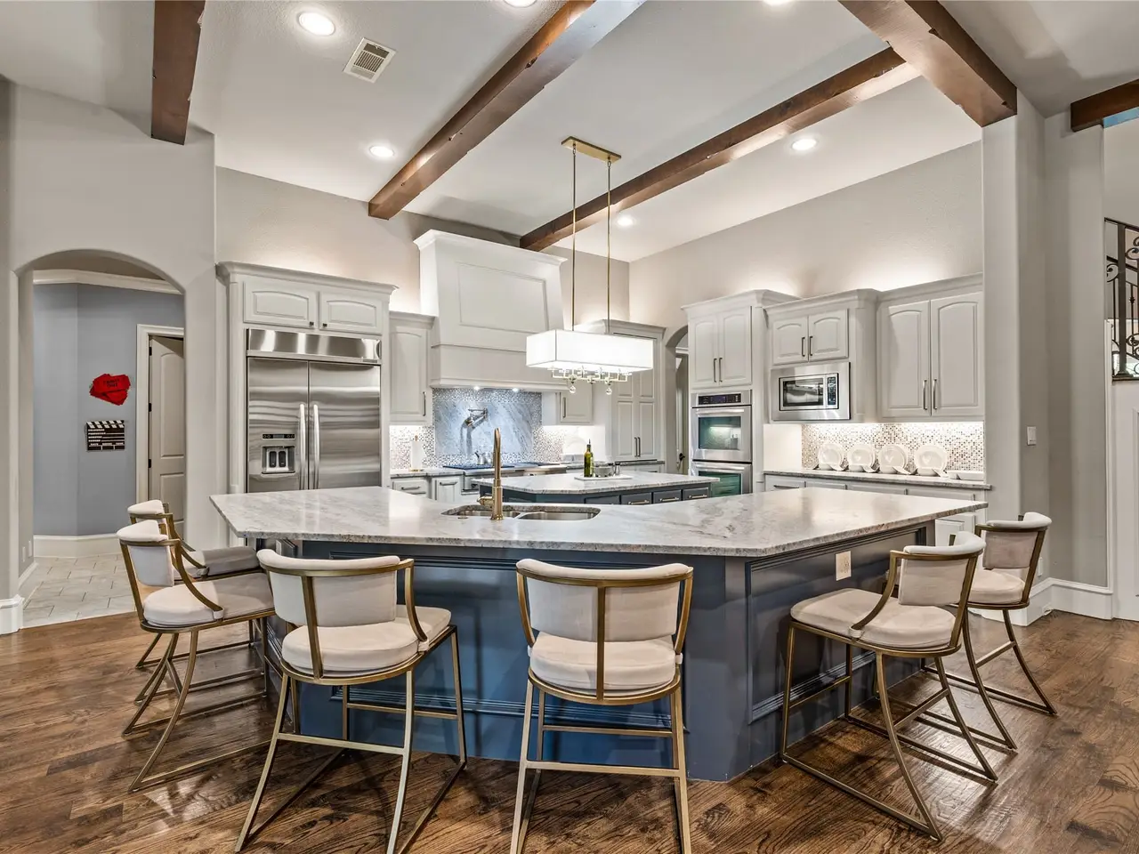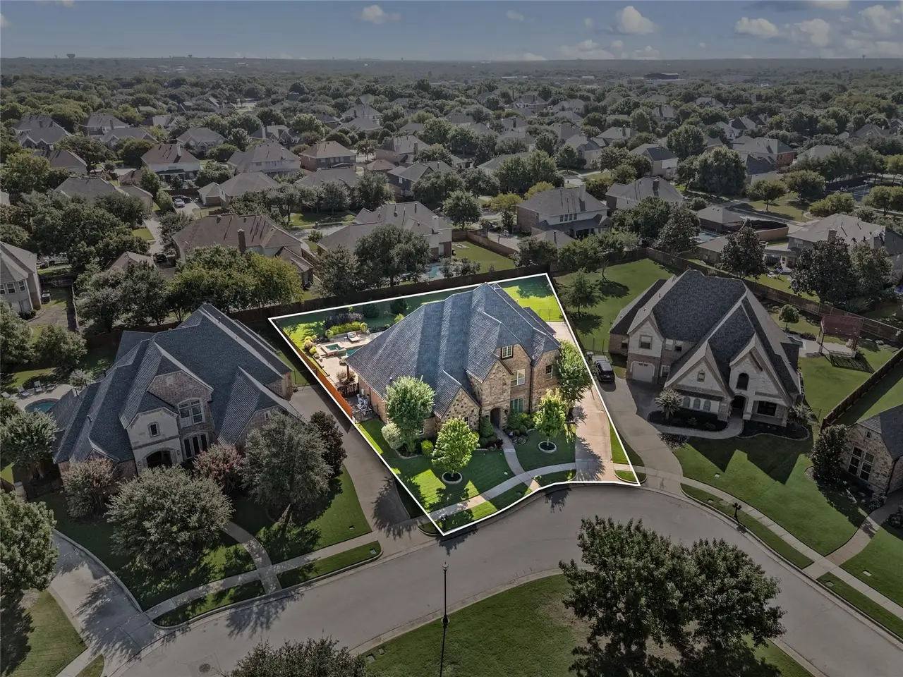 Meticulously maintained, one-owner, custom home in the quiet Camden Park subdivision. Presenting the rare combination of a custom finish-out, privacy, and functional outdoor play space. The kitchen has been recently updated with a large center island and amazing Fantasy Blue Satin marble countertops. Stainless steel appliances, including a 6-burner gas range and double ovens. Huge walk-in pantry and butlers pantry with wine storage and refrigerator. Exceptional floor plan with the kitchen open to the living room and breakfast space, plus a first-floor media room, home management desk, and utility room all within steps of the kitchen. Dedicated office with French doors, vaulted ceiling, and built-in bookshelves. Primary bedroom retreat featuring a seating area, dual vanities and closets, a jetted tub, and an oversized shower with dual shower heads, a rain shower, and a body sprayer. Gorgeous backyard with resort-style Claffey Pool, spa, built-in table, elevated tanning ledge, wired speakers, custom landscape lighting, all surrounded by plenty of green lawn. Covered back patio with fireplace, outdoor kitchen with built-in gas grill, bar seating for 8 guests, and a pool bath. Impeccable 3-car garage with epoxy floor and custom built-in storage cabinets and wall organization. Award-winning Carroll ISD. This property has it all, too many details to list here. Schedule your private showing today!