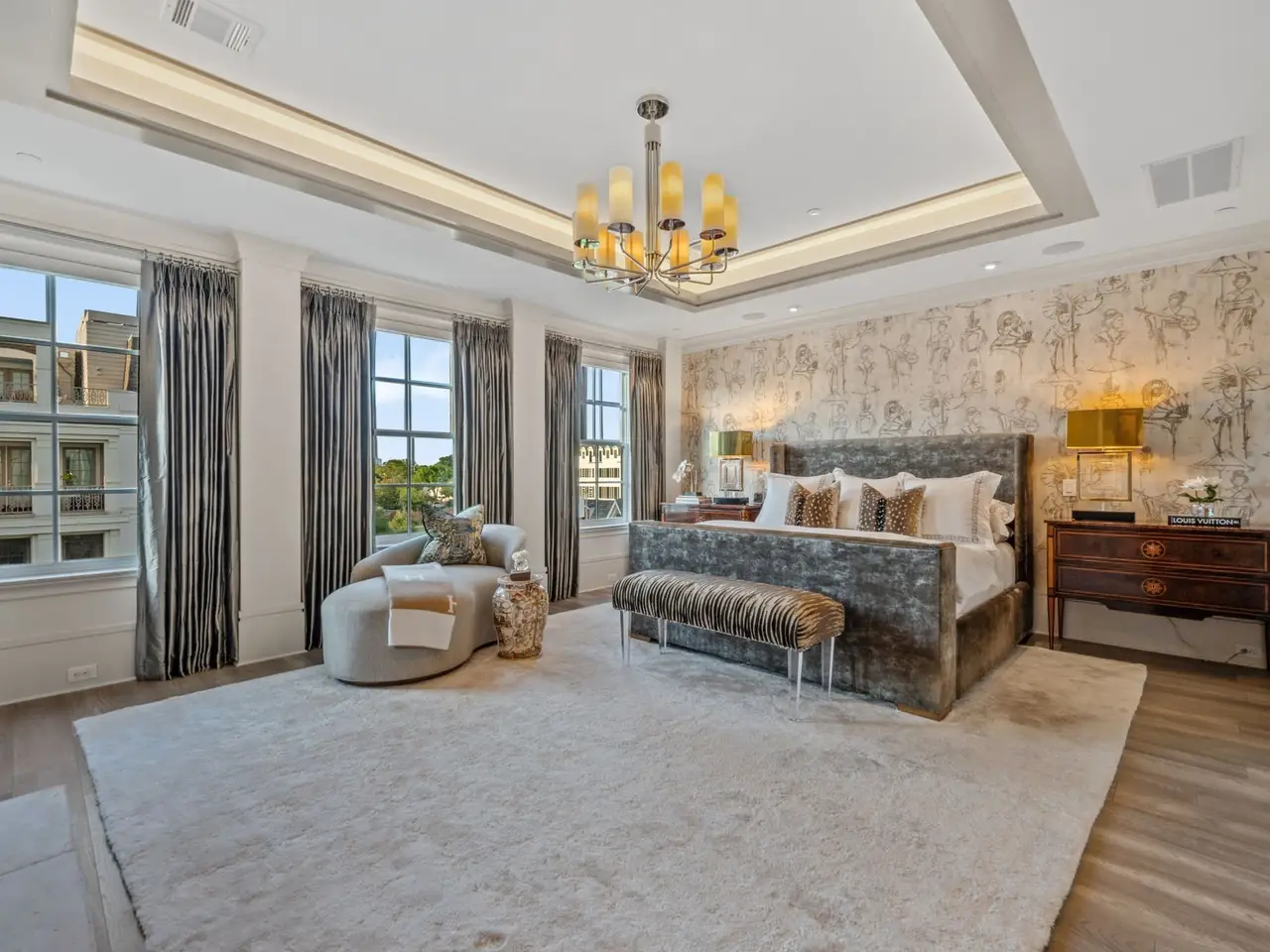 Publication-worthy lock and leave thoughtfully appointed by esteemed L. Pearson Design. Upon entry, a fine guest suite is found adjacent the foyer complete with whole-home elevator. The sizable living room, bursting with natural light, provides ample space for gatherings both formal and casual. The opulent kitchen boasts a six-burner, double oven wolf range accompanied by an elegant waterfall island featuring dual sink faucets. A cozy dining area flanks the kitchen lending itself to intimate meals and conversation. Unveiled in the primary retreat is the epitome of luxury. Generous in size, a sitting area accompanies the warm fireplace and spa-like bath giving a sense of serenity to the space. The penultimate level showcases a handsome media space, additional secondary bedroom, and remarkable treetop views of the Houston landscape. From the custom window treatments to the sumptuous wallpaper and tasteful countertops, 81 Crain Square exudes graceful individuality. Per Seller