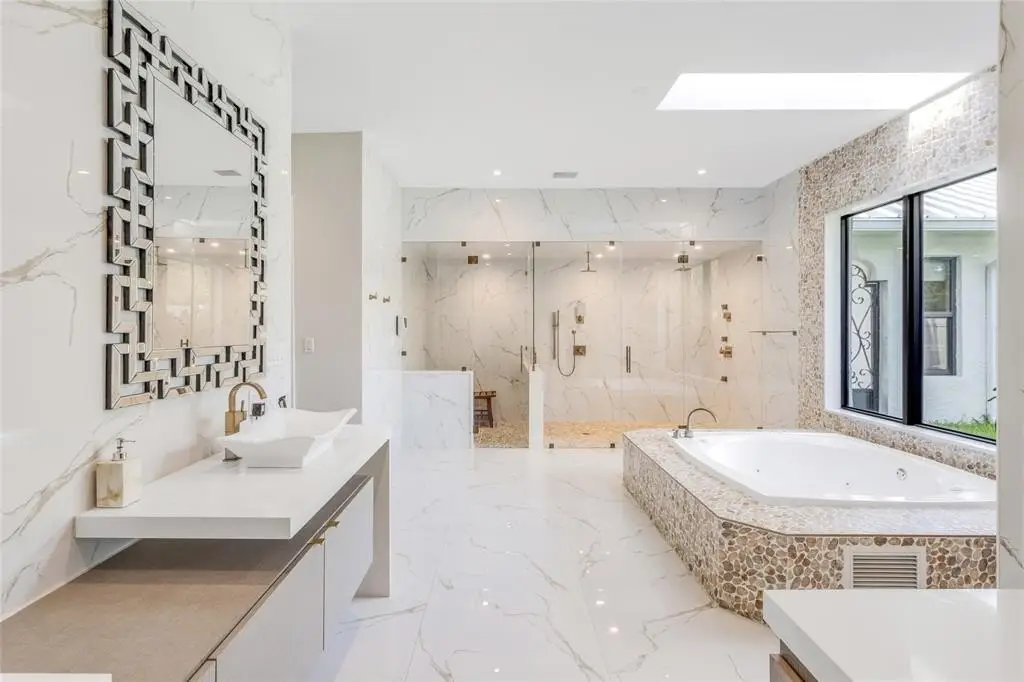 Sited on nearly 2-acres in the Estate Section, this 8,084± total sq ft residence with guest house offers the ultimate rural retreat. Updated with a sophisticated modern European aesthetic, this 4-Bedroom residence & separate 2-bedroom guest house, complete with a full kitchen, living & laundry, is perfect for hosting visiting family/guests. Luxe chef's kitchen, with adjoining pool-view breakfast room, has work island & dining extension, finished with exotic zebra-wood cabinetry & professional-grade appliances. The master suite offers pool-courtyard access, a spa-like quartz bathroom with jetted tub, double vanities, walk-in shower, separate steam room & water closet. Privately hedged & gated this estate appeals to equestrians, nature enthusiasts, and VIP's seeking privacy. 2024 Metal Roof.