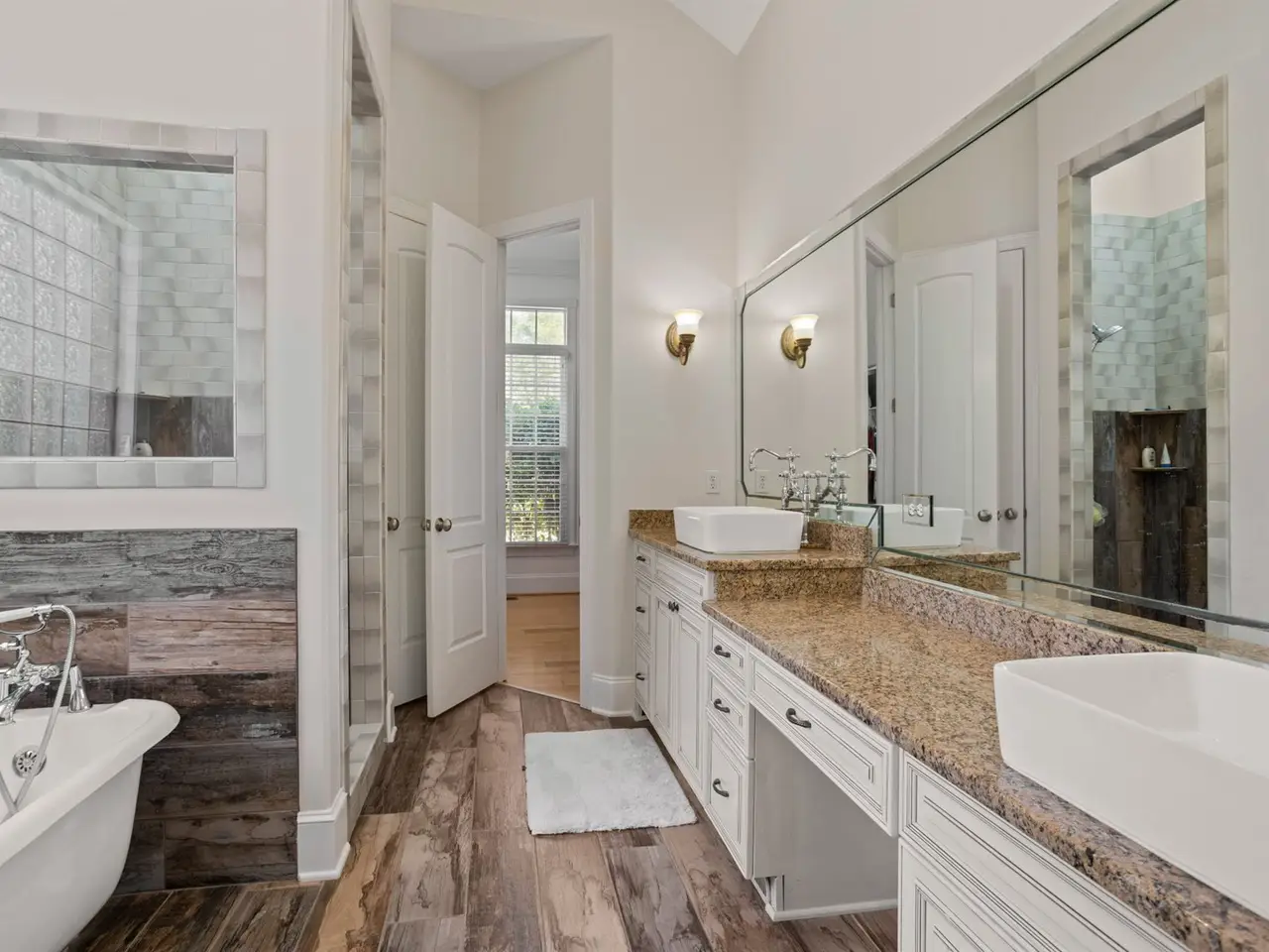 Welcome to this stunning home in the prestigious Carolina Country Club - Spartanburg's premier gated community! Situated on a beautifully landscaped 0.33-acre lot, this elegant residence welcomes you with a circular driveway and an impressive two-story foyer showcasing a grand staircase. Inside, you'll find timeless design and generous spaces throughout. The main level features a formal dining room, a two-story great room with soaring windows and a cozy fireplace, and a secondary living room with vaulted ceilings and its own fireplace - ideal for entertaining or quiet evenings in. The chef's kitchen boasts Monogram appliances, a large island, wet bar, and casual dining area, perfect for gatherings of any size. A spacious office/flex room, walk-in laundry, and powder room add convenience to the main floor. The primary suite provides a private retreat with two oversized walk-in closets and a spa-like en-suite bath featuring a soaking tub and separate walk-in shower. Upstairs, a generous loft area creates added living space, along with three bedrooms - one with a private en-suite and walk-in closet, and two sharing a jack-and-jill style bath. Enjoy serene outdoor living on the expansive back deck, overlooking your lush backyard. With access to Carolina Country Club's renowned amenities, this home combines luxury, comfort, and lifestyle in one of Spartanburg's most sought-after communities.