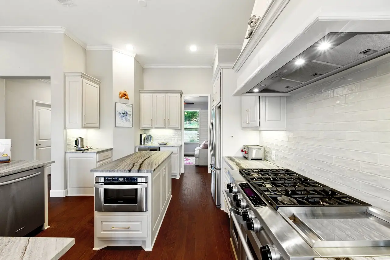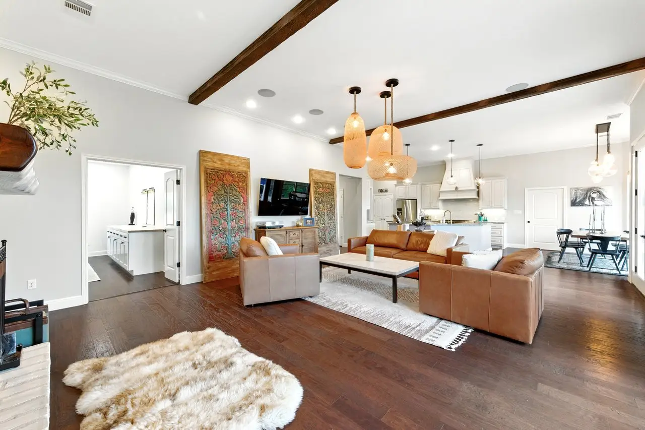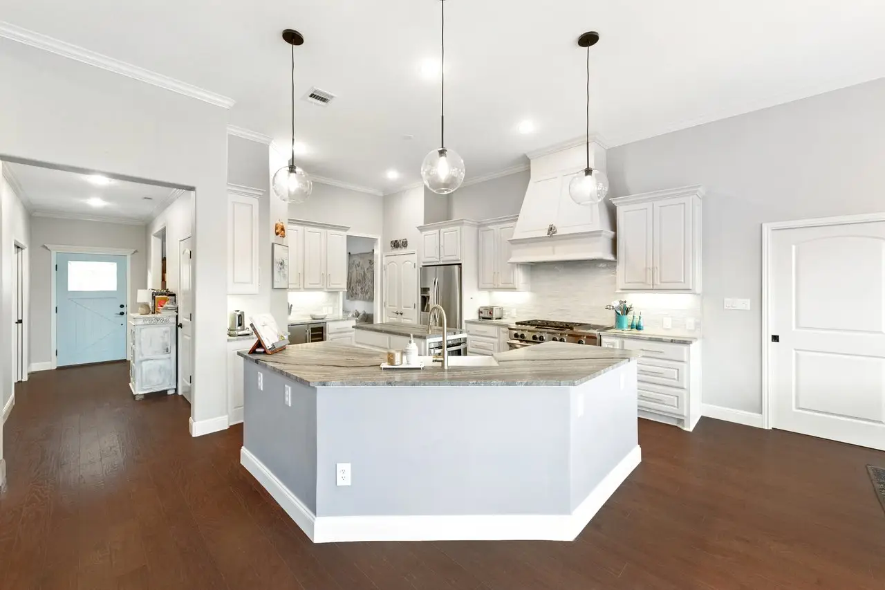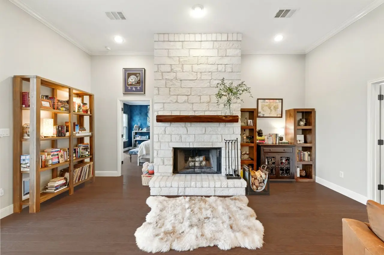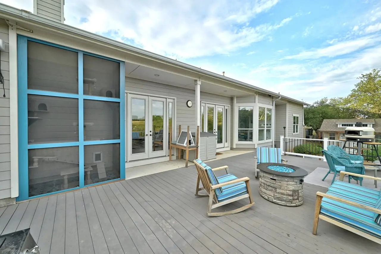 Beautifully UPDATED SINGLE-STORY near Bee Cave with panoramic Hill Country views, pool, creek, and 1.72 acres of utter privacy and serenity! Thoughtful updates and natural beauty combine in this low-tax, convenient community with private Lake Travis access. A natural rock wall and trellis-covered path lead to the front door, where a charming fountain welcomes you. Inside, abundant natural light fills the open layout, featuring two flexible spaces—ideal for offices, sitting areas, or formal dining. One includes a walk-in closet and can serve as a 4th bedroom with access to the guest bathroom. The open kitchen/living area is lined with windows capturing sweeping views and seamless indoor-outdoor flow. The kitchen boasts light gray cabinetry, honed marble counters, farmhouse sink, reverse osmosis filtration, wine fridge, and a commercial-grade 6-burner + griddle gas range with double ovens. No carpet—just upgraded lighting and flooring throughout. The private owner’s suite features a spa-like bath with a tiled rain shower, soaking tub, dual vanities, and walk-in closet, plus an attached Zen den for yoga, nursery, or office. The guest/kids wing has its own flex space for a playroom or another office option. A newly added "moody mudroom" enhances functionality and style with custom storage and designer wallpaper. Outside, enjoy a resort-style backyard with a quartz-plaster UV-purified pool, splash pad, and expansive patio. Sustainable living is supported by a raised garden with drip irrigation, private well, rainwater collection, tankless water heater, and water softener. The oversized 3-car garage offers a workshop area, decked attic storage, and additional storage beneath the back deck. All just 10 minutes from Hill Country Galleria, in acclaimed Lake Travis ISD, with ~1.6% tax rate.