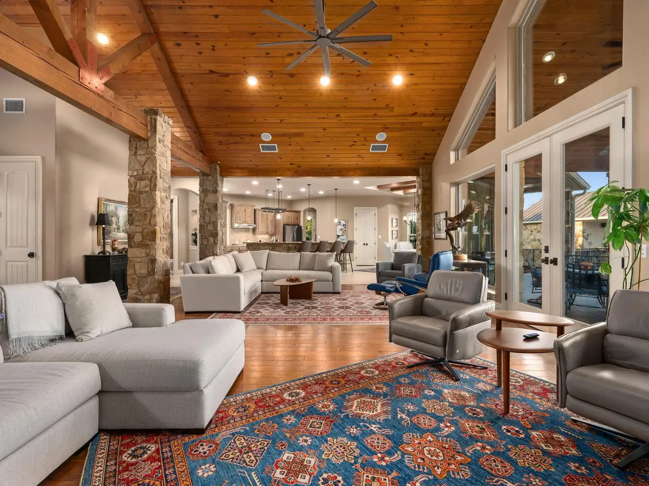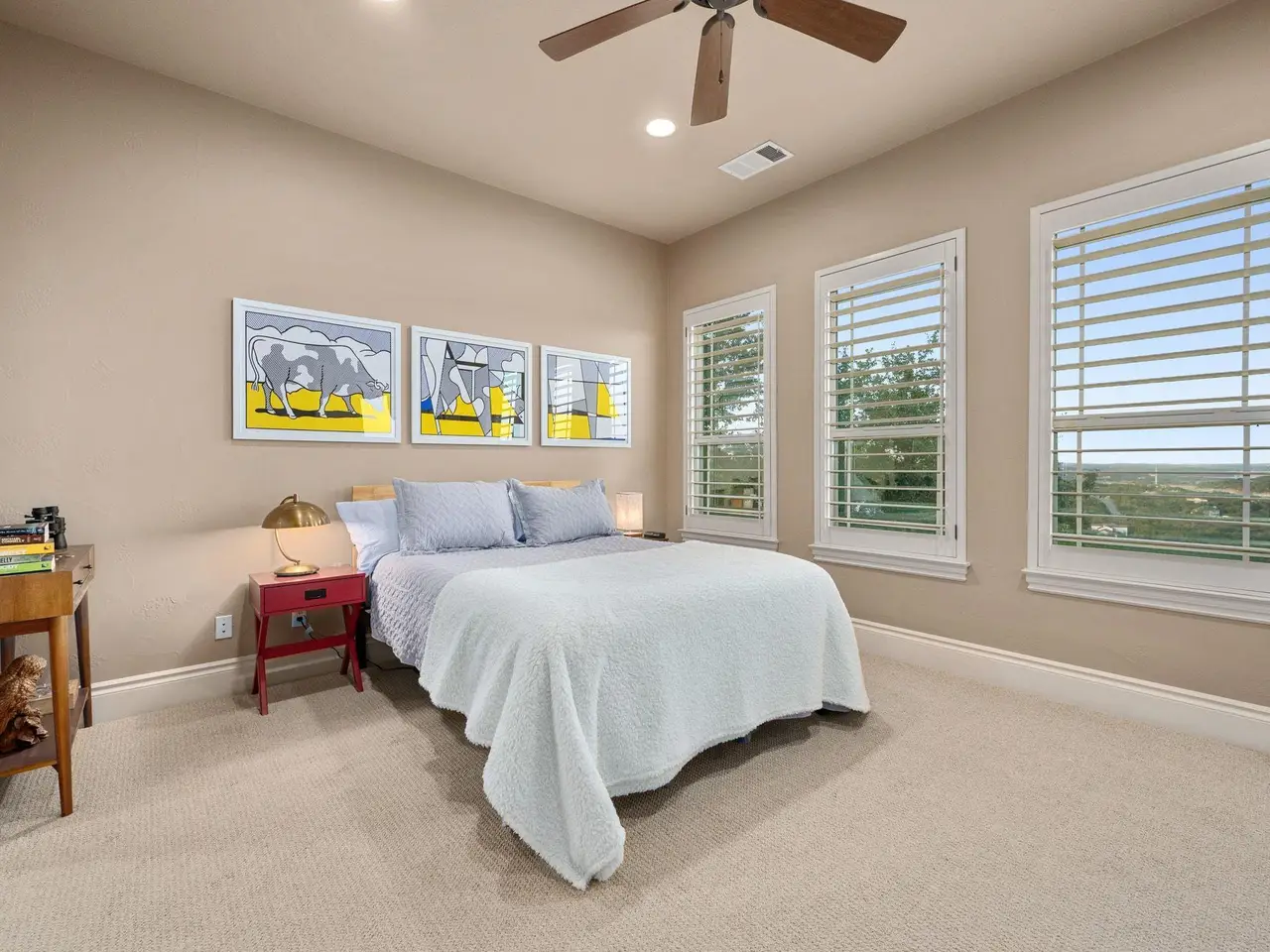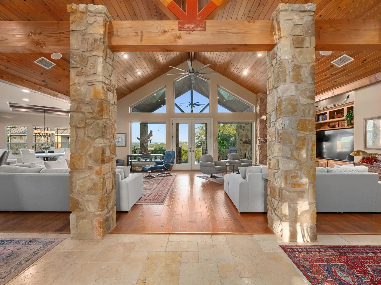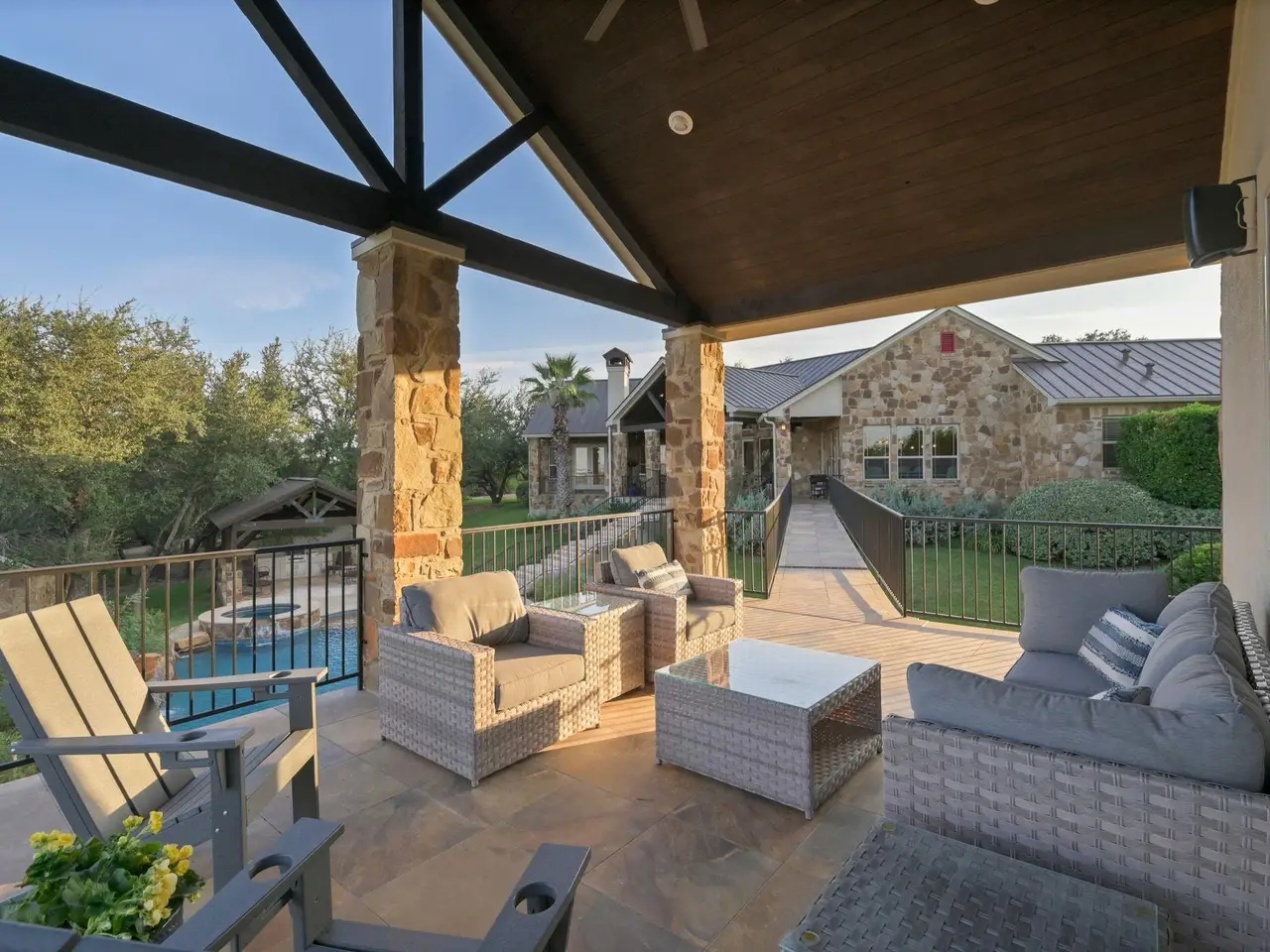 3 + acres of beautifully maintained property. Feels like your far out in the Hill Country with privacy, silence, unrestricted big sky views and abundant wildlife, but just minutes from Lakeway amenities and highway 71. Only 30 minutes to Austin or a short drive west to the Hill Country. Single story 4 bed, 4 bath, 3 car garage main house, 2 story 1 bed, 2 bath 2 car garage guest house connected by an elevated walkway, a very unique set up. This property is well equipped with soaring knotty pine ceilings, stone accents, hardwood/stone floors, 8 ft doors, custom wide moldings, wall of windows in great room, gourmet kitchen, pool, spa, waterfall, oversize entertaining pavilion with kitchen, covered patio off main house with fireplace, covered patio off upper level of guest house, fenced garden, well a with two approx two 5,000 gal holding tanks for irrigation only, access to HOA boat ramp.This property is a MUST SEE!! 24 hours notice for all showings please call listing agent 512-656-3378