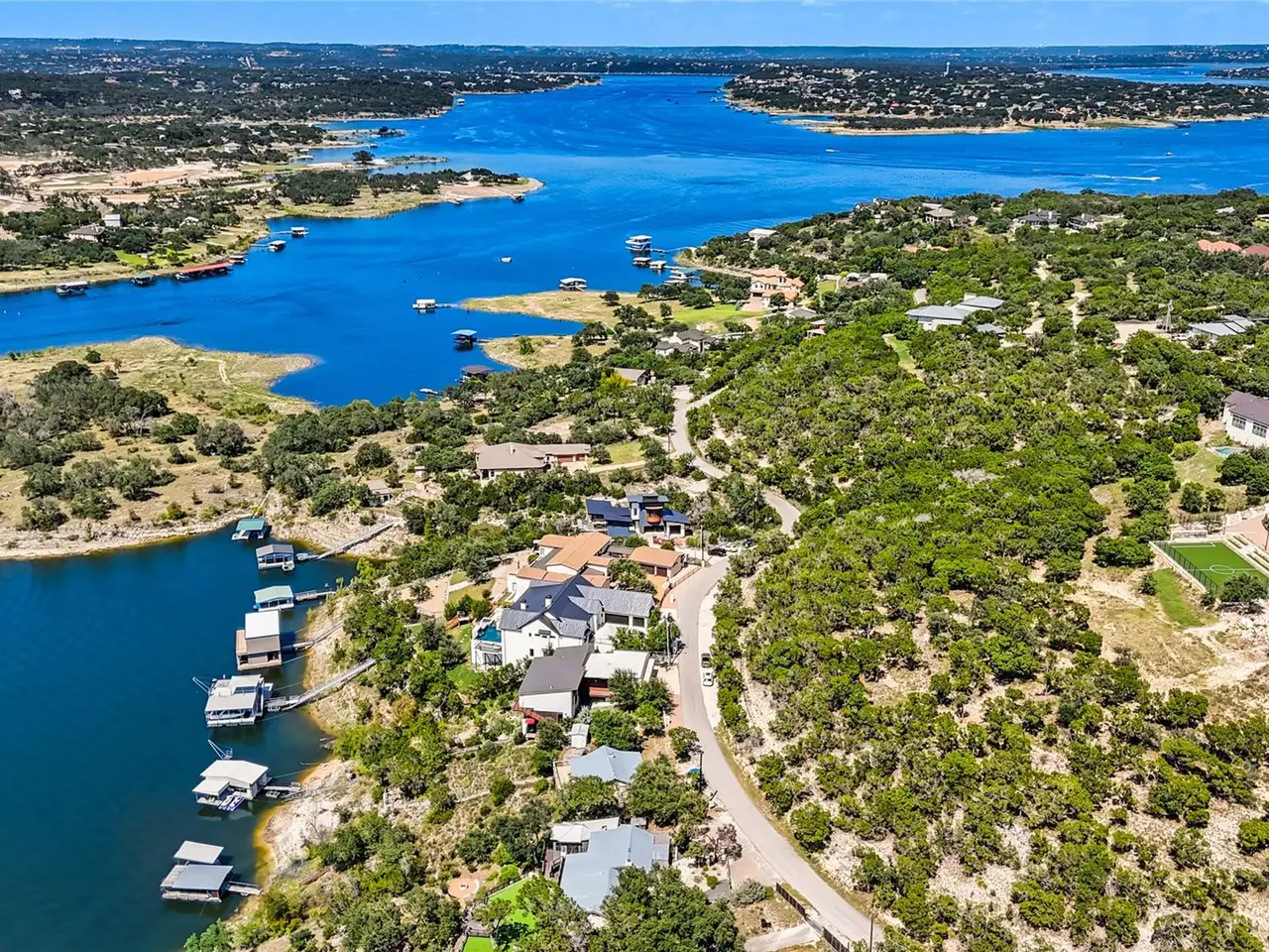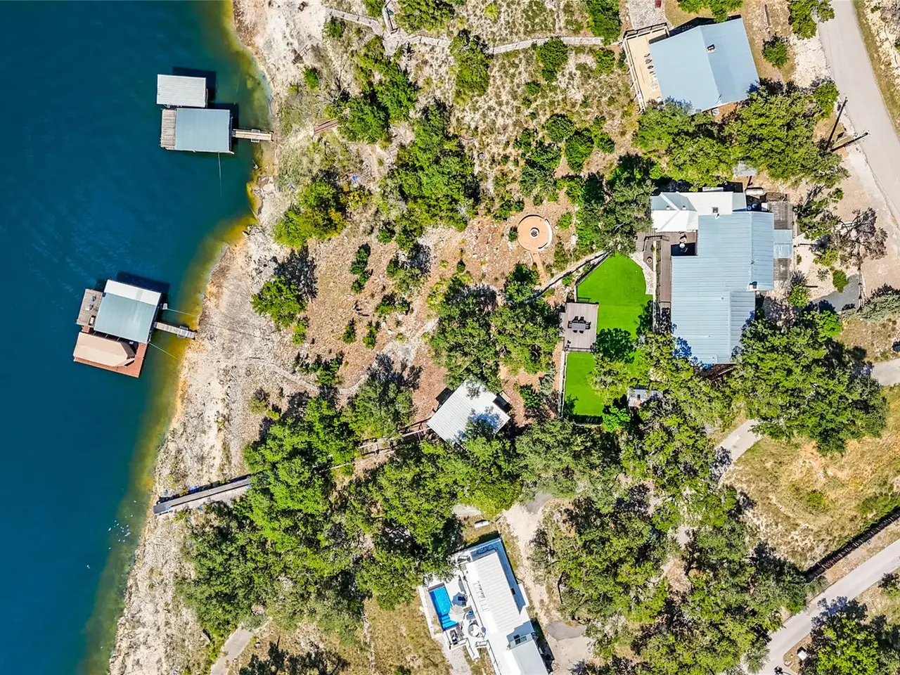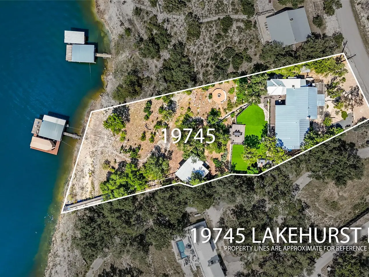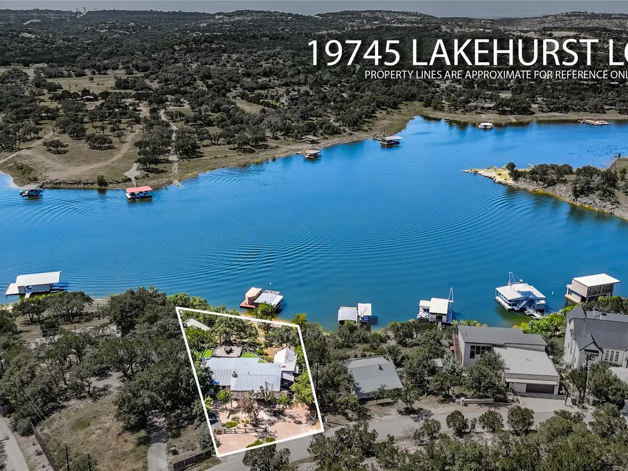 The beauty of lakeside living comes to life in this rare Lake Travis waterfront gem. Nestled on nearly an acre of manicured land, 19745 Lakehurst Loop is a stunning retreat tucked along the tranquil shores of a cove on Lake Travis. Towering oak trees provide shade and serenity, while a gentle slope leads to the water's edge, where a private boat dock invites effortless days on the lake. Featuring double stone wall construction, this home seamlessly blends timeless craftsmanship with modern comfort. Oak and Saltillo tile floors add warmth and character, while the kitchen pairs classic design with high-end functionality, featuring Craftsman-style stained cabinets, a Wolf range, a Sub-Zero refrigerator, and a stainless steel farm sink. Expansive windows bathe the living spaces in natural light, framing breathtaking lake views. The primary suite offers a peaceful retreat, while the second bedroom provides flexibility--perfect for a bunk room, full bedroom, or home office to suit your needs. Beyond the home, a detached workshop provides the perfect spot to take in picturesque lake views and breathtaking sunsets, making it an inspiring retreat for creativity or relaxation. With no HOA, a low tax rate, and short-term rentals allowed, this home offers exceptional flexibility. Located on the western edge of Lakeway, TX, it's just minutes from Rough Hollow, Hill Country Galleria, Lakeway's vibrant shopping and dining scene, top-rated Lake Travis ISD schools, and premier golf courses. A true waterfront retreat, this exceptional property captures the essence of Lake Travis living--where natural beauty, timeless charm, and modern convenience come together in perfect harmony.