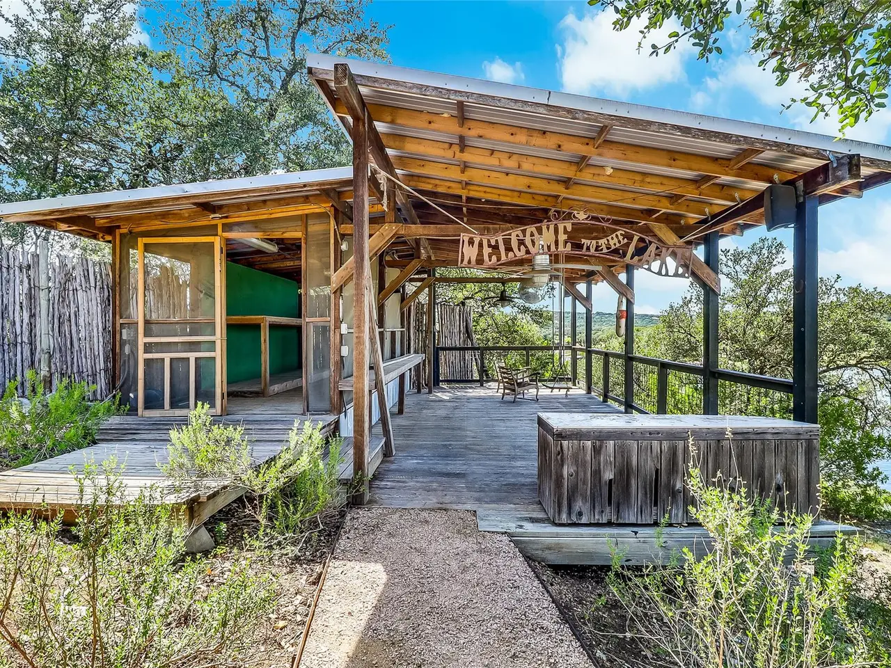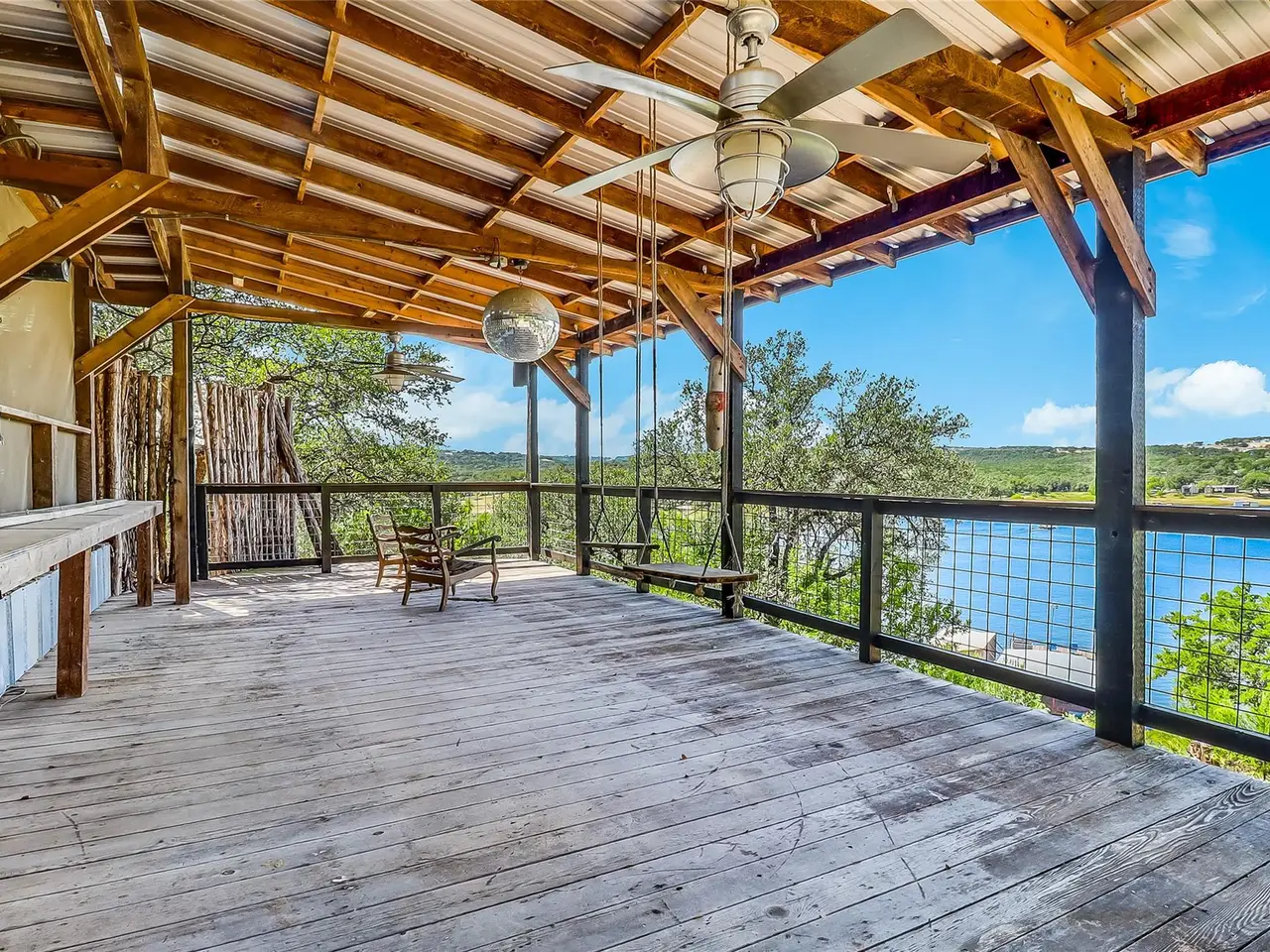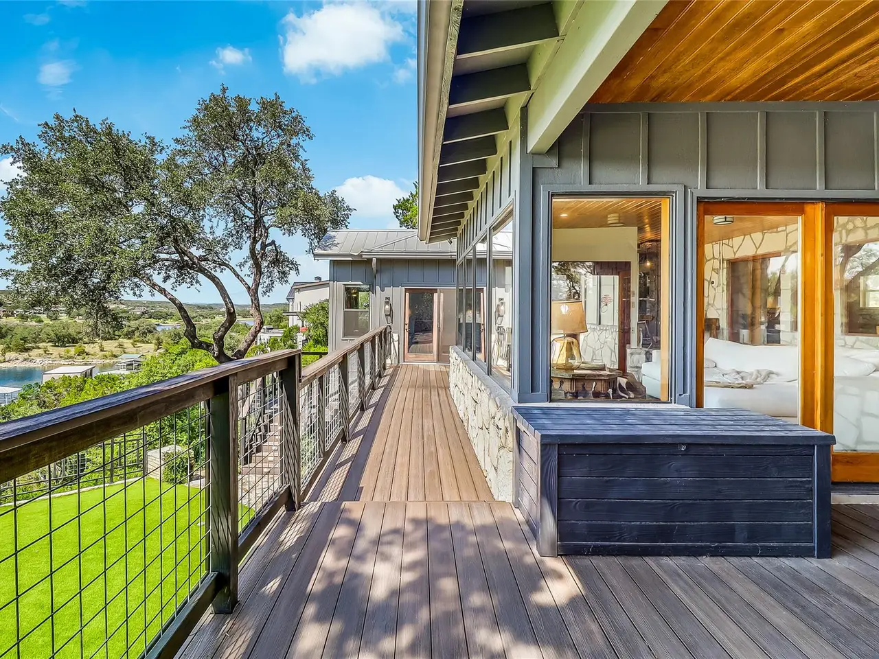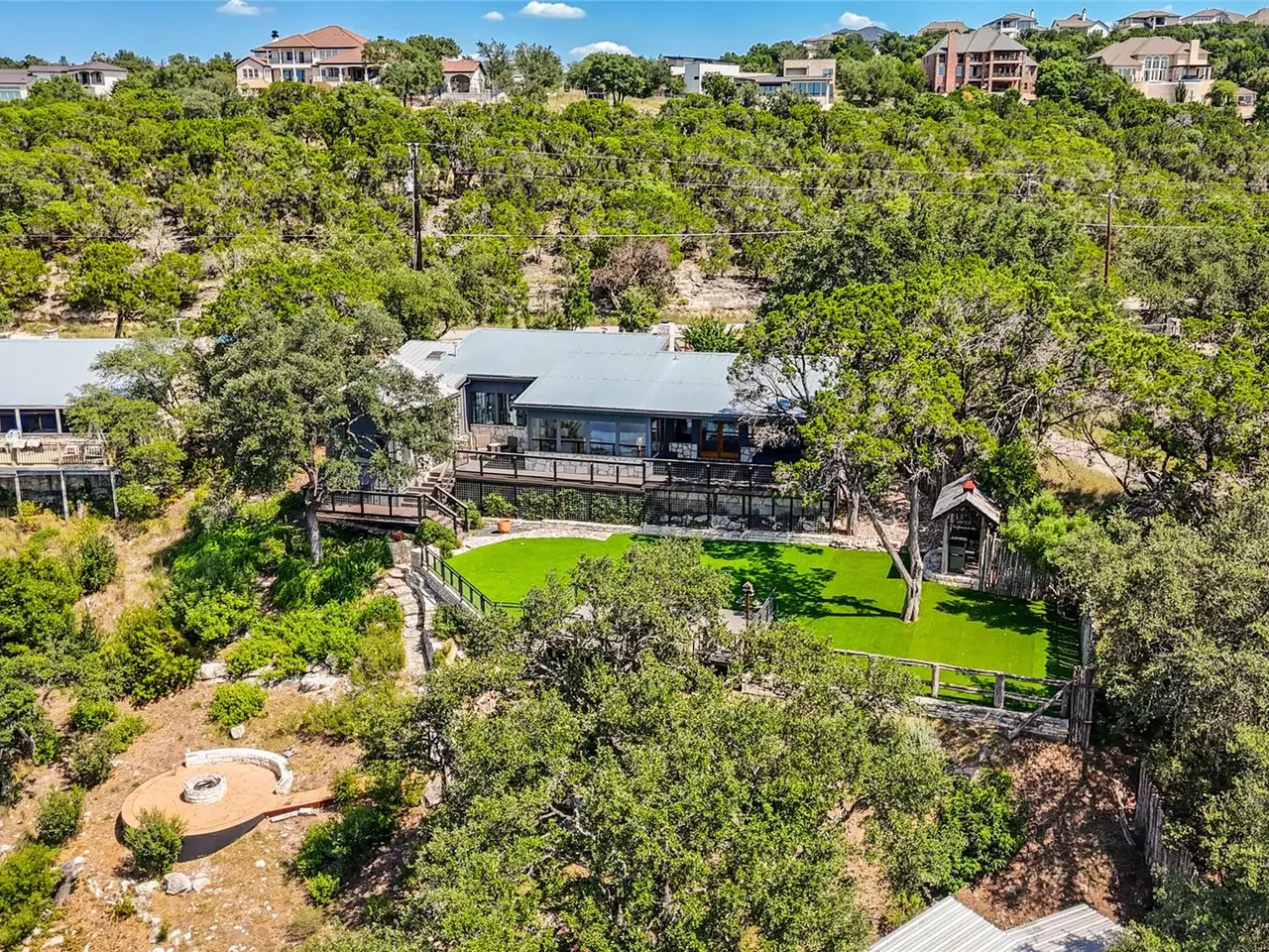 The beauty of lakeside living comes to life in this rare Lake Travis waterfront gem. Nestled on nearly an acre of manicured land, 19745 Lakehurst Loop is a stunning retreat tucked along the tranquil shores of a cove on Lake Travis. Towering oak trees provide shade and serenity, while a gentle slope leads to the water's edge, where a private boat dock invites effortless days on the lake. Featuring double stone wall construction, this home seamlessly blends timeless craftsmanship with modern comfort. Oak and Saltillo tile floors add warmth and character, while the kitchen pairs classic design with high-end functionality, featuring Craftsman-style stained cabinets, a Wolf range, a Sub-Zero refrigerator, and a stainless steel farm sink. Expansive windows bathe the living spaces in natural light, framing breathtaking lake views. The primary suite offers a peaceful retreat, while the second bedroom provides flexibility--perfect for a bunk room, full bedroom, or home office to suit your needs. Beyond the home, a detached workshop provides the perfect spot to take in picturesque lake views and breathtaking sunsets, making it an inspiring retreat for creativity or relaxation. With no HOA, a low tax rate, and short-term rentals allowed, this home offers exceptional flexibility. Located on the western edge of Lakeway, TX, it's just minutes from Rough Hollow, Hill Country Galleria, Lakeway's vibrant shopping and dining scene, top-rated Lake Travis ISD schools, and premier golf courses. A true waterfront retreat, this exceptional property captures the essence of Lake Travis living--where natural beauty, timeless charm, and modern convenience come together in perfect harmony.