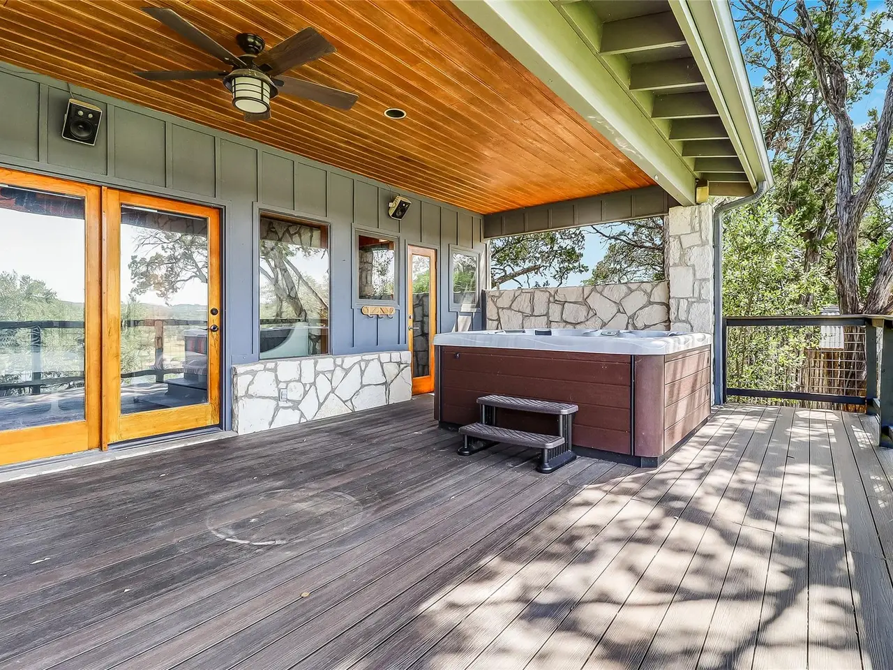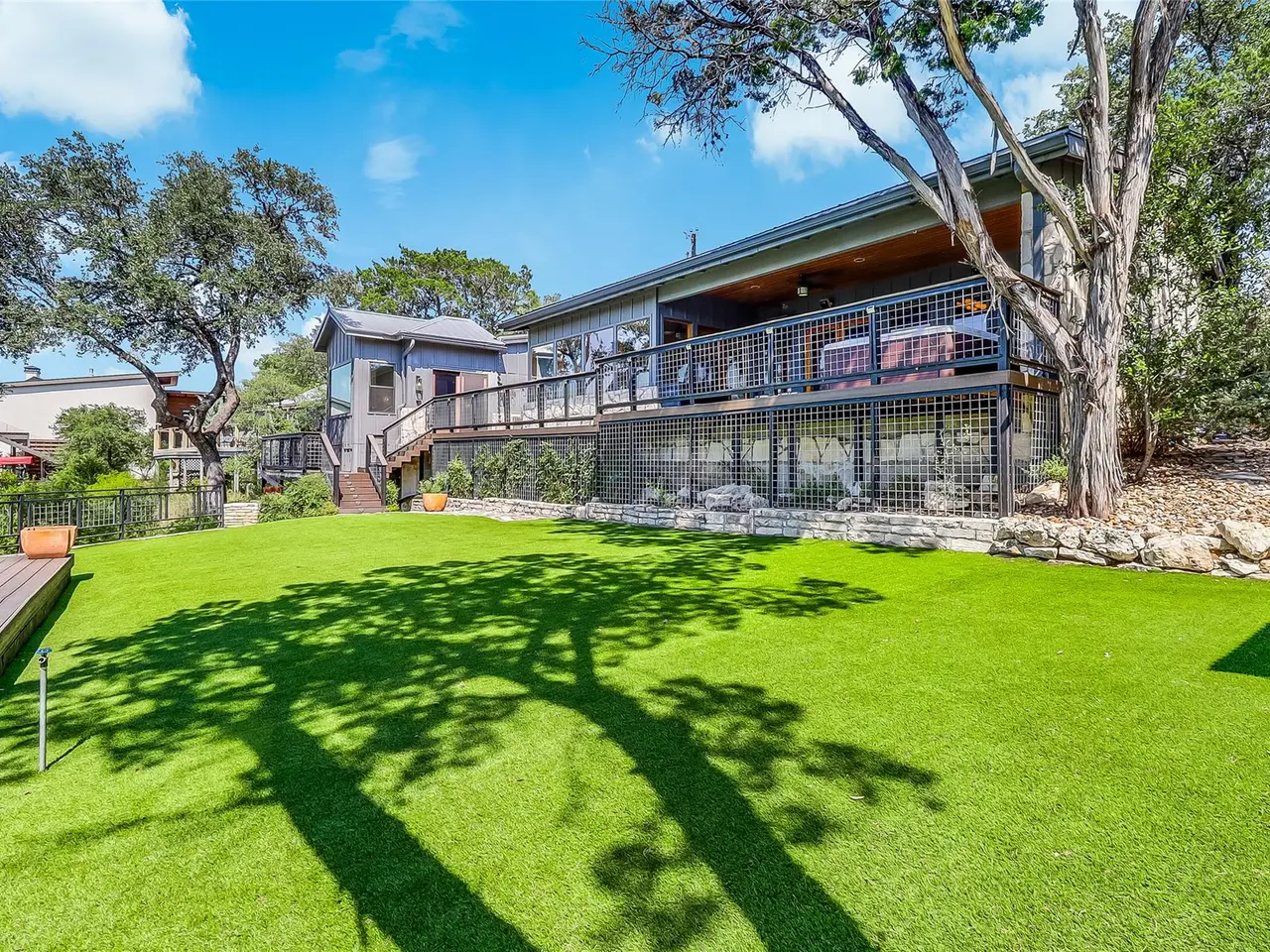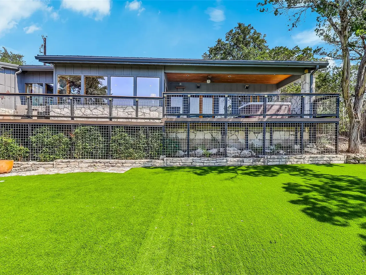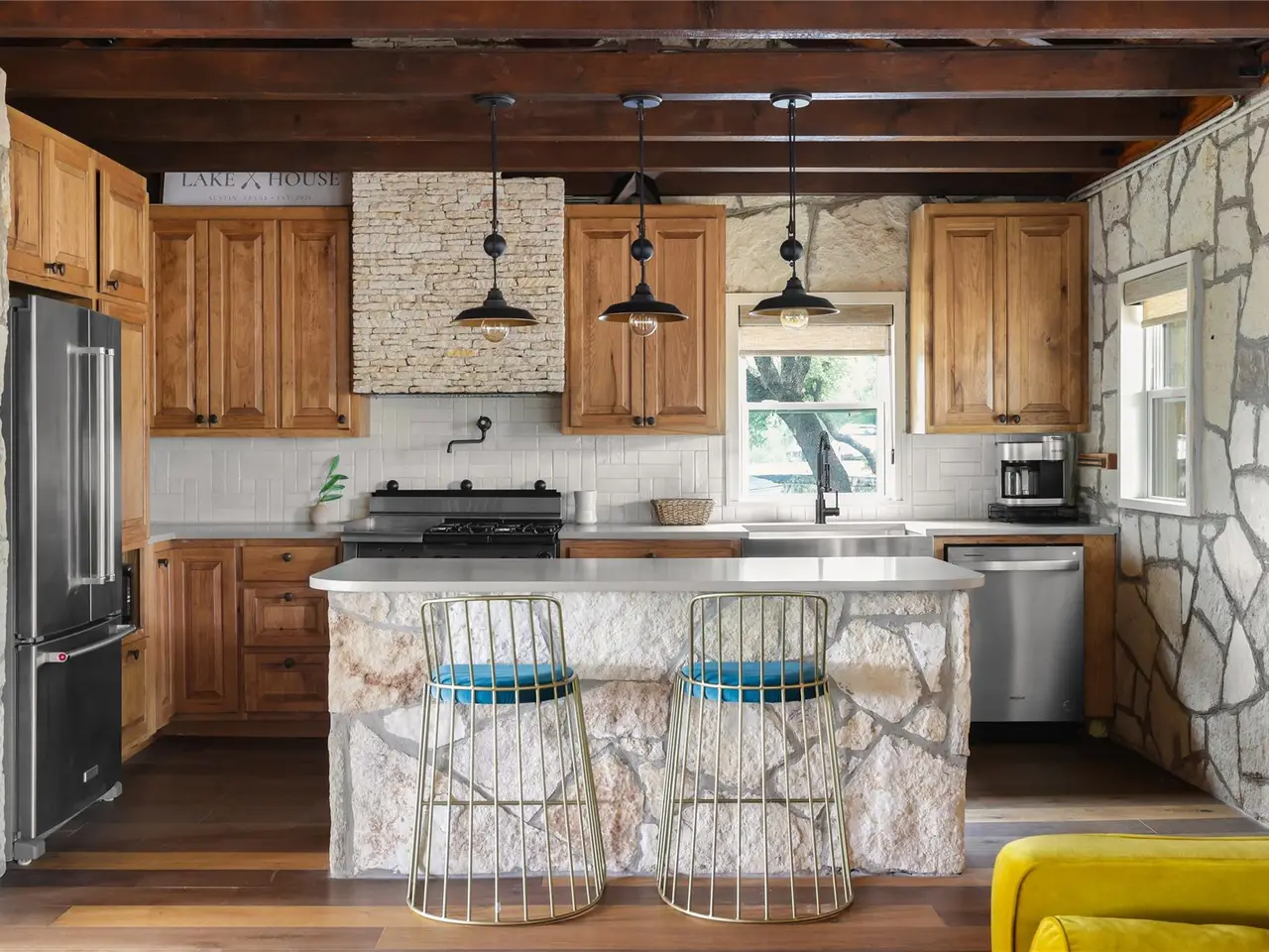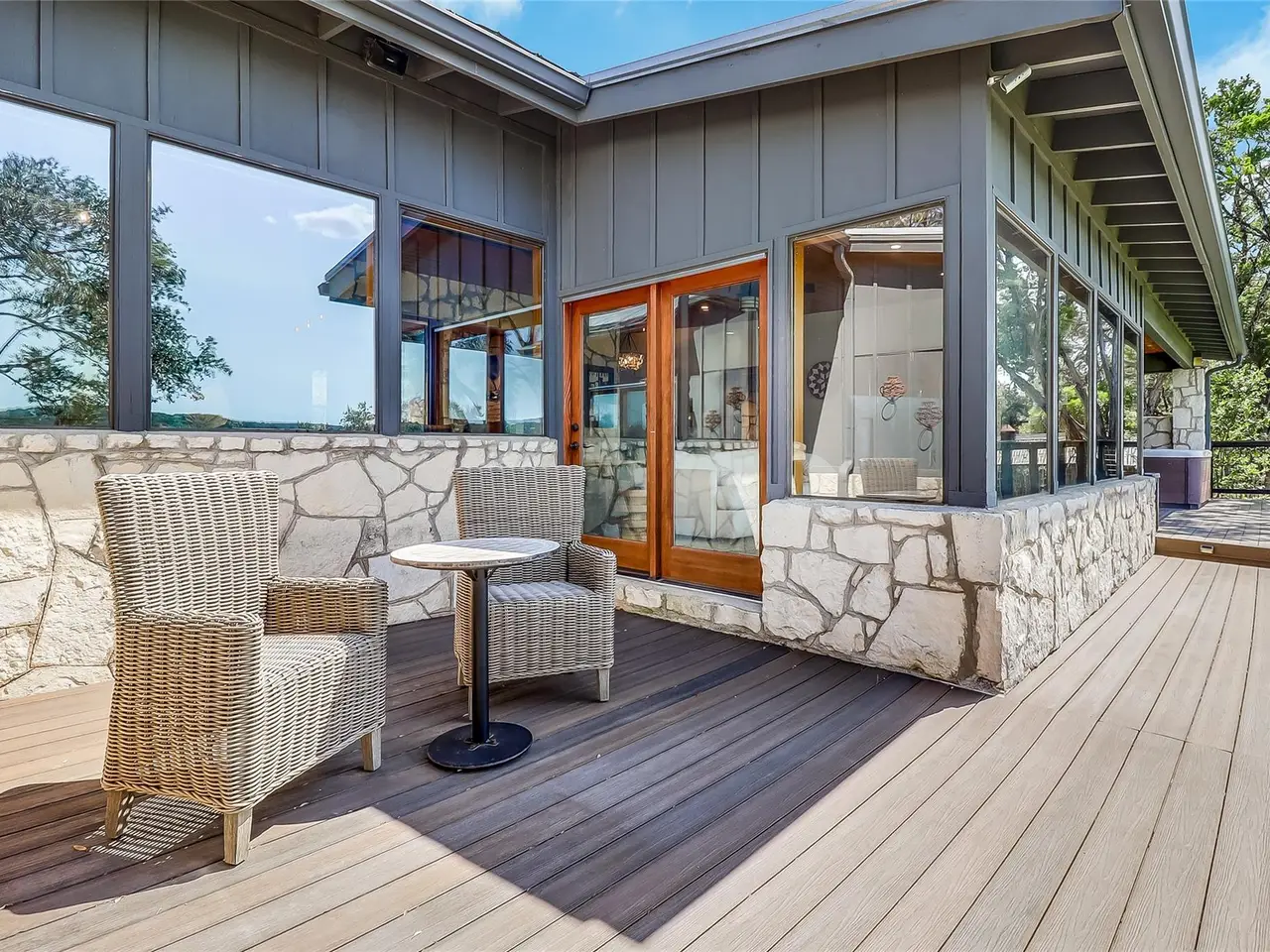 The beauty of lakeside living comes to life in this rare Lake Travis waterfront gem. Nestled on nearly an acre of manicured land, 19745 Lakehurst Loop is a stunning retreat tucked along the tranquil shores of a cove on Lake Travis. Towering oak trees provide shade and serenity, while a gentle slope leads to the water's edge, where a private boat dock invites effortless days on the lake. Featuring double stone wall construction, this home seamlessly blends timeless craftsmanship with modern comfort. Oak and Saltillo tile floors add warmth and character, while the kitchen pairs classic design with high-end functionality, featuring Craftsman-style stained cabinets, a Wolf range, a Sub-Zero refrigerator, and a stainless steel farm sink. Expansive windows bathe the living spaces in natural light, framing breathtaking lake views. The primary suite offers a peaceful retreat, while the second bedroom provides flexibility--perfect for a bunk room, full bedroom, or home office to suit your needs. Beyond the home, a detached workshop provides the perfect spot to take in picturesque lake views and breathtaking sunsets, making it an inspiring retreat for creativity or relaxation. With no HOA, a low tax rate, and short-term rentals allowed, this home offers exceptional flexibility. Located on the western edge of Lakeway, TX, it's just minutes from Rough Hollow, Hill Country Galleria, Lakeway's vibrant shopping and dining scene, top-rated Lake Travis ISD schools, and premier golf courses. A true waterfront retreat, this exceptional property captures the essence of Lake Travis living--where natural beauty, timeless charm, and modern convenience come together in perfect harmony.
