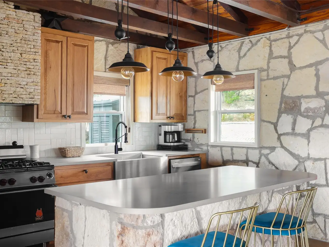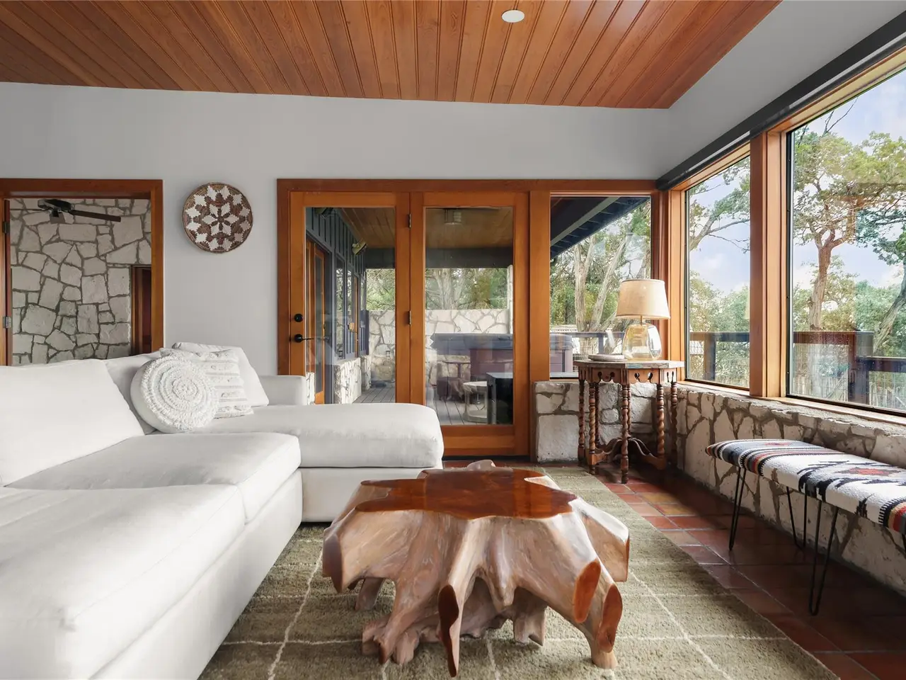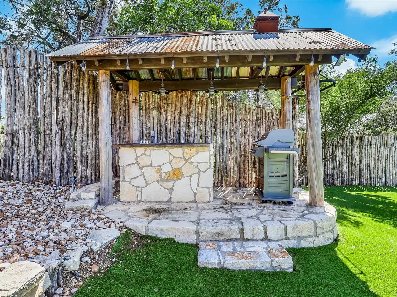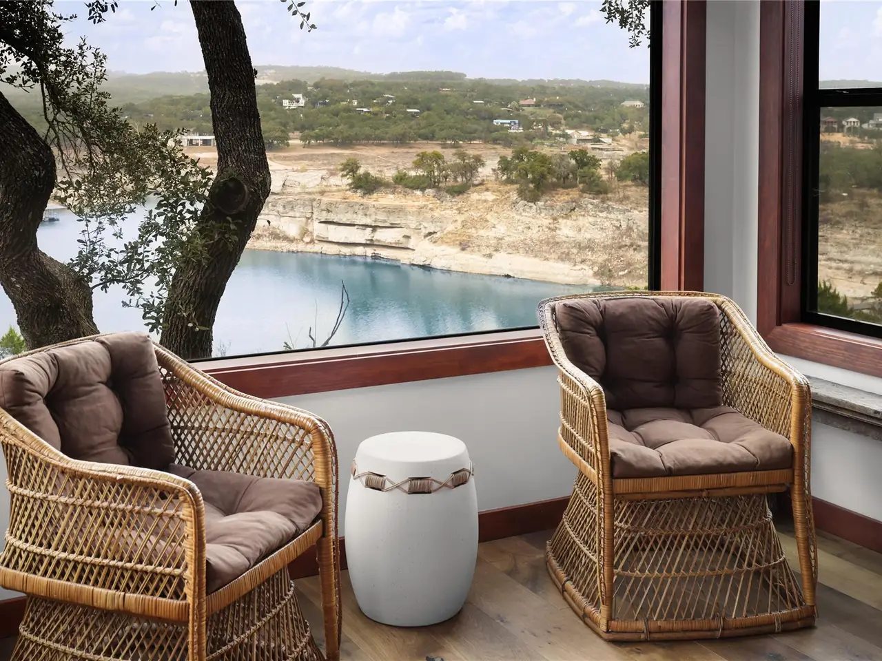 The beauty of lakeside living comes to life in this rare Lake Travis waterfront gem. Nestled on nearly an acre of manicured land, 19745 Lakehurst Loop is a stunning retreat tucked along the tranquil shores of a cove on Lake Travis. Towering oak trees provide shade and serenity, while a gentle slope leads to the water's edge, where a private boat dock invites effortless days on the lake. Featuring double stone wall construction, this home seamlessly blends timeless craftsmanship with modern comfort. Oak and Saltillo tile floors add warmth and character, while the kitchen pairs classic design with high-end functionality, featuring Craftsman-style stained cabinets, a Wolf range, a Sub-Zero refrigerator, and a stainless steel farm sink. Expansive windows bathe the living spaces in natural light, framing breathtaking lake views. The primary suite offers a peaceful retreat, while the second bedroom provides flexibility--perfect for a bunk room, full bedroom, or home office to suit your needs. Beyond the home, a detached workshop provides the perfect spot to take in picturesque lake views and breathtaking sunsets, making it an inspiring retreat for creativity or relaxation. With no HOA, a low tax rate, and short-term rentals allowed, this home offers exceptional flexibility. Located on the western edge of Lakeway, TX, it's just minutes from Rough Hollow, Hill Country Galleria, Lakeway's vibrant shopping and dining scene, top-rated Lake Travis ISD schools, and premier golf courses. A true waterfront retreat, this exceptional property captures the essence of Lake Travis living--where natural beauty, timeless charm, and modern convenience come together in perfect harmony.