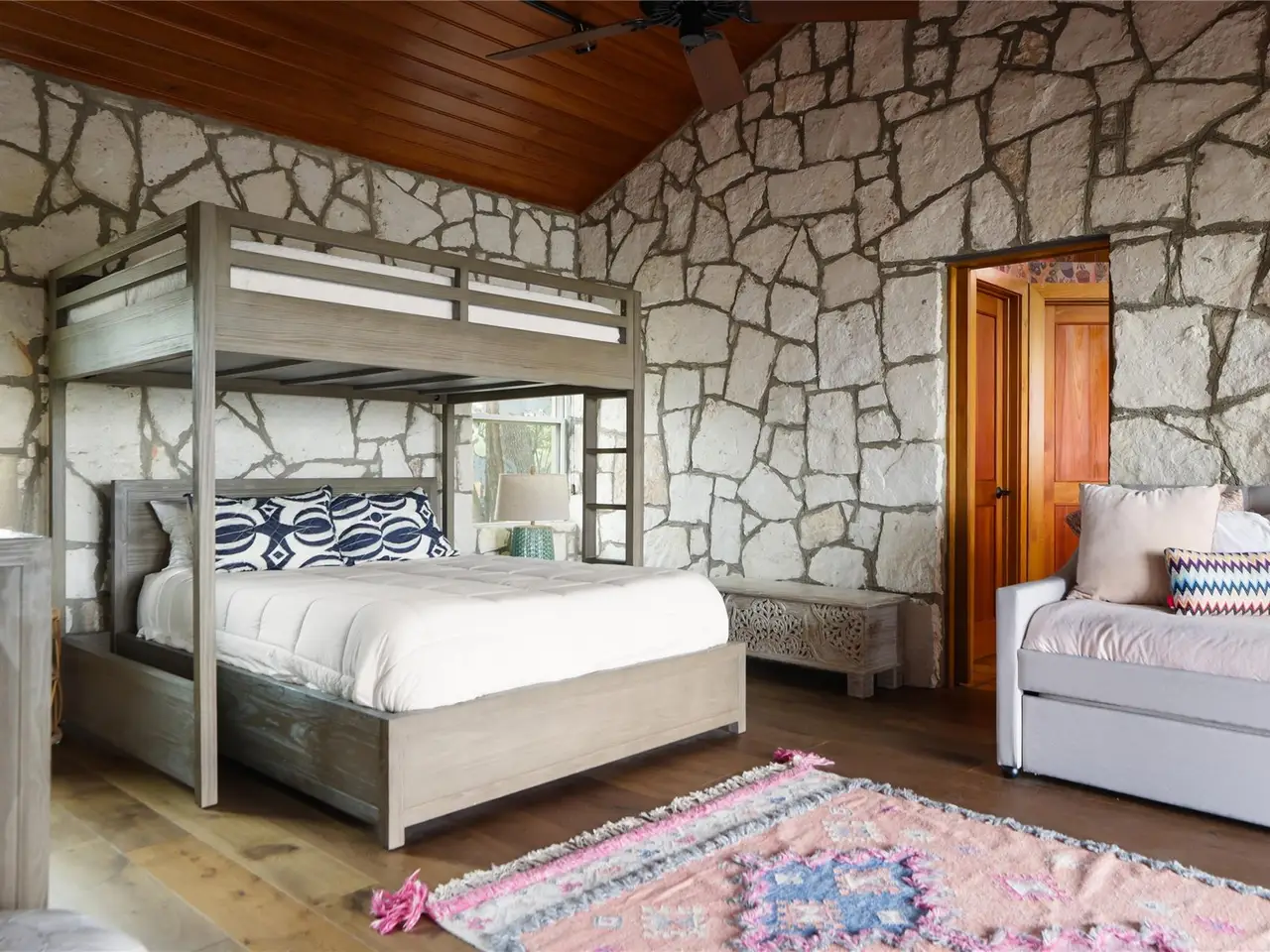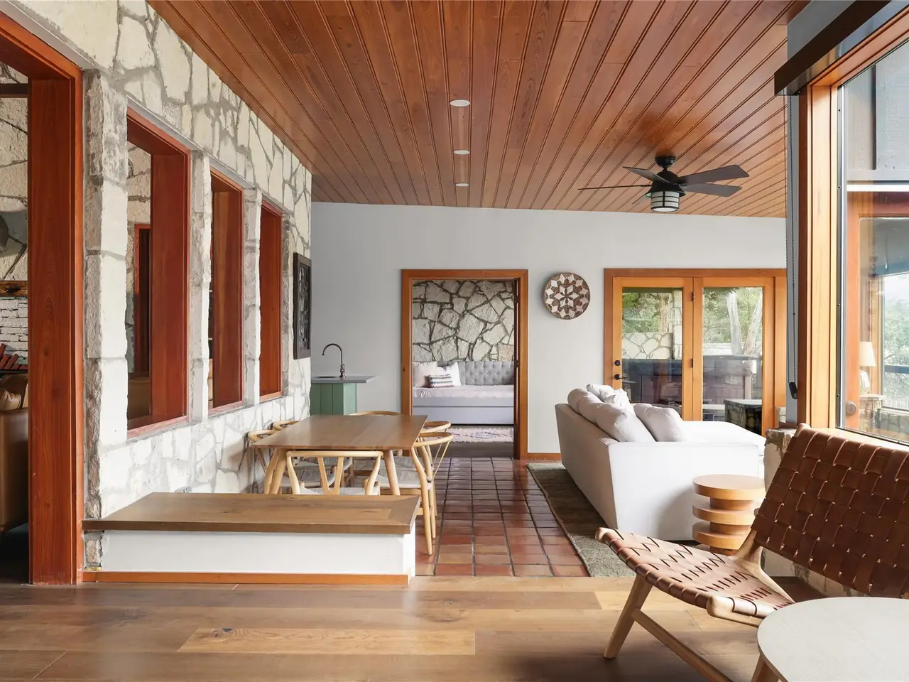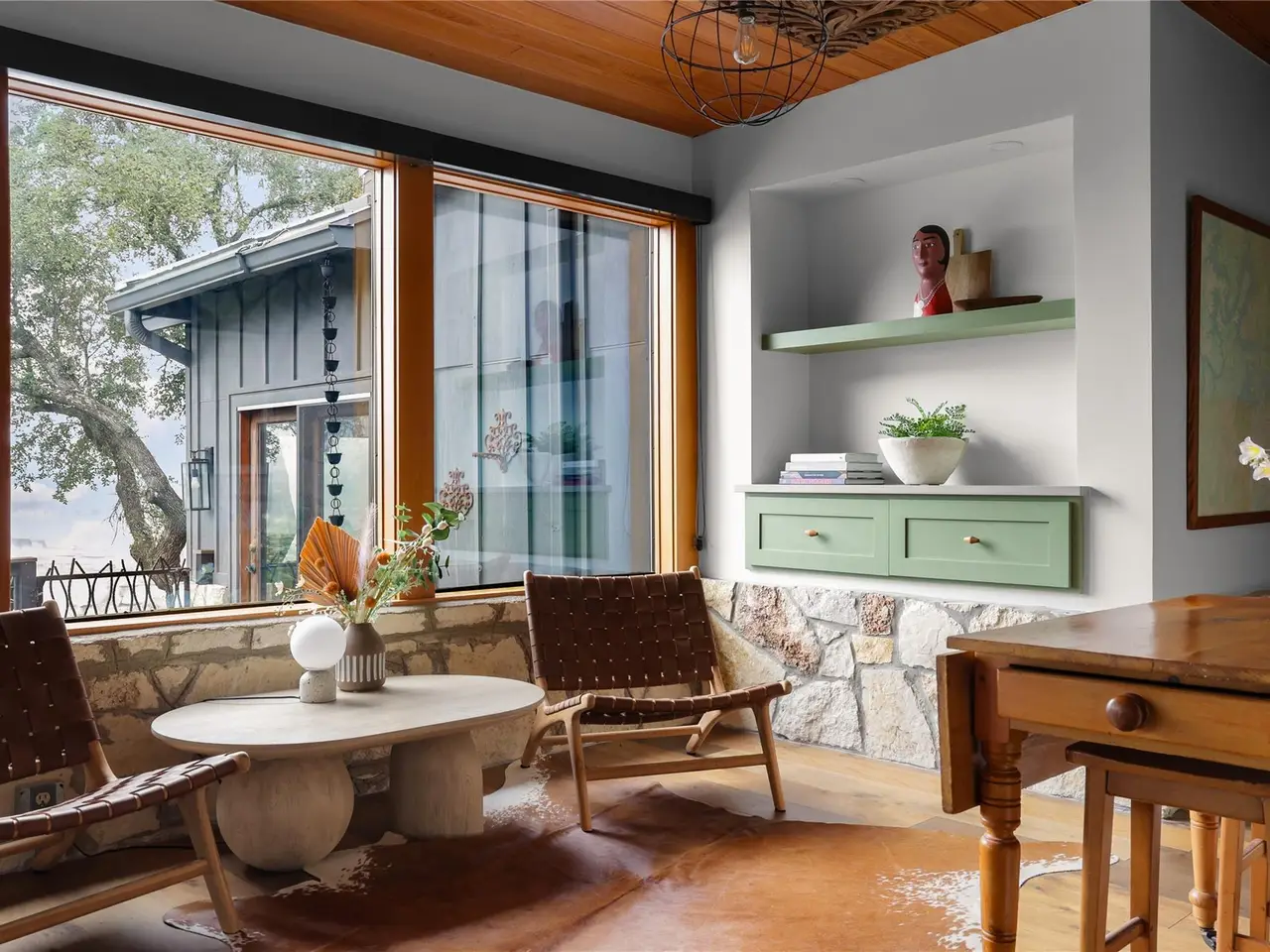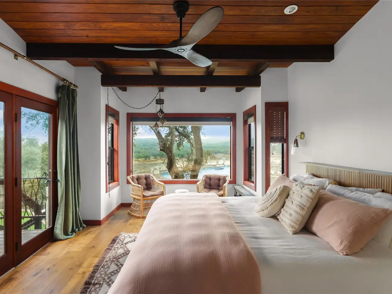 The beauty of lakeside living comes to life in this rare Lake Travis waterfront gem. Nestled on nearly an acre of manicured land, 19745 Lakehurst Loop is a stunning retreat tucked along the tranquil shores of a cove on Lake Travis. Towering oak trees provide shade and serenity, while a gentle slope leads to the water's edge, where a private boat dock invites effortless days on the lake. Featuring double stone wall construction, this home seamlessly blends timeless craftsmanship with modern comfort. Oak and Saltillo tile floors add warmth and character, while the kitchen pairs classic design with high-end functionality, featuring Craftsman-style stained cabinets, a Wolf range, a Sub-Zero refrigerator, and a stainless steel farm sink. Expansive windows bathe the living spaces in natural light, framing breathtaking lake views. The primary suite offers a peaceful retreat, while the second bedroom provides flexibility--perfect for a bunk room, full bedroom, or home office to suit your needs. Beyond the home, a detached workshop provides the perfect spot to take in picturesque lake views and breathtaking sunsets, making it an inspiring retreat for creativity or relaxation. With no HOA, a low tax rate, and short-term rentals allowed, this home offers exceptional flexibility. Located on the western edge of Lakeway, TX, it's just minutes from Rough Hollow, Hill Country Galleria, Lakeway's vibrant shopping and dining scene, top-rated Lake Travis ISD schools, and premier golf courses. A true waterfront retreat, this exceptional property captures the essence of Lake Travis living--where natural beauty, timeless charm, and modern convenience come together in perfect harmony.