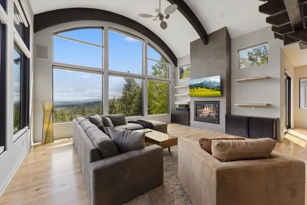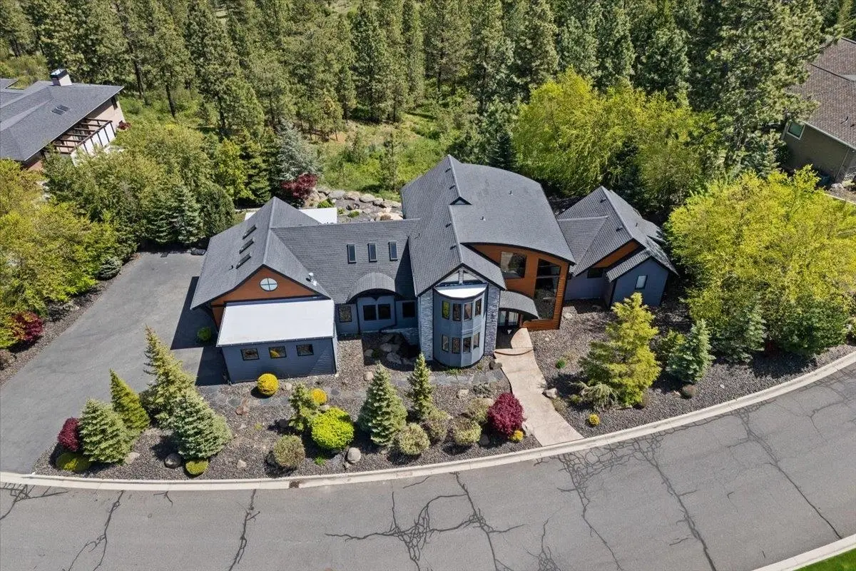 A Pacific Northwest gem built by Fruci Homes, on the market for the very first time. This 6,138 square foot residence sits 1.3 manicured acres with a $2 Million view stretching east and west. Designed for elegance and comfort, the home features 5 bedrooms, five bathrooms and expansive windows that enhance the indoor/outdoor flow. Crafted with natural materials, timeless finishes, and robust stonework, it exudes refined modern luxury. Enjoy radiant heated floors, a chef's kitchen, a spa-like primary bathroom, and a wine cellar, all perfect for entertaining. Backyard has been geo gridded, and ready for an in-ground pool. Nestled in the gated community of Broadmoor Estates, just minutes from downtown Spokane, the airport, and top hospitals. This is a rare opportunity in one of Spokane's most coveted communities.