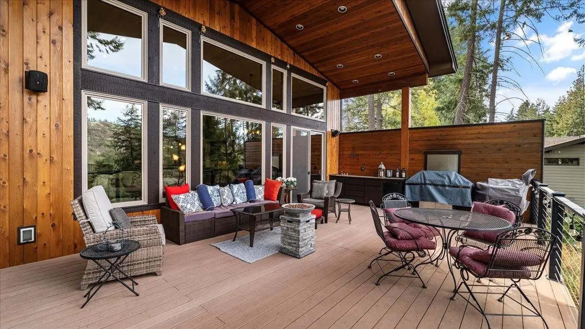 Tongue & groove pine covered deck Gourmet kitchen with custom-built cabinets