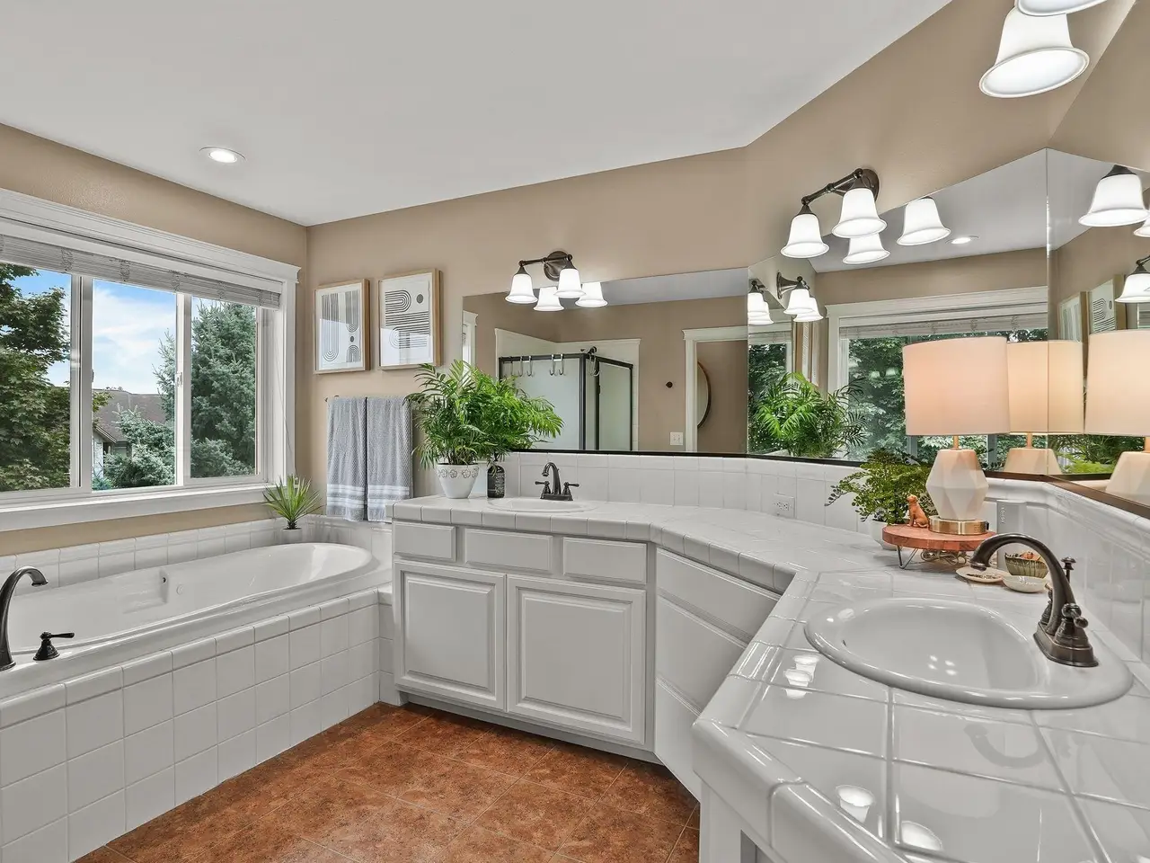 Greeted with an open & inviting entryway, this home offers 6 bedrooms, 4 bathrooms & tasteful updates. With a thoughtful & ideal floor plan, the natural light gleams throughout. The gorgeous kitchen is a chef‘s dream, providing dbl sinks, updated appliances, & plenty of hard surface counter space for creating your best recipes. Directly connected to the kitchen is a large formal dining area to enjoy those perfect delights! Entertain in the main level great room or for a more secluded space there’s a living area on the 2nd floor or a basement living area ready for your theater system. Plenty of spacious bedrooms to choose from, but the primary suite is amazing with a walk-in closet, full bathroom & private deck to enjoy that morning coffee. The fully fenced backyard oasis caters to anyone, with gorgeous landscaping, patio area, & sports court, all tucked away on an oversized corner lot. The attached 3 car garage access is ideally connected to a cul-de-sac with a convenient location that suits all your needs!