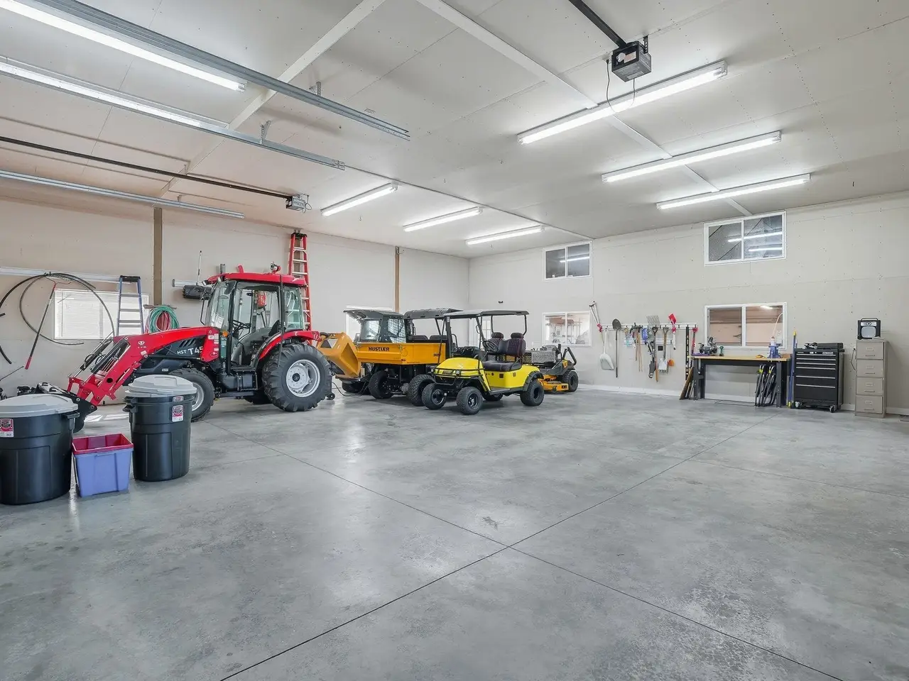 Timeless Brick Rancher situated on 13.21 fully fenced and gated acres, offering privacy and luxury. This 4,730 sq. ft. home has been tastefully updated from top to bottom with high-end finishes, including stunning engineered hardwood floors, a gourmet kitchen featuring a custom walnut-topped island, high-end appliances, RO water, and quartz countertops throughout. The primary bedroom feels like a retreat with a 5-piece ensuite and direct access to the large trex deck, which offers incredible views of the countryside. Downstairs, you will find a spacious daylight walkout basement complete with an oversized living room, game room, home gym, and wet bar. The recently constructed, 4-tier water feature, hardscaping, and landscaping are equally impressive as the home. The property also includes a sports court and a massive 65 x 40 insulated shop, complete with a workshop area, loft, and 3 RV hookups, a whole-house generator, and more! This home harmonizes luxury, practicality, and accessible country living.