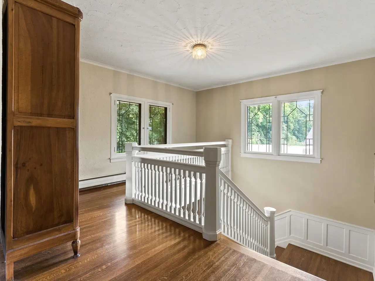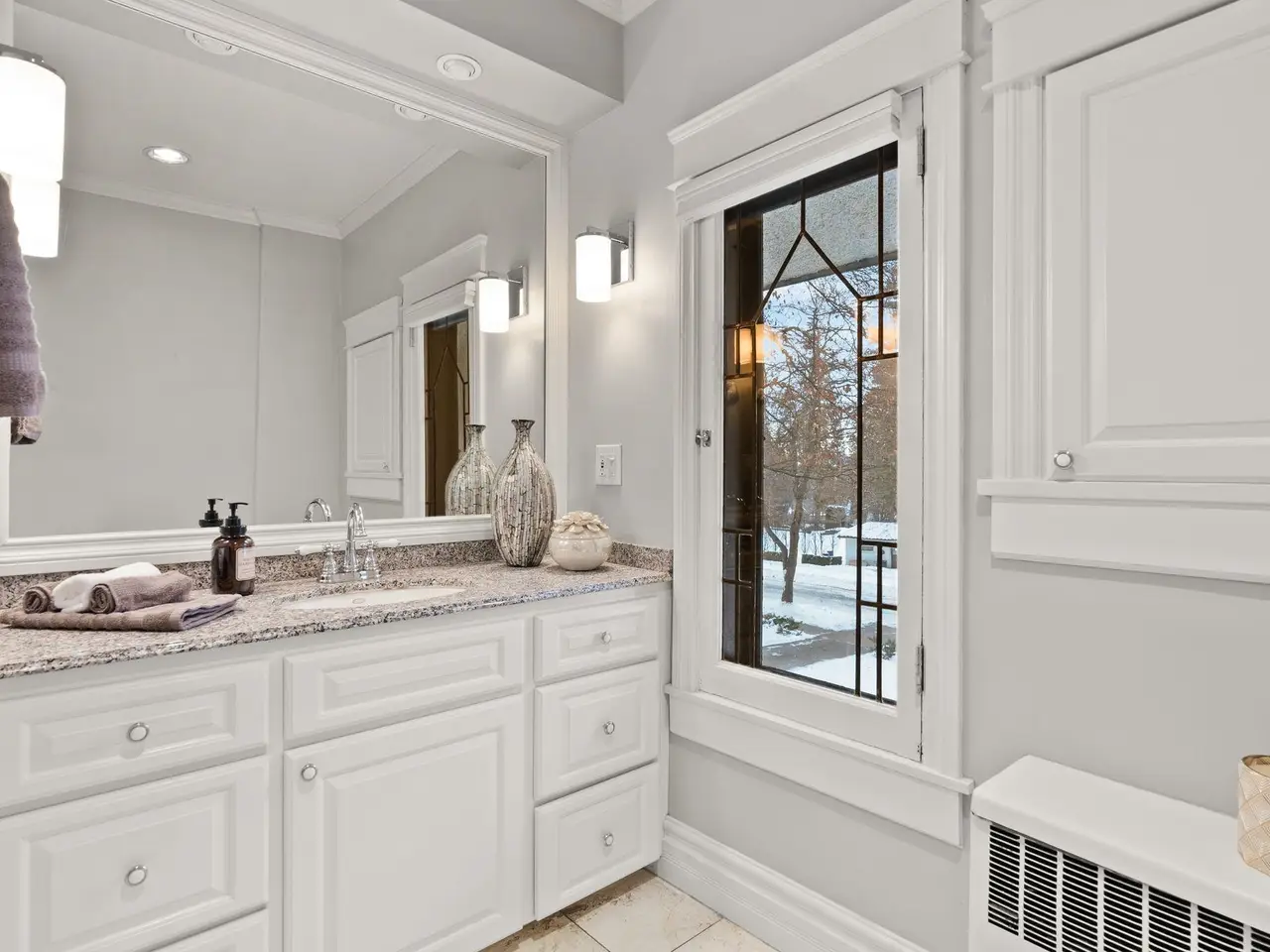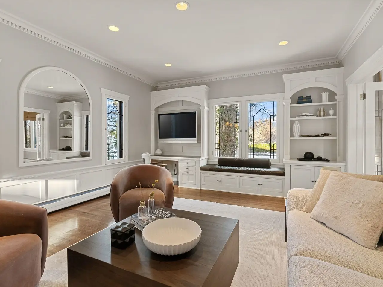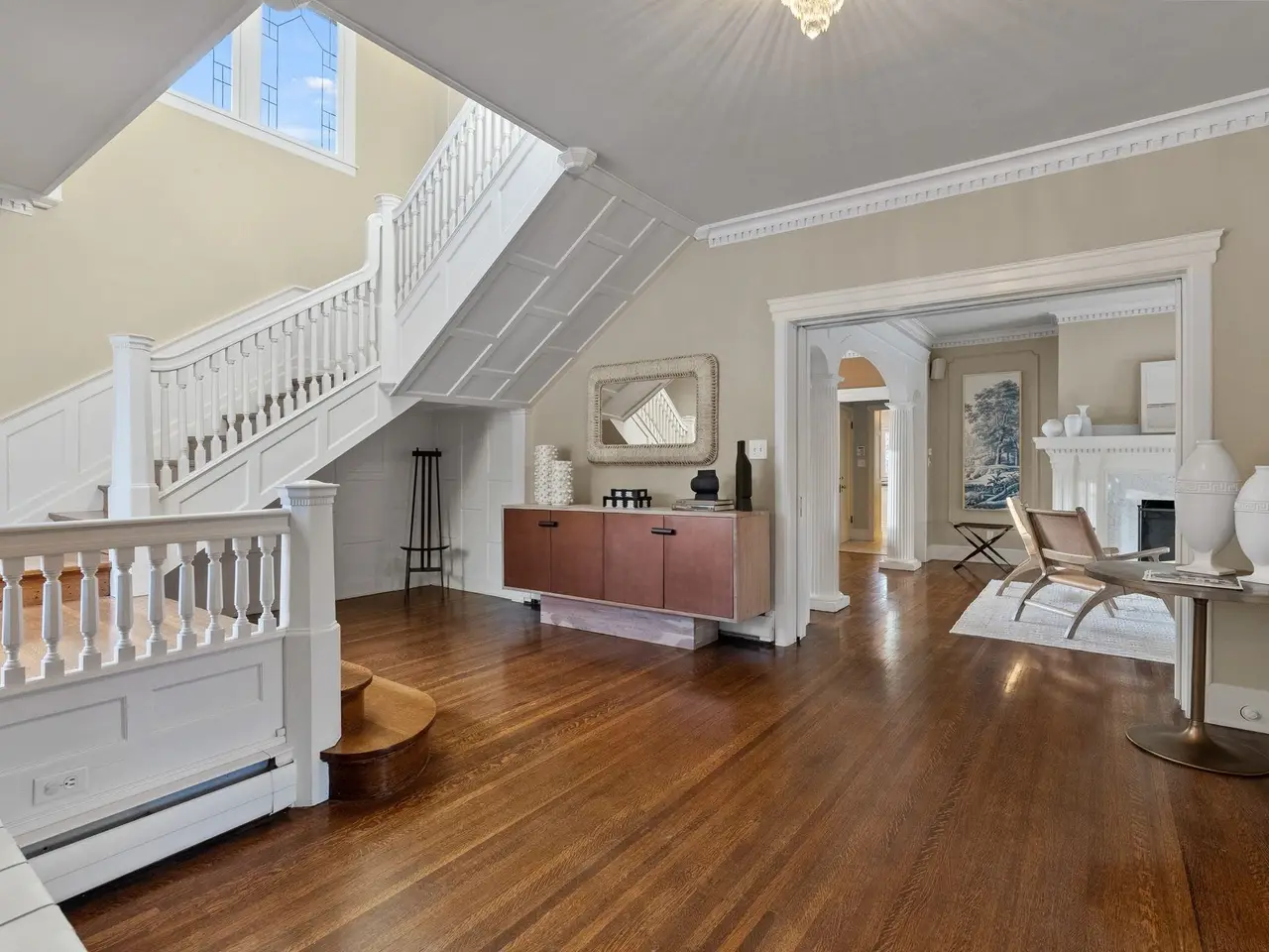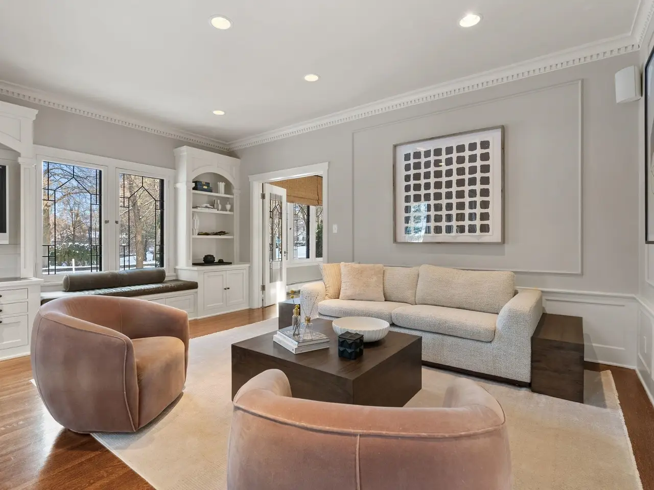 When it comes to location, this home has it, in the most coveted area of Rockwood/Hutton School. With luxury home architecture, this home is far from cookie-cutter & this home's uniqueness adds to the property value in spades. The manicured yard w/2 half circle driveways. The gorgeous entry, hand carved wood staircase, extensive molding, high ceilings & leaded glass windows. The woodwork in this house is art in of itself. Large den leads you into the living area through solid wood pocket doors. Living Room w/marble fireplace, custom drapery, wood floors & dental molding. The heart of the home, the Chef's kitchen w/high end appliances, granite & stone floors, adjoins the dining & family room. Outside is your backyard oasis, south facing paradise w/stretched patio. 2 staircases. Light & bright upstairs, w/wide halls & 5 huge bedrooms & 2 baths, Primary has en-suite bath w/walk-in closet. Basement has storage, rec room, updated laundry & bathroom with new floor, paint & light fixtures. This home is one of a kind!