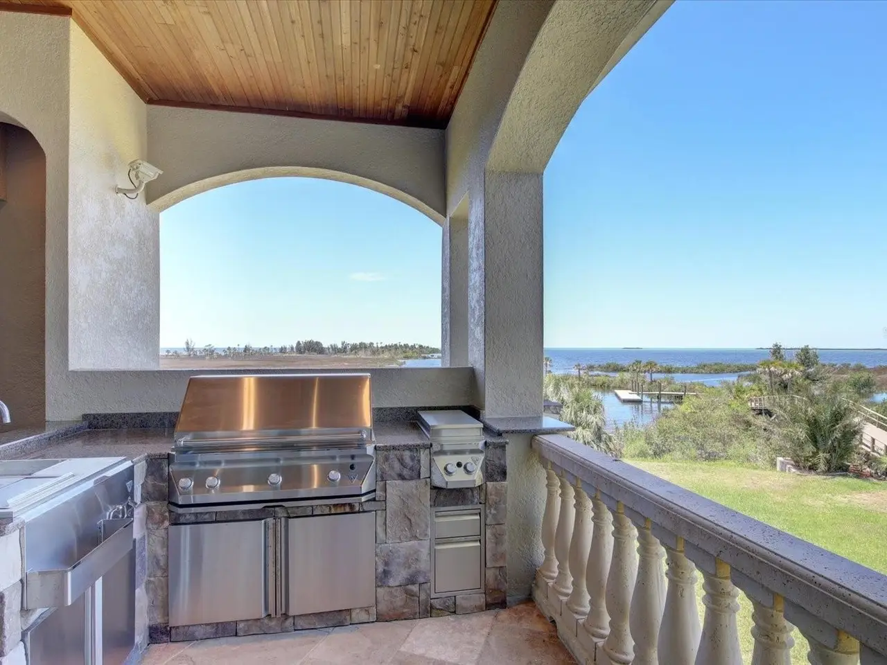 BUILT TO WITHSTAND A CAT 5 HURRICANE, LIVING SPACE OF THE HOME COMPLETELY UNTOUCHED BY HURRICANE HELENE! Some repairs being made to outbuildings and garage doors below the home. MOVE IN READY! TROPICAL GULF OF MEXICO LUXURY ESTATE – This stunning Gulf front property, comprised of over 23 acres, with over 1,100 feet of waterfront on the Gulf of Mexico, with incredible water views from every room is a one-of-a-kind opportunity. The residence is comprised of 5 bedrooms and 5/2 bathrooms in over 8,950 sq ft of living area. Bathed in sunlight, the split plan residence comprises a large entrance hall, living room, generous dining room, butler’s pantry, gourmet kitchen, 350-bottle wine cellar, large walk-in pantry, informal dining area, family room, billiard room, library, professional built 28 seat home theatre, exquisite master suite, opulent en-suite, all showcasing breathtaking views of the Gulf of Mexico. Gated, safe & secure, with a generator that will run the entire home for a month. Outside, a magnificent west facing terrazzo terrace extends the entire length of the home, with an outdoor kitchen with breathtaking Gulf views. Outdoor highlights also include a boat ramp, rustic boat house, a historical rustic guest house, a bridge which leads to an island with a floating boat dock, and double (lighted) tennis courts all amid the beautiful coastal wilderness. A car collectors dream featuring a 40+ car garage, with height for car racks and 12 garage doors, including a utility door, for Helicopter or RV and spans the entire space under the home. The 30,000 sq. ft. motor court makes landing a helicopter easy! The region is a prime spot for water sports and fishing. One of Florida’s most captivating Gulf Coast homes, this private, opulent home is cleverly designed to maximize its position overlooking the Gulf of Mexico.