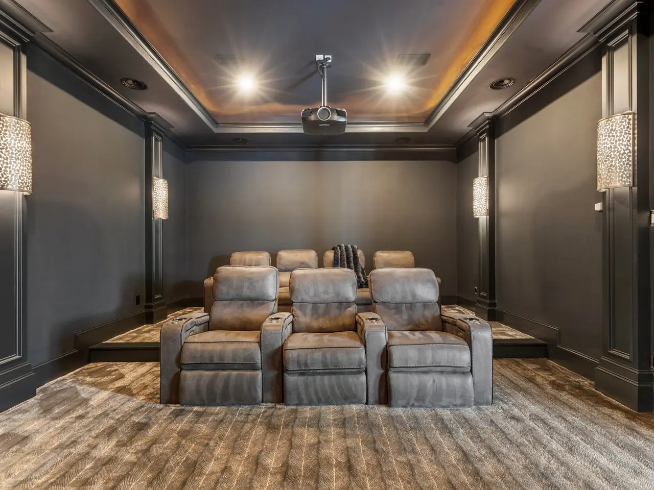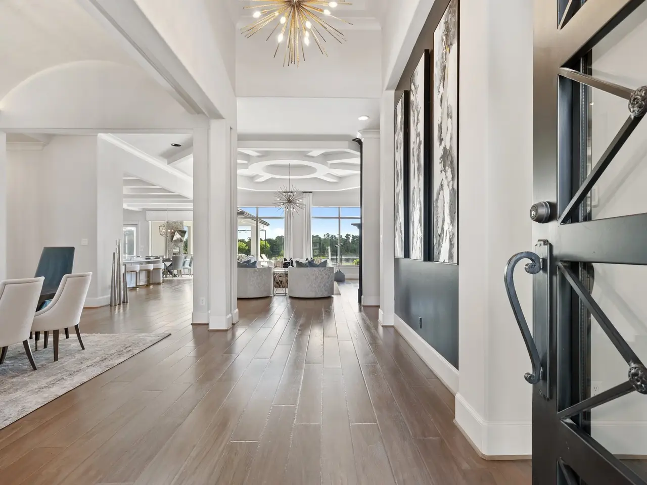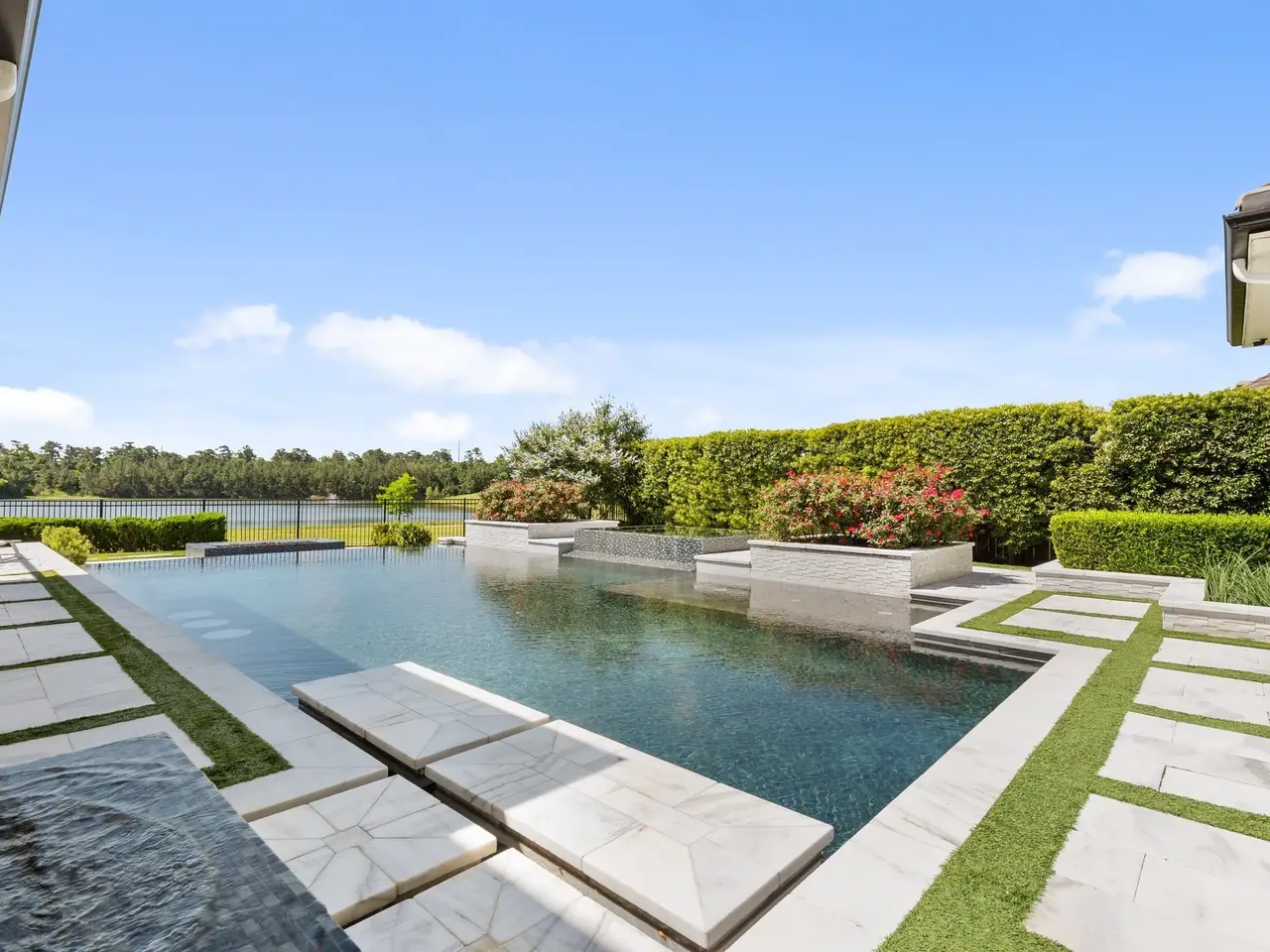 Nestled at the end of a serene cul-de-sac in one of Spring's finest gated communities, this exquisite waterfront estate offers 6,279 sq ft of luxurious living on a generous half-acre lot. Enjoy direct access to scenic walking and hiking trails right from your backyard. The home features 5 spacious bedrooms and 5.5 ensuite bathrooms, along with a rare 4-CAR garage. Its versatile 1.5-story layout includes 2 bedrooms downstairs and 3 upstairs, perfect for retreats. A newly added full bourbon bar room is ideal for entertaining. Your own full lounge theatre room downstairs. Step into your personal oasis with a resort-style backyard, complete with a custom pool, spa, and outdoor kitchen. The inviting lounge area boasts a gas fireplace and covered pavilion, perfect for relaxing afternoons. This exceptional estate exemplifies unparalleled luxury, with meticulous attention to detail for both relaxation and entertainment. Photos do not capture its true beauty! (One owner, occupied since 2018)