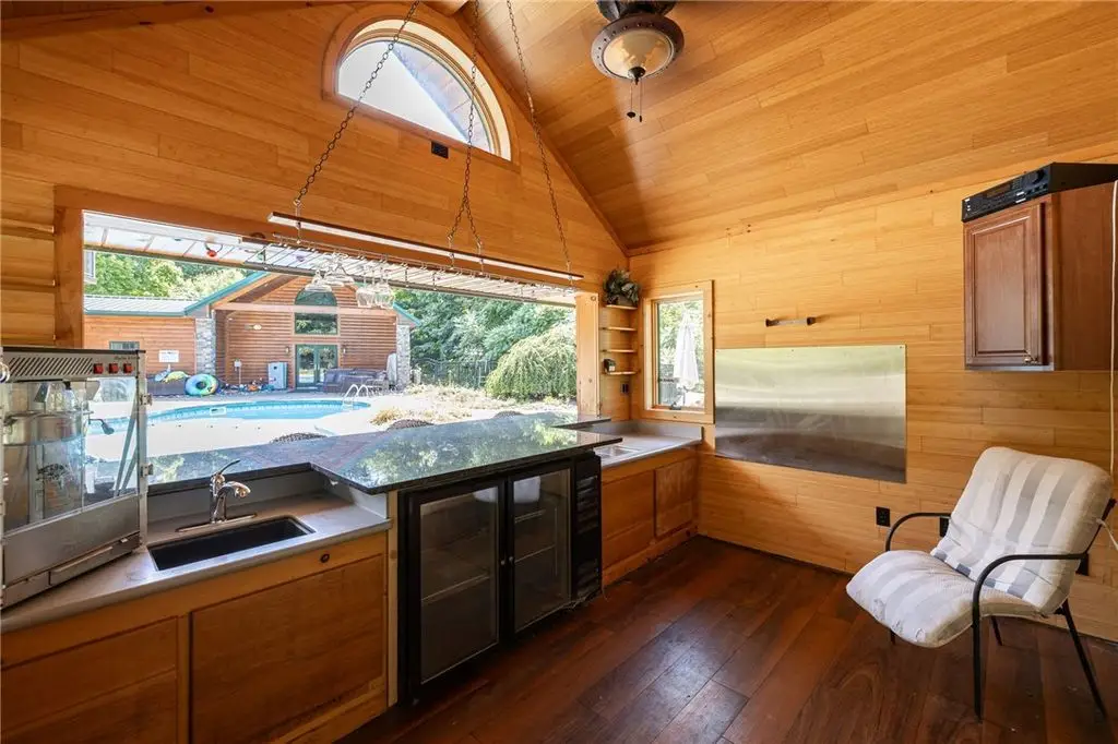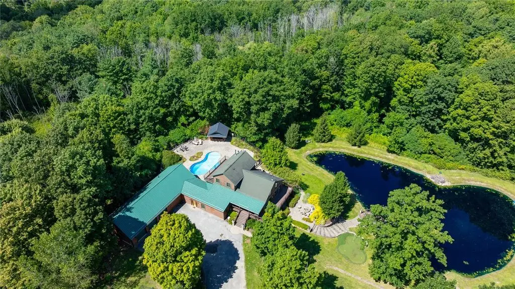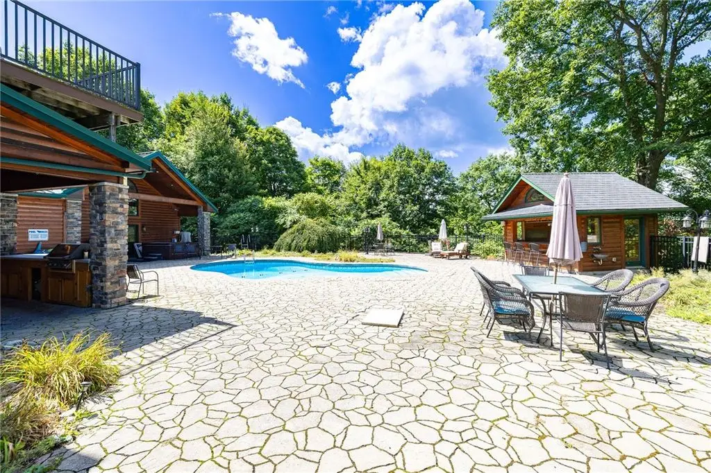 **ONE OF THE MOST BREATHTAKINGLY BEAUTIFUL RESORT STYLE HOMES NY HAS TO OFFER**THIS EXCEPTIONAL PIECE OF REAL ESTATE OFFERS THE PERFECT FUSION OF RUSTIC CHARM AND REFINED LUXURY**NESTLED AMID LUSH, TREE-LINED GROUNDS, YOU WILL FIND THE ULTIMATE PEACE AND TRANQUILITY** INGROUND POOL, OUTDOOR KITCHEN, CABANA/POOL HOUSE, AND HOT TUB ARE JUST A FEW OF THE OUTDOOR LUXURIES YOU WILL BE ABLE TO ENJOY**STEP INSIDE TO SOARING CEILINGS WRAPPED IN RICH NATURAL WOOD, BATHED IN SUNLIGHT THROUGH EXPANSIVE WINDOWS*C/B?B= PERFECTLY DESIGNED KITCHEN FEATURES NEW STAINLESS STEEL APPLIANCES, OVERSIZED ISLAND, AND EAT-IN, OVERLOOKING YOUR LIVING SPACE WITH AN EXQUISITE FLOOR TO CEILING STACKED STONE GAS FIREPLACE*THE PRIMARY SUITE INCLUDES CUSTOM BAR, PELLET STOVE PERFECT FOR THOSE COLDER NIGHTS, FULL BATH AND WALK IN CLOSETS* THIS HOME ALSO INCLUDES AN IN-LAW OR TEEN SUITE WITH SPIRAL STAIRCASE, FULL BATH, LOFT BEDROOM, AND DOORS TO YOUR BACKYARD PATIO/POOL AREA* PRIVATE DRIVEWAY, HUGE POND WITH PERMANENT DOCK, PUTTING GREEN, TWO STORY BALCONIES, AND SO MUCH MORE** THIS PROPERTY IS PERFECT FOR FAMILY LIVING OR THE PERFECT VENUE FOR YOUR NEXT EVENT OR EVEN AIR BNB!!!**