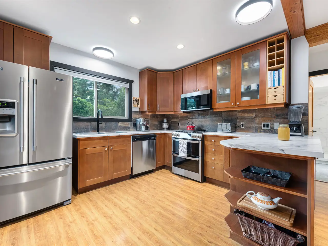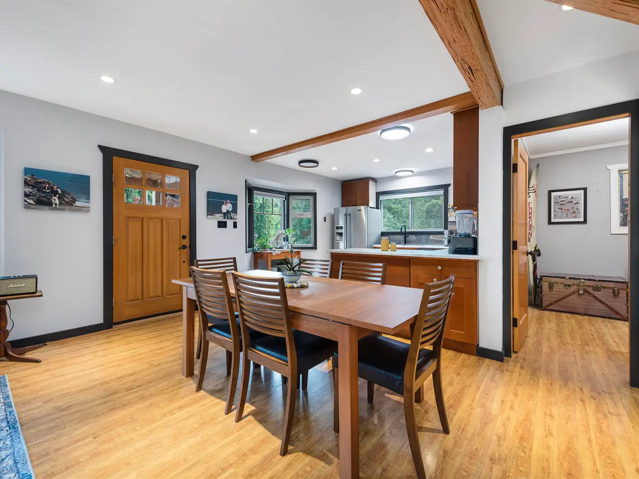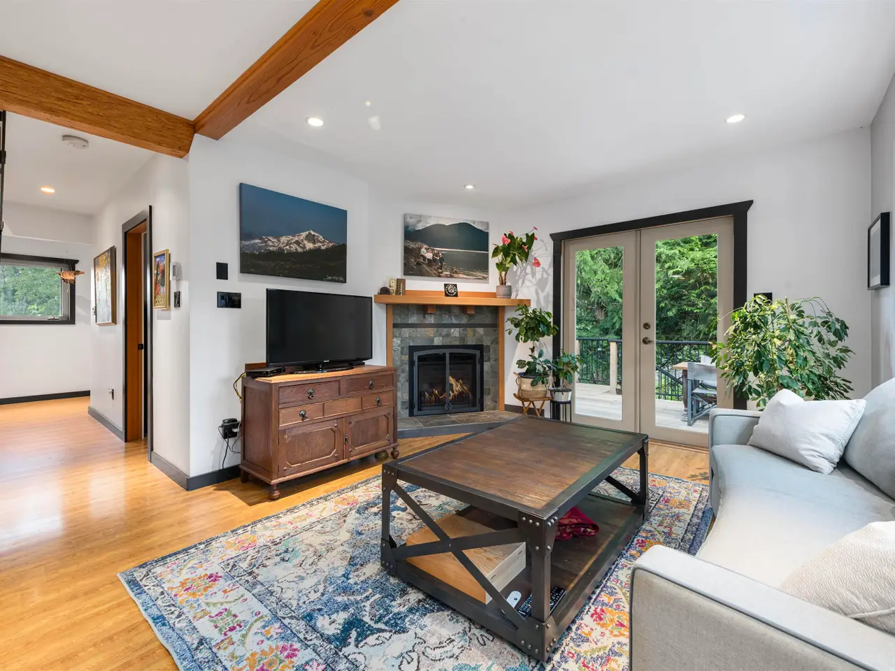 Incredible opportunity to own two beautifully maintained homes on a 26,588 SF lot in Brackendale. The 4-bed, 3-bath West Coast Craftsman home (2,526 SF) features exposed timber, wood accents, two fireplaces, a spacious rec room, and a private primary suite with clawfoot tub. At the rear, a charming 2-bed, 1.5-bath character home (1,824 SF) with a lofted studio with its own kitchen and bathroom. A certified wood stove and bright kitchen. These homes offer ideal separation for multi-gen living or income. Set in a uniquely rural Squamish pocket, this property also includes 2 sheds, a large workshop, mature gardens, and ample parking.