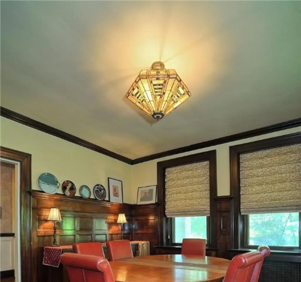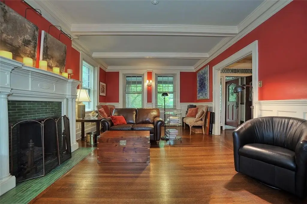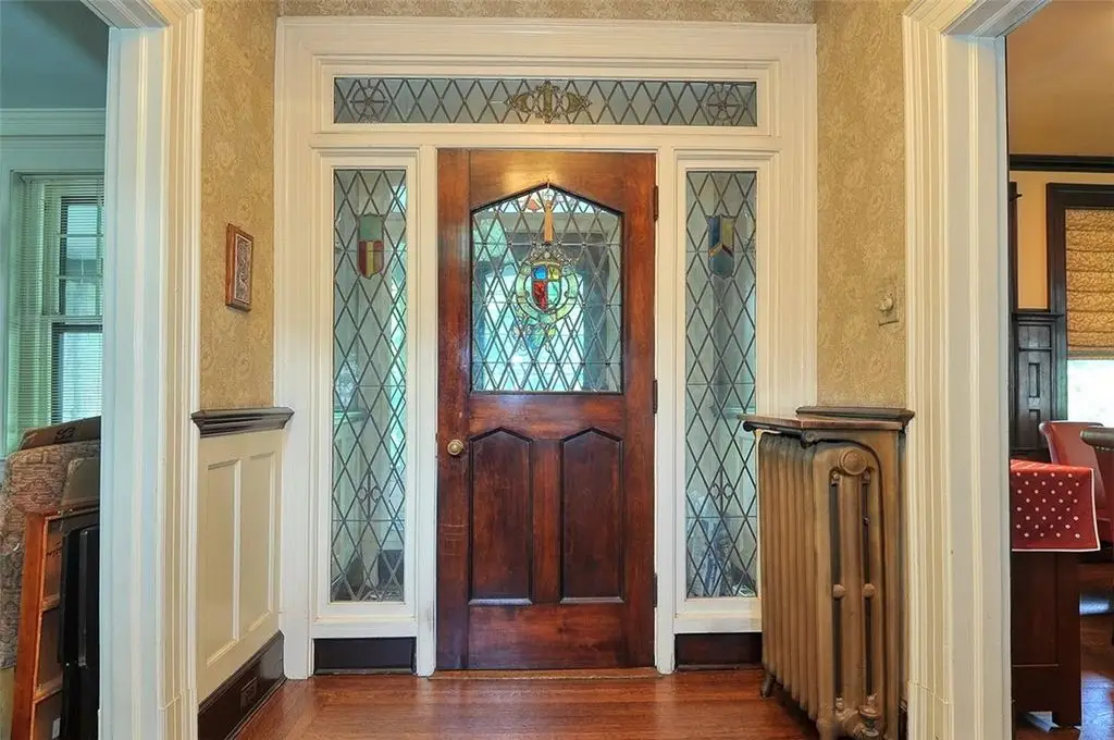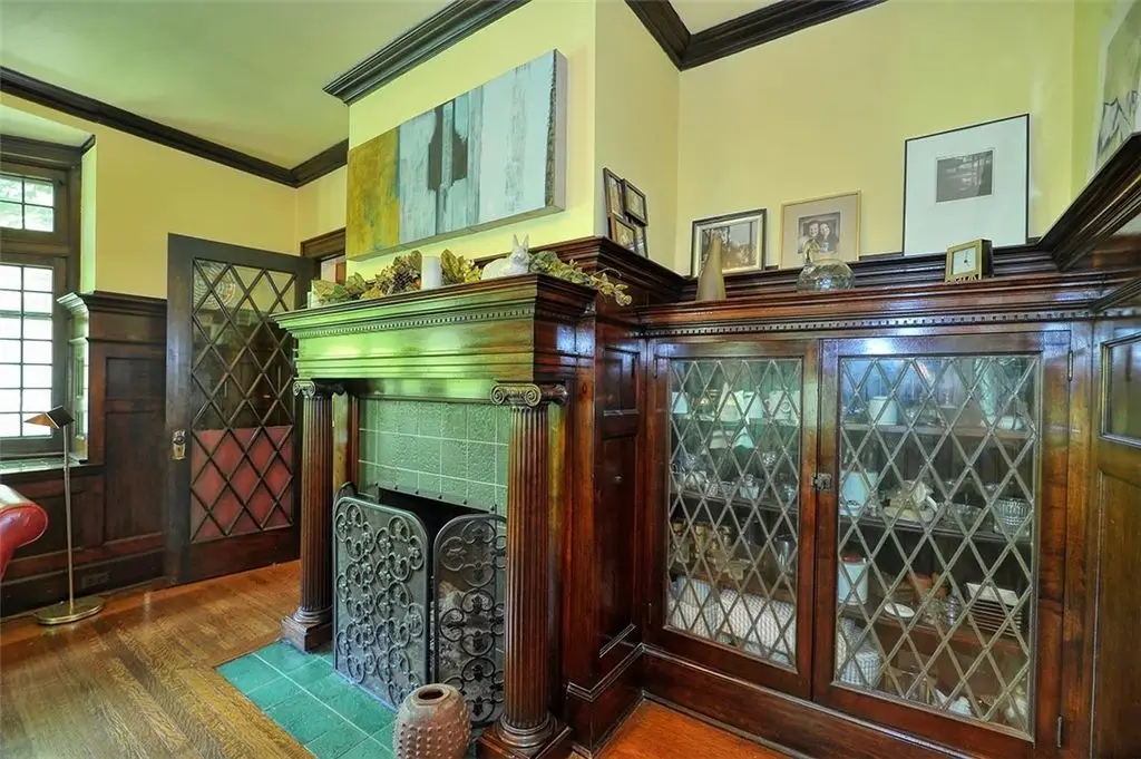 Stone & Stucco Tudor Residence features 6 BR's, 3.5 Baths, Tiled Vestibule Entry, Center Hall with Extensive Woodwork, Stained & Leaded Glass, Original Bronze & Glass Light Fixture; Handsome, Rich Woodwork w/Beamed Ceiling, Fireplaces, Built-in Cabinets w/Leaded Glass & window Seating; Natural woodwork, Wainscoting, & wood Paneled Walls. Kitchen Cherry Cabinets, Gas Cooktop, & SS Appliances. Kitchen opens to 1st Floor Family Room that opens to Outdoor Large Deck & Backyard; Pwd. Rm. on 1st floor too; NEW ROOF (2024); Charm & Character Abound throughout this Gracious home! 2nd floor (4) Bedrooms includes Updated Master Bath w/Oversized Walk-in Shower & Diamond Paned Windows; The fourth BR on this living level of the home offers a Fireplace w/Rockwood Tiles; Tooled & Painted Leather Mural. Sun Room & En-suite Remodeled Bath w/Claw Footed Tub, blt-in Shelving & Stained Glass Window! 3rd Floor three add'l rooms with Pine Floors and Natural Light! Oversized 2 Car Garage w/storage space!