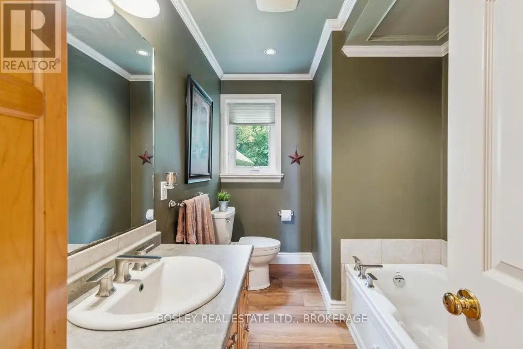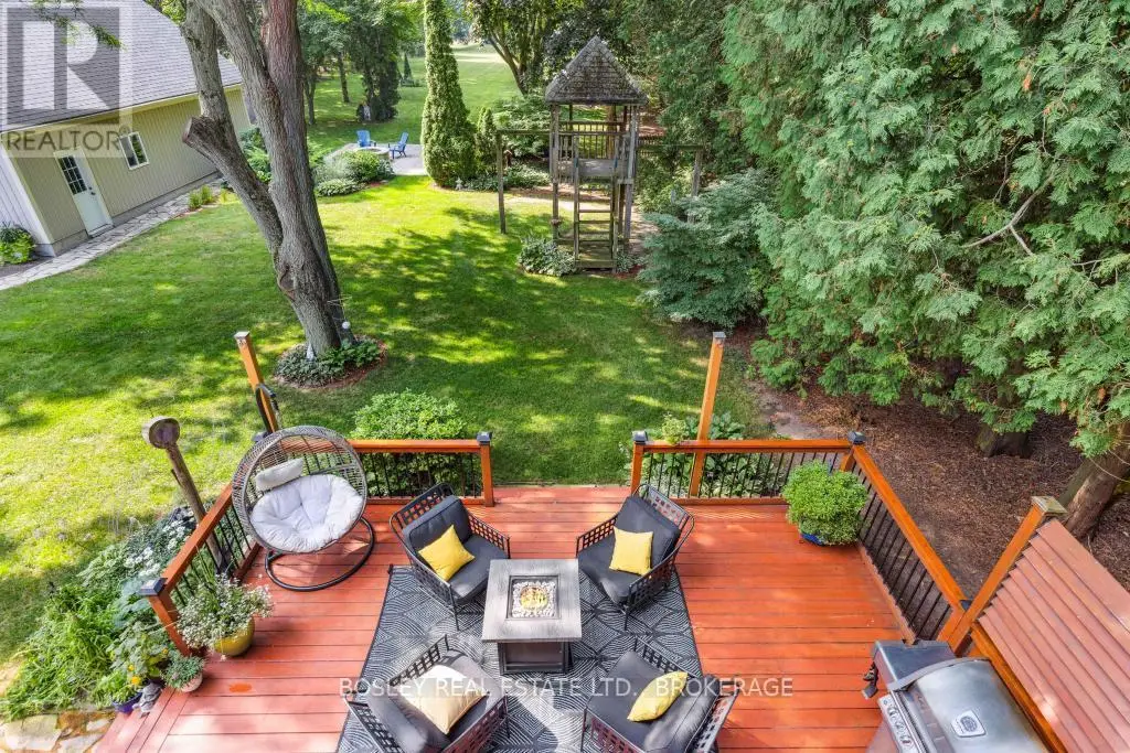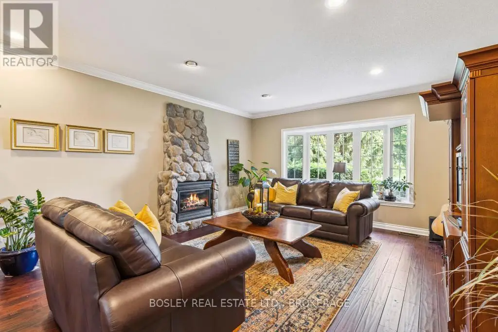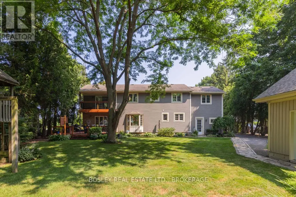A perfect slice of country living with the convenience of the city mere minutes away, it'll be easy to picture yourself here. This property offers the space and lifestyle that'll check all the boxes! Let's get into it - Here are some standout features you and the family will appreciate: (1) Beautifully landscaped 1-acre lot with mature trees and open space to roam. (2) Picturesque views of the neighbouring orchard across the street to remind you that you're not in the city anymore. (3) Room for everyone (and their cars!) with a large driveway that fits 10+ vehicles. (4) Oversized detached garage (864 sq. ft.) with bonus loft space ideal for a studio, hobbyist, or future guest suite. (5) What's country living without a bonfire?! This striking custom stone firepit with tile surround is built for evenings under the stars. (6) Expansive back deck with space for dining, relaxing, and entertaining. (7) 2,880 sq. ft. of interior living space designed for family life and flexibility including a large sunken family room with stone gas fireplace, PLUS a living room down the hall for nights when the family can't agree on which show to watch together. (8) Updated eat-in kitchen with quartz counters, tiled backsplash, and under-cabinet lighting, as well as a bright formal dining room for those larger gatherings. (9) Four spacious bedrooms plus a bonus den off of one of the bedrooms which could be used as a 5th bedroom or as a separate living space for your college or university kid. The kids are never going to leave home :) (10) The primary bedroom is large with a 3-pc ensuite bathroom and sliding doors out to a private balcony overlooking the scenic backyard. This home offers a true family lifestyle all just minutes from the city core and the QEW. A special, scenic country retreat that still keeps you close to everything. (id:7434)