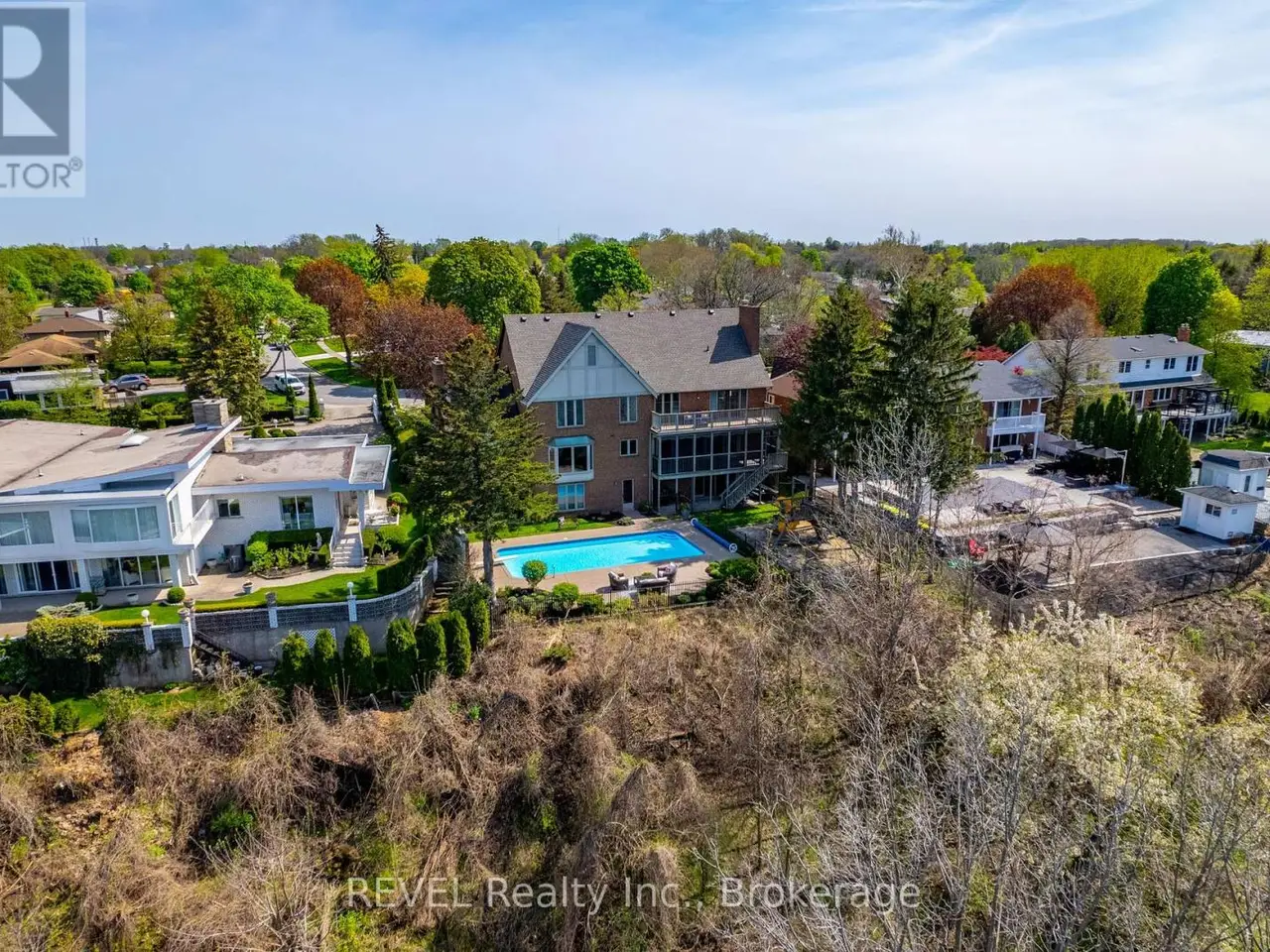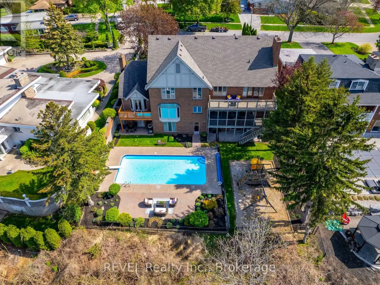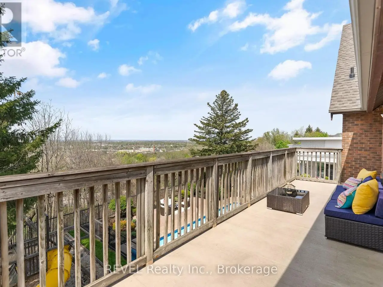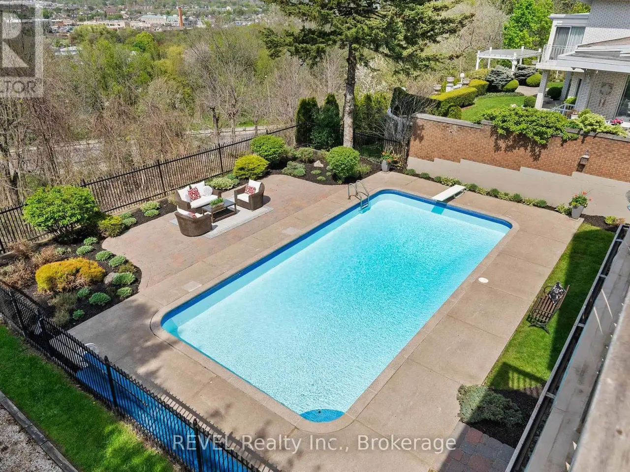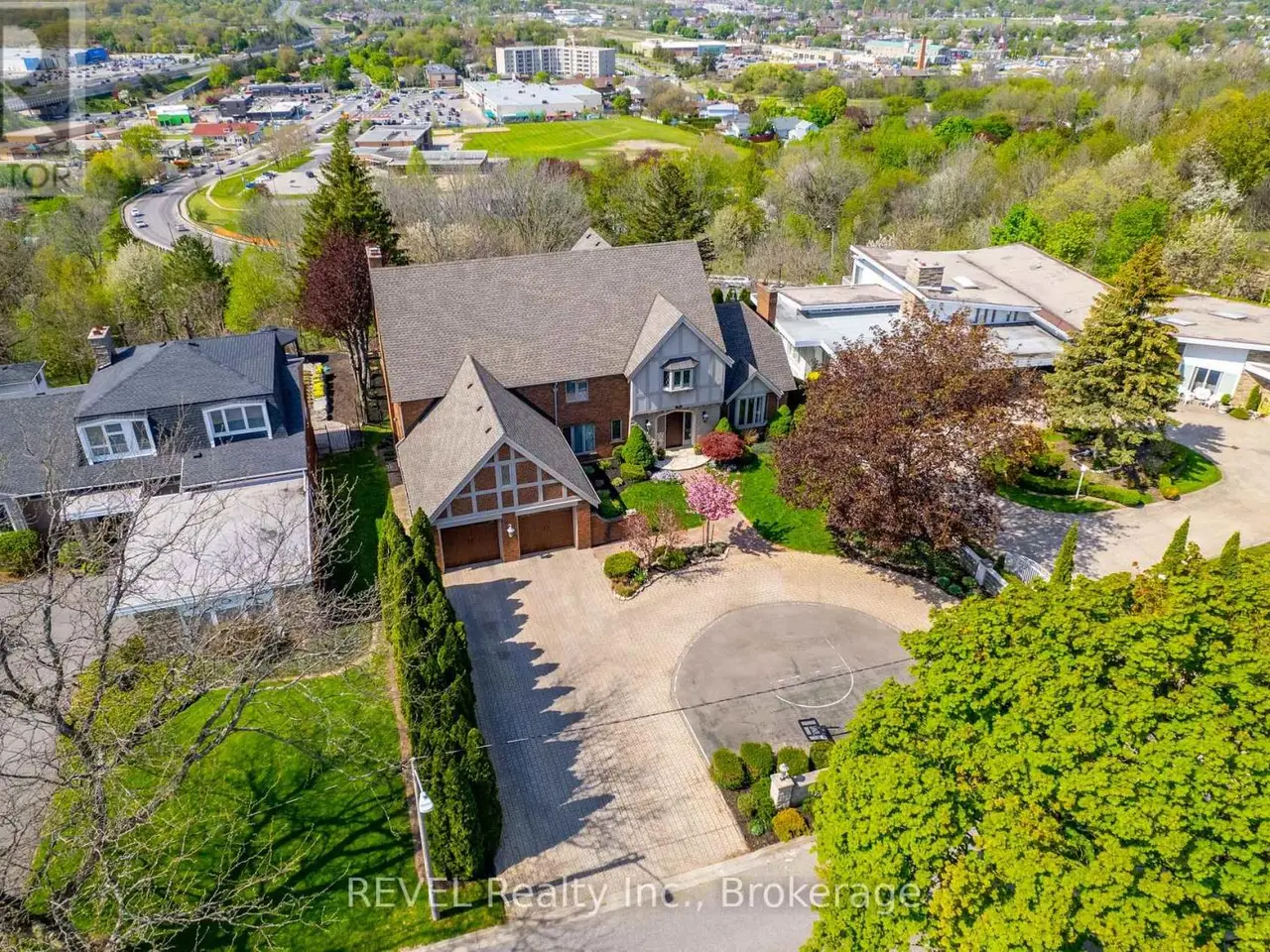 Nestled on the scenic escarpment in the prestigious south end of St. Catharines, this exceptional French Tudor-inspired estate offers over 6,000 sq. ft. of meticulously designed living space with panoramic city light views stretching as far as Lake Ontario on a clear day. Characterized by soaring ceilings, rich wood paneling, and exquisite craftsmanship, the home exudes timeless elegance and sophistication, with every detail curated to reflect the highest standards of luxury. The four-bedroom, four-bathroom layout is perfect for both grand entertaining and private retreat, and the expansive primary suite has been beautifully remodeled to include a spacious walk-in dressing room and a newly renovated 4-piece ensuite. Step outside to your own personal resort, complete with an in-ground pool, multiple covered patios across different levels, and professionally landscaped grounds with mature trees, an in-ground sprinkler system, and a cedar sauna, creating a serene, private oasis. The upgraded gourmet kitchen, hardwood floors throughout, and expansive windows that invite natural light add to the homes comfort and charm, while a full walkout to the backyard enhances the seamless indoor-outdoor flow. Additional features include a two-car garage, potential for secondary living quarters on the lower level, and close proximity to top schools, Brock University, shopping, and major highways. Set in a neighborhood of other prestigious estates, this remarkable home offers an unparalleled opportunity for luxury living in one of St. Catharines' most desirable locations. (id:7434)