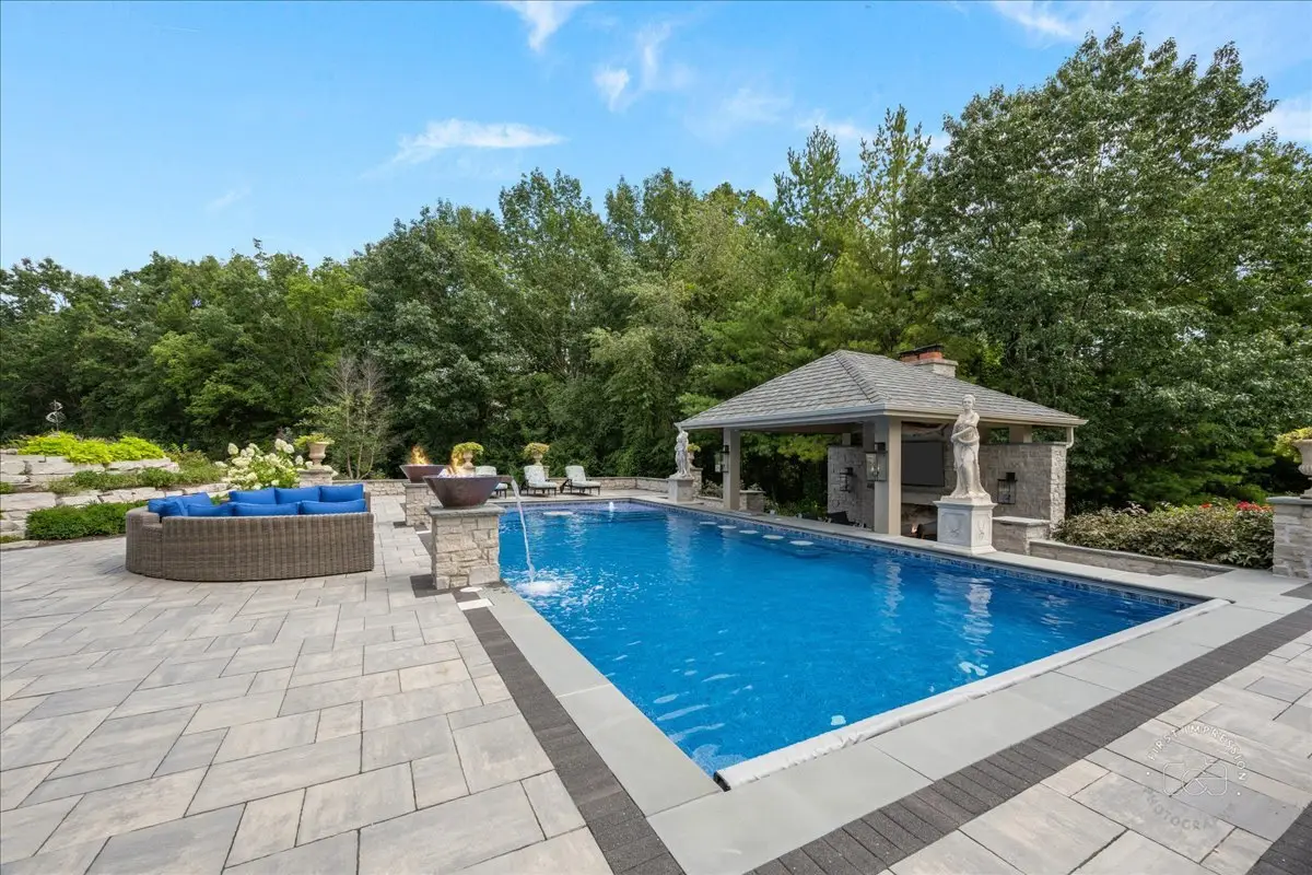 Welcome to the ultimate luxury retreat in the highly coveted Crane Road Estates - a stunning, recently remodeled masterpiece situated on a serene cul-de-sac lot spanning nearly two acres. This exquisite residence has been reimagined with every detail in mind, boasting an all-new gourmet kitchen, a lavish master bathroom, and gleaming hardwood flooring throughout. Designer lighting illuminates each space, while the amazing walkout basement is a true entertainer's dream, featuring a custom bar, a private fitness room, and a sophisticated cigar lounge with professional-grade ventilation. Step outside to your personal resort: a brand-new backyard oasis complete with a sparkling inground pool, a tanning deck with dramatic fire bowls, a gazebo with a cozy fireplace and TV viewing area, and a fully equipped outdoor kitchen with a built-in grill. Relax by the fire pit under the stars, enjoy dining on the gorgeous terraces, or find tranquility by the serene Koi pond-all surrounded by lush, professionally landscaped grounds. Every inch of this home reflects luxury, comfort, and style-offering the perfect blend of modern amenities and timeless elegance. This is the dream home you've been waiting for.