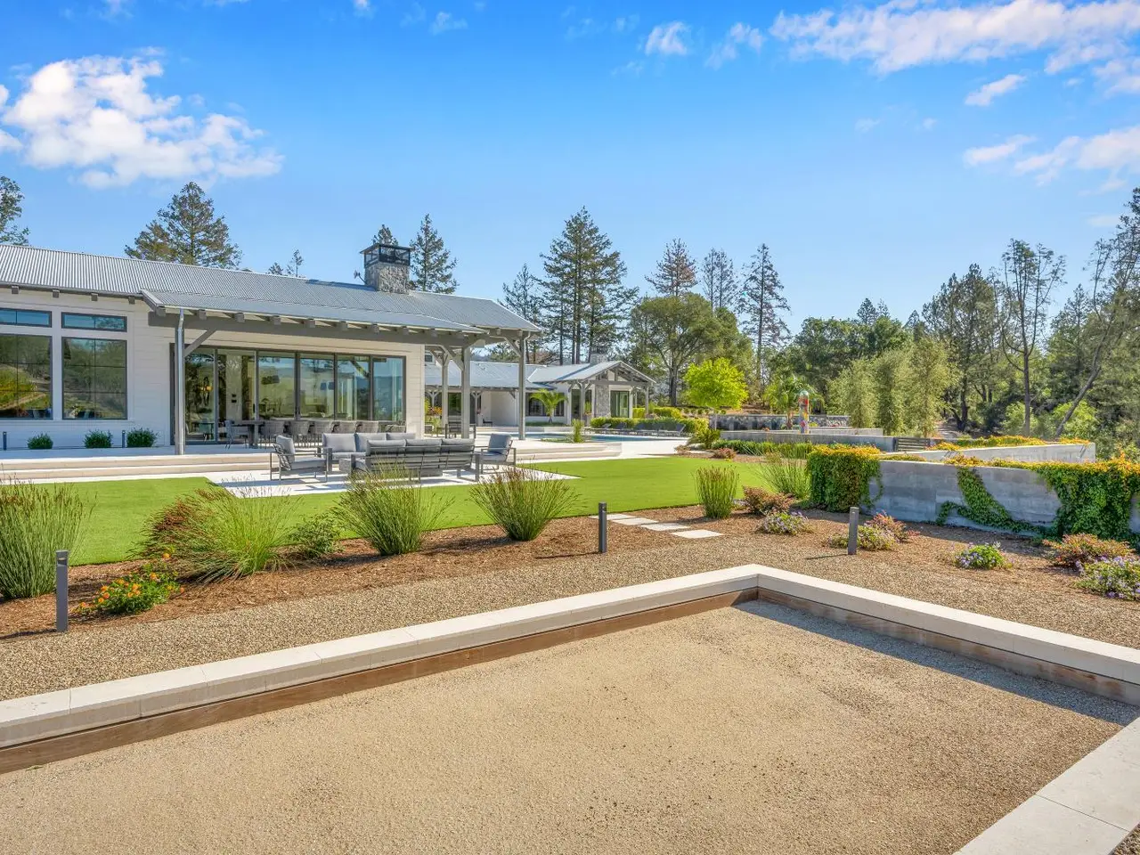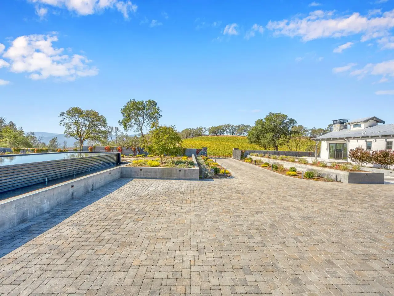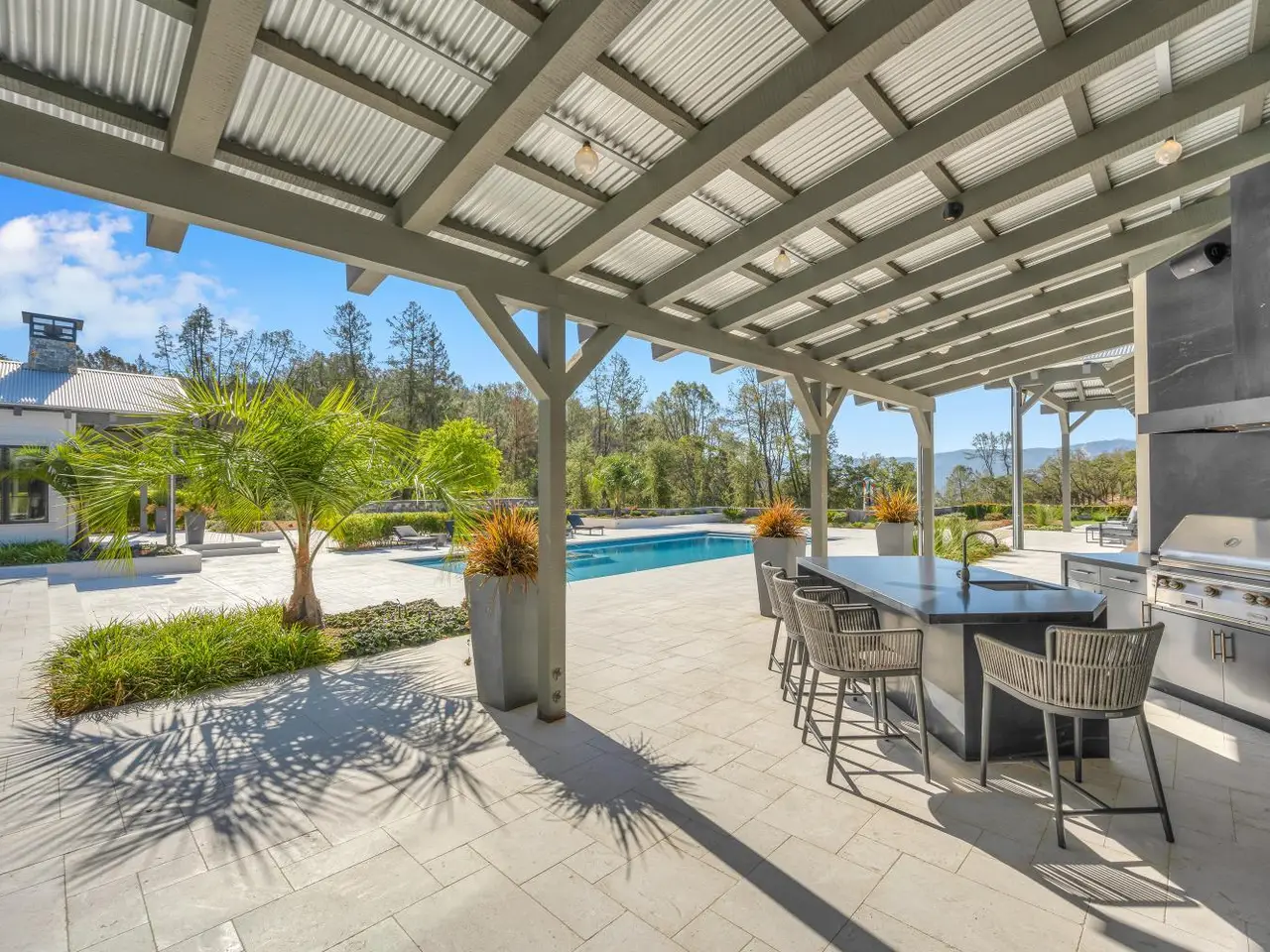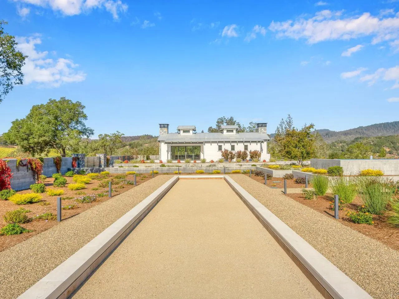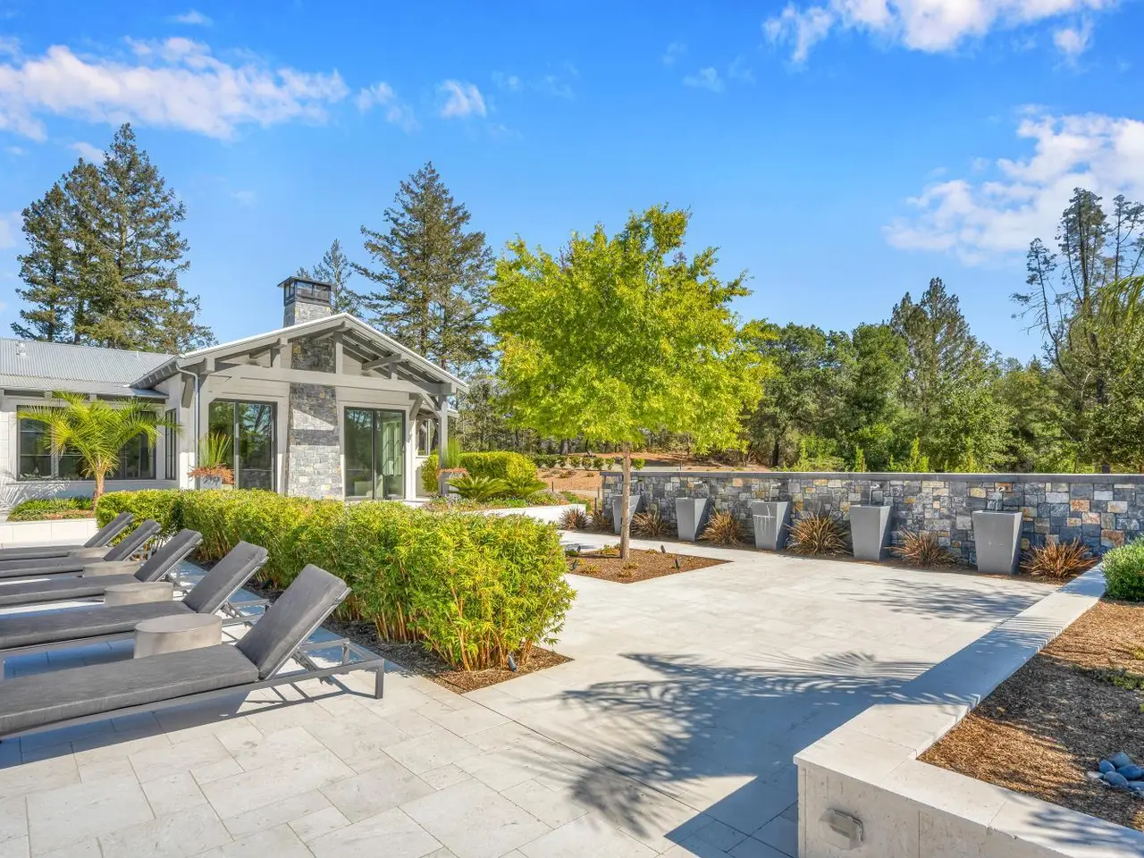 A luxury estate set on 8.04 acres across from the famed upper ridge vineyards of Joseph Phelps, this property has been meticulously designed to maximize privacy, capture vineyard vistas, and harmonize with the surrounding topography. The 7,920 sq. ft. main residence showcases four bedrooms and is constructed with the highest quality materials and finishes. Inside, the home features a dramatic great room, a true chef's kitchen, office/study, walk-in wine cellar, media lounge, and a primary suite with its own private entry lounge. A secondary 1,200 sq. ft. dwelling offers two bedrooms, a full kitchen, living room, and covered patios at both the front and back, providing ideal accommodations for guests. Outdoor living is equally compelling, with more than 2,600 sq. ft. of covered space designed for seamless indoor/outdoor living. Expansive limestone patios lead to a fully equipped outdoor kitchen with pizza oven, resort-style pool and spa, two firepits, an outdoor fireplace, and a bocce courtall thoughtfully crafted for both intimate gatherings and large-scale entertaining.