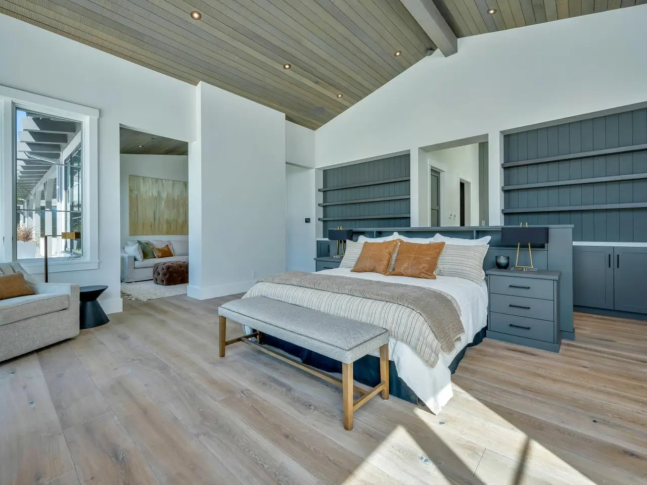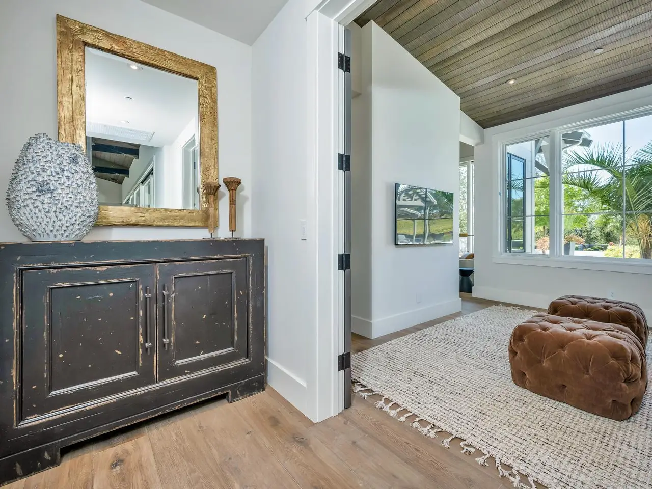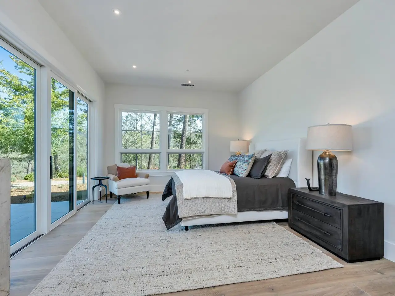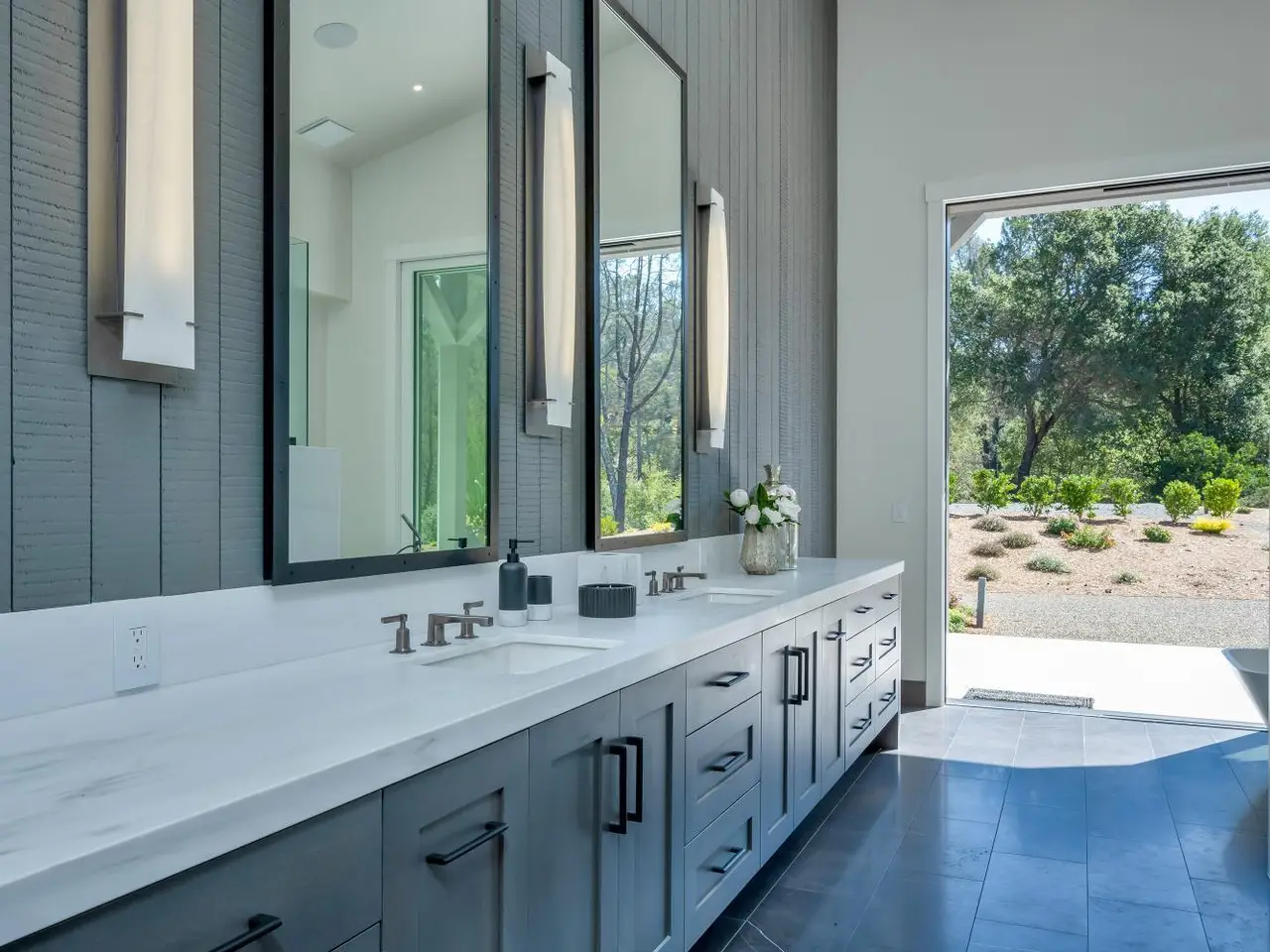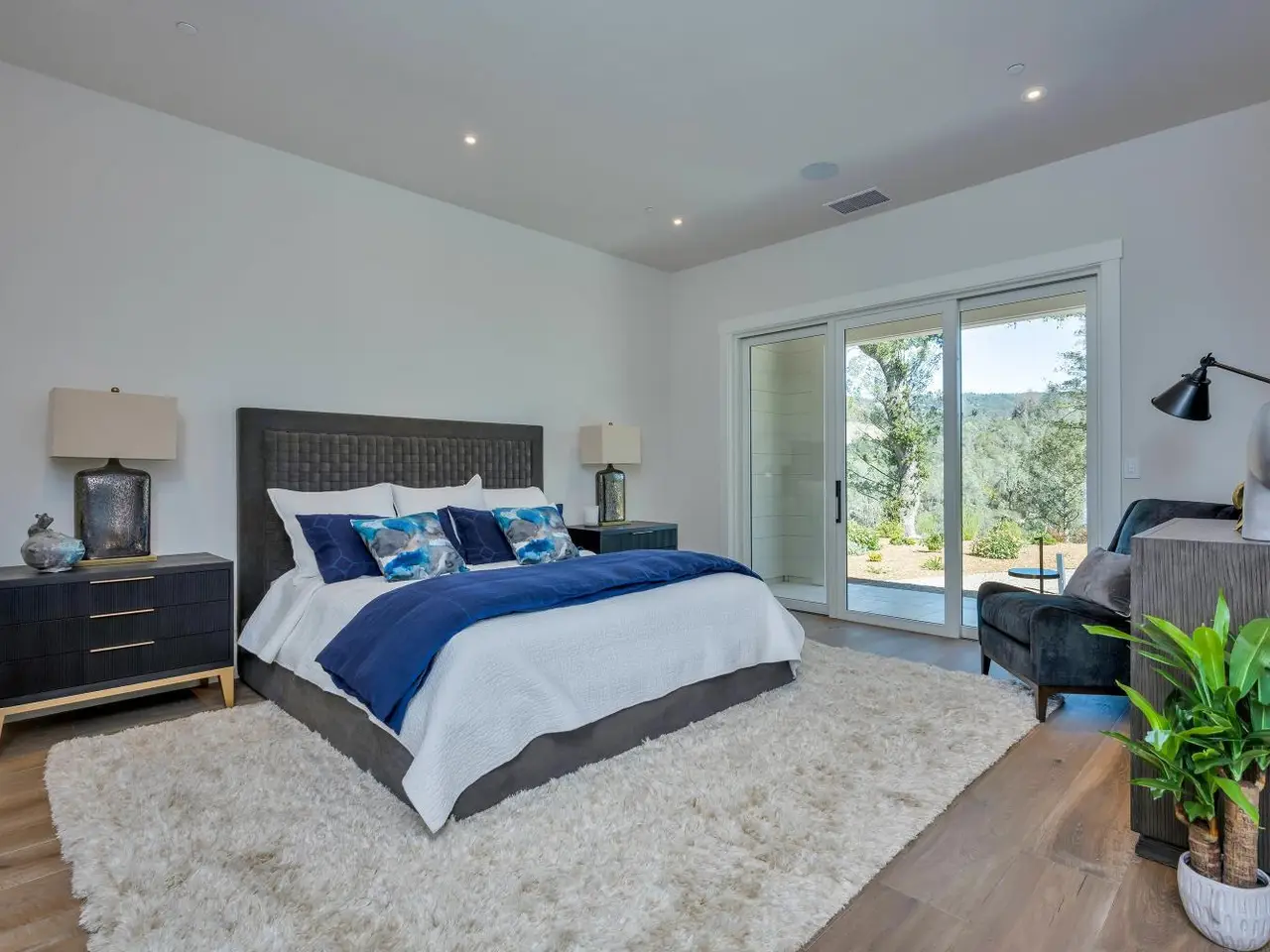 A luxury estate set on 8.04 acres across from the famed upper ridge vineyards of Joseph Phelps, this property has been meticulously designed to maximize privacy, capture vineyard vistas, and harmonize with the surrounding topography. The 7,920 sq. ft. main residence showcases four bedrooms and is constructed with the highest quality materials and finishes. Inside, the home features a dramatic great room, a true chef's kitchen, office/study, walk-in wine cellar, media lounge, and a primary suite with its own private entry lounge. A secondary 1,200 sq. ft. dwelling offers two bedrooms, a full kitchen, living room, and covered patios at both the front and back, providing ideal accommodations for guests. Outdoor living is equally compelling, with more than 2,600 sq. ft. of covered space designed for seamless indoor/outdoor living. Expansive limestone patios lead to a fully equipped outdoor kitchen with pizza oven, resort-style pool and spa, two firepits, an outdoor fireplace, and a bocce courtall thoughtfully crafted for both intimate gatherings and large-scale entertaining.