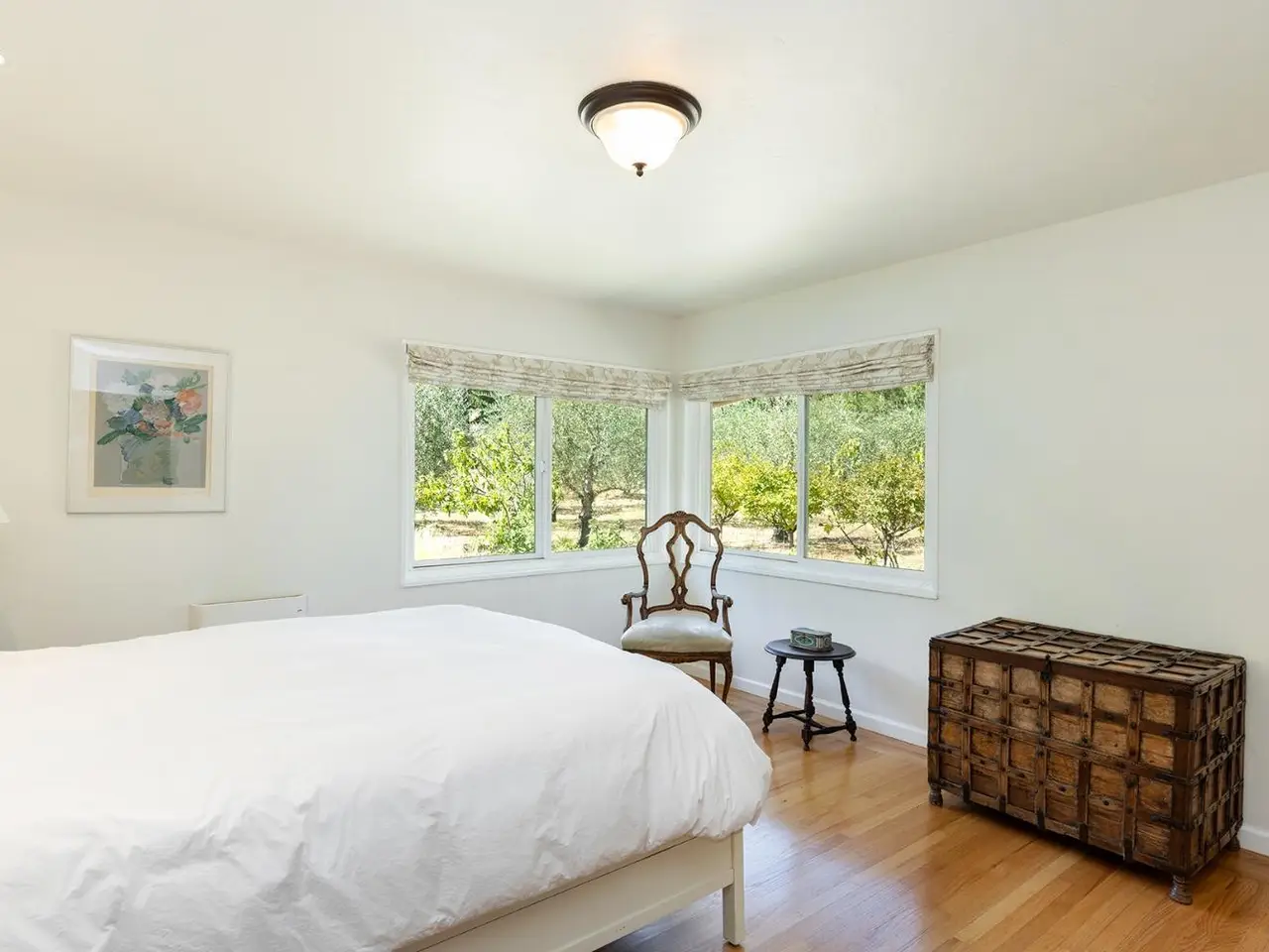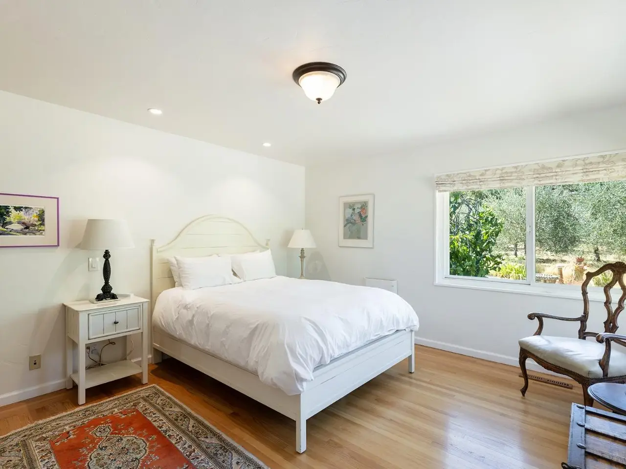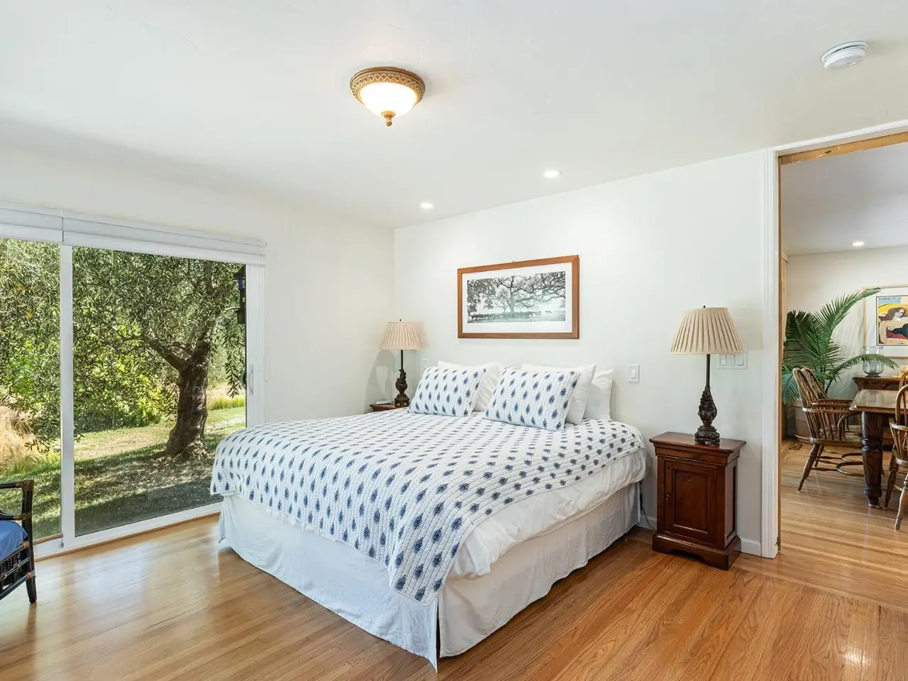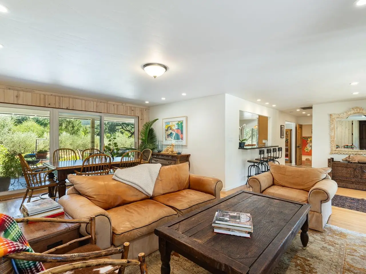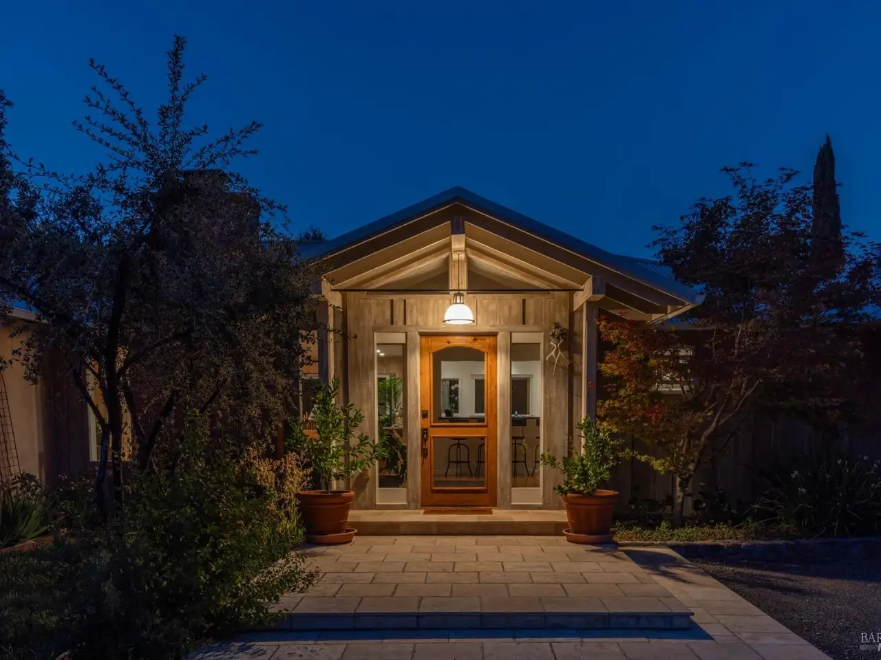 Nestled in a serene landscape featuring over 200 mature olive trees, this updated single-level main house plus additional single level 2nd dwelling and additional structures sit on a private 2.57 acre oasis. Just 4 miles from St. Helena and 2.5 miles to stunning Lake Hennessey, this Napa Valley compound exudes charm and tranquility. The main residence includes 2 bedrooms and 2.5 bathrooms within approximately 2,110 square feet, offering a spacious and inviting layout. Rustic hardwood and large-format stone floors enhance the interior, while expansive sliding patio doors seamlessly connect indoor and outdoor spaces. The kitchen features a quaint breakfast nook, granite countertops, high-end appliances, bar-top seating, and a large walk-in pantry, making it both functional and stylish. A private flex room with a separate entrance provides flexibility, ideal for a third bedroom, office, craft room, or gym. Step outside to discover a truly special outdoor space, complete with a covered back patio perfect for gatherings. Enjoy breathtaking views of the manicured olive orchard, neighboring vineyards and mountains beyond. Access the charming 910+/- square foot guest house and 805+/- sf storage building near the back of the property via a gravel pathway or a separate entrance off Rossi Rd.