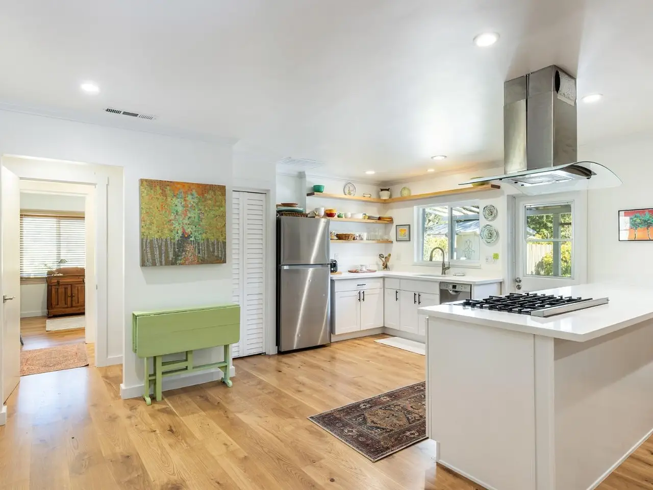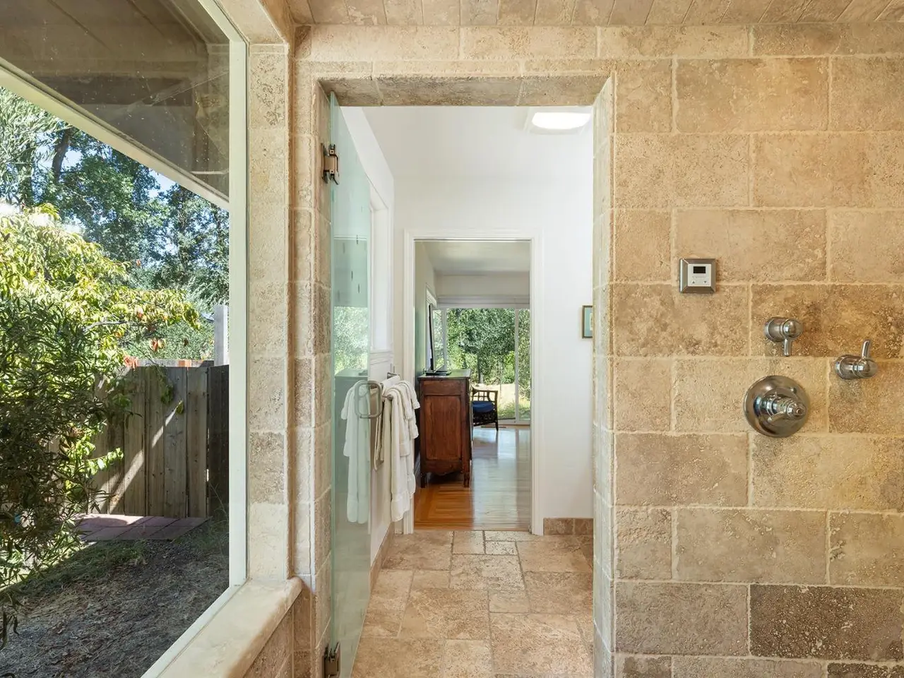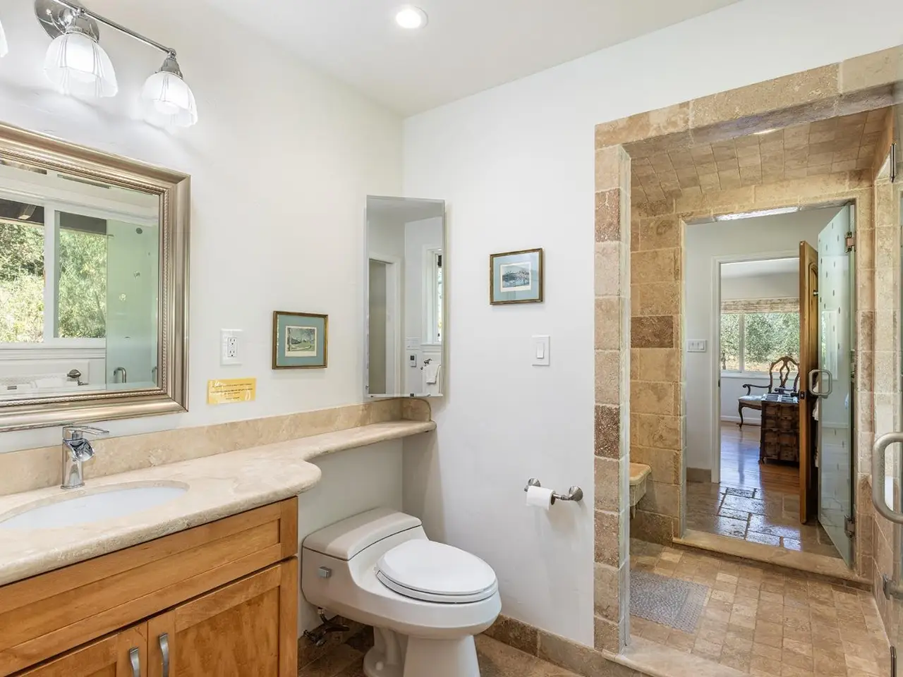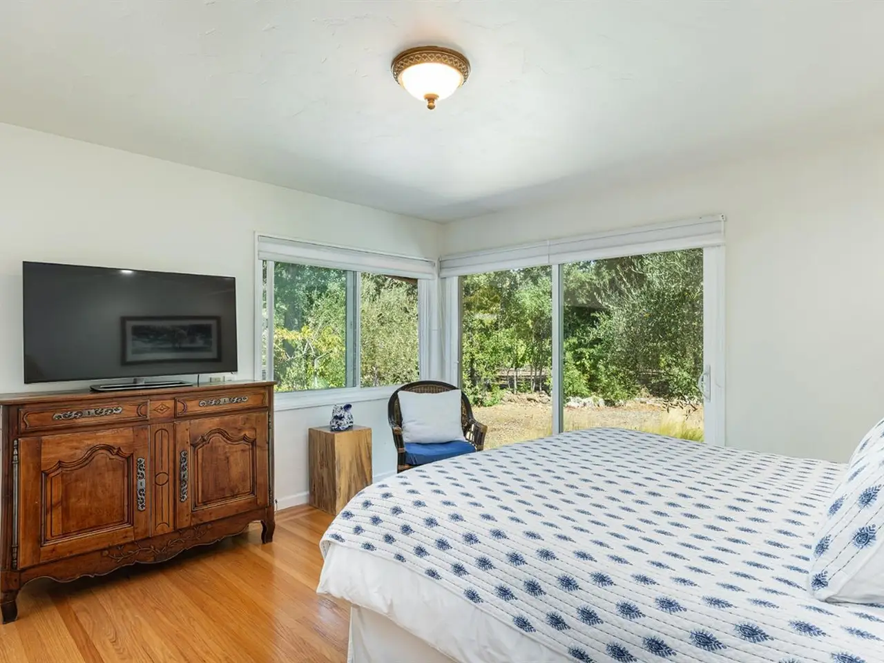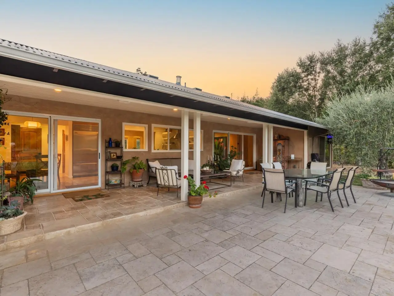 Nestled in a serene landscape featuring over 200 mature olive trees, this updated single-level main house plus additional single level 2nd dwelling and additional structures sit on a private 2.57 acre oasis. Just 4 miles from St. Helena and 2.5 miles to stunning Lake Hennessey, this Napa Valley compound exudes charm and tranquility. The main residence includes 2 bedrooms and 2.5 bathrooms within approximately 2,110 square feet, offering a spacious and inviting layout. Rustic hardwood and large-format stone floors enhance the interior, while expansive sliding patio doors seamlessly connect indoor and outdoor spaces. The kitchen features a quaint breakfast nook, granite countertops, high-end appliances, bar-top seating, and a large walk-in pantry, making it both functional and stylish. A private flex room with a separate entrance provides flexibility, ideal for a third bedroom, office, craft room, or gym. Step outside to discover a truly special outdoor space, complete with a covered back patio perfect for gatherings. Enjoy breathtaking views of the manicured olive orchard, neighboring vineyards and mountains beyond. Access the charming 910+/- square foot guest house and 805+/- sf storage building near the back of the property via a gravel pathway or a separate entrance off Rossi Rd.