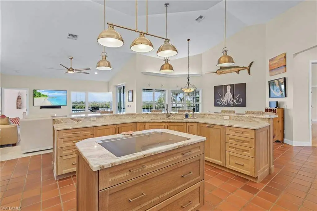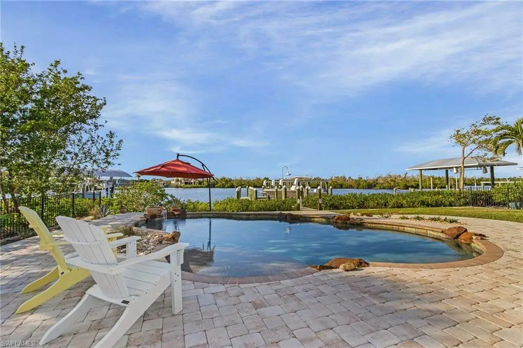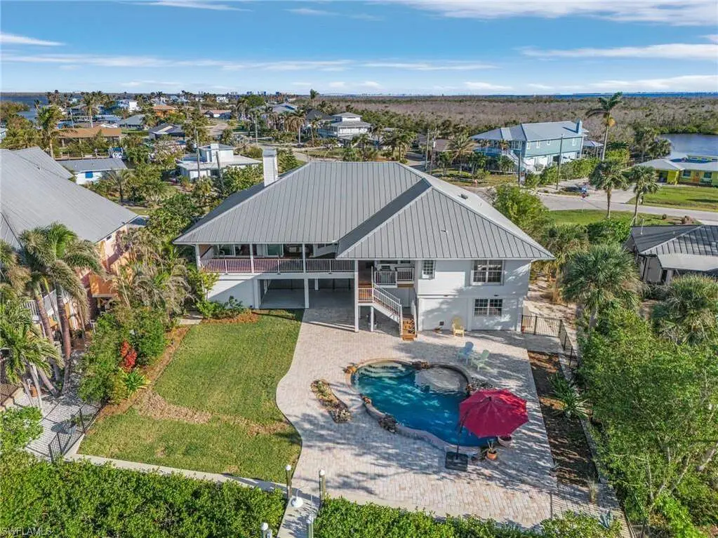 This home has it all. It sits on a gorgeous interior bay with big views. You can safely keep your boats behind your house. It has a large dock with space for four boats with two boat lifts. There is a large backyard with a pool and spa with a paver patio. Below the home is a large carport for your cars and toys, plus almost 2300 square feet of storage, workshop, craft room, or whatever. Take a look at the interior photos. There is too much to mention, but some of the highlights are a completely remodeled modern kitchen with granite countertops, two islands, and all new appliances, a separate living room and family room, a pass-through fireplace between the family room and primary bedroom, large primary bath with dual sinks and separate tub and shower, home office/library, all paver driveway and patios, huge porches front and rear (sunset views), and much more. The photos do a much better job of describing this home than anyone can. Here are more details: new kitchen-2017; new pool and pool deck-2021; new seawall-2020; replace front porch decking and railing-2018; replace back porch decking and railing-2019; new metal roof-2021; resod backyard-2021; redo guest bathroom tile, counter and cabinets-2020; new recessed lighting-2019; new solar fans in attic-2018; new office cabinets and countertop-2020; new electric at dock-2021; new hurricane windows, front of house-2018; new gutters-2017&2021; new fence-2021; new primary bathroom cabinets, lights, vanity counter, and shower door-2021-2022; new carpet-2022; new hurricane sliders-2023; new floor in sewing room-2023; new shelving in sewing room-2023; new front gutters-2023; pool salt sell replaced-2023; pool pump replaced-2022; new dock pilings and deck-2024; new washer-2020; new dryer-2022; new two-zone lawn sprinkler-2022; carport floor epoxied-2024. Make your appointment today to see this gem.