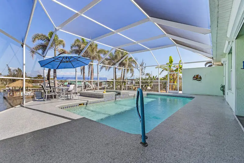 This custom-built waterfront Gulf access home is in the heart of St. James City on tranquil Pine Island. This community boasts some of the best fishing in all of SW Florida. The home is located minutes away from Boca Grande Pass, the "Tarpon Fishing Capital of the World"! This is a nature lover's paradise from the Florida native plants in the yard, to the Eagles and Ospreys flying overheard, the dolphins and manatees swimming in the canal in the backyard, to the Great Calusa Blueway, a 190-mile canoe/kayak trail around the coastal and inland waterways of Lee County, not to mention the many hiking trails on Pine Island. The sunrises and sunsets are a photographer's dream. Boaters will enjoy being mere minutes from the Intracoastal Waterway (ICW) and the Gulf of Mexico, not to mention Ft. Myers Beach, Sanibel, Captiva, and all the secluded islands off of the Lee County coast. The new owners will appreciate the covered 10K # boat lift with wrap-around composite decking, along with the 5K# boat lift, and over 160' of reinforced seawall, which can accommodate all your toys, including in water dockage space for boats up to 50'. The luxurious interior features cathedral ceilings in the main living area, travertine flooring, gourmet chef's kitchen, with solid wood cabinets, stainless appliances, and more. The owners will certainly enjoy the oversized master bedroom with sliders leading to the screened lanai/pool, and then relaxing and unwinding in the jetted soaking tub. There are his/hers walk-in closets. The guest quarters are on the opposite side of the home and include a separate entry. Whether you need a "Mother-in-law suite" or have guests who need privacy, this home has it all. The in-ground heated oversized saltwater pool/spa includes a newer heater, for your lounging pleasure. Some of the upgrades include: whole-house water filtration and generator (10K KW), Kevlar electric storm shutters, and solar panels connected to Lee County Electric for lower power bills, and more. St. James City is a golf cart friendly community, and great for walking the dogs, biking, and more. There are several restaurants with live music and a community center with a park for adults and children! Pine Island offers many houses of worship, two grocery stores, and a top rated elementary school. Make your appointment now!