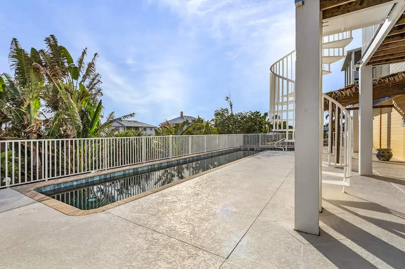 As you enter this unique custom home you will be surrounded by tropical colors accented with the warm tones of bamboo, cypress and mahogany. The architecture and decor was inspired by the current owners' travels to the Keys, Caribbean and South Pacific. The floor plan was designed with the retired couple in mind anticipating many visits from adult children and grandchildren. The master suite is located on the main floor, while the third floor has three bedrooms and its own bathroom. This giving privacy to all when wanted. A very comfortable home for day to day living. With its many windows and screened porches this home is bright and airy often times not even needing the AC due to the flow through breezes. There is even a small screened porch directly off the kitchen that was designed just for the grill. The floor treatments are a combination of tile, carpet, and wood for easy maintenance and sound control. Just inside the front door is a room that was designed as an office with double entry doors, perfect for a business in the home. There is a conveniently located elevator that goes to all three floors. On the main floor the elevator stop is in the kitchen making bringing up groceries from the garage to the kitchen a breeze. The ground level offers a large garage and an air conditioned bonus room with an attached bath and outdoor shower. The garage doors are 9 foot high along with a 10 foot ceiling in the garage. Lots of room for vehicles and storage. Outside you will find nearly one half acre of land with approximately 360 feet of waterfront. The environmentally friendly landscape includes many palms, bamboo, bougainvillea, hibiscus, oleander and even a gumbo limbo tree. The shoreline is lined with sea grapes and mangroves, true Florida native plants. As you step down onto the approximately 100 feet of dock you will find a 20,000 pound and a 7000 pound boat lift along with a covered fish cleaning station. From the main floor of the home you will enjoy descending the spiral staircase and onto the pool deck of the 50 foot by 10 foot lap pool. The pool also has an adjacent shallow area especially for the toddler grandchildren. On those hot Florida days you will like the pool deck option of the shade of the tiki and using the wonderful outside tiki shower. As an added feature all outside deck railings are low-maintenance aluminum, and decks and docks are composite planked. While not included in the price the price, some furnishing and the 21 foot Key West boat are negotiable.